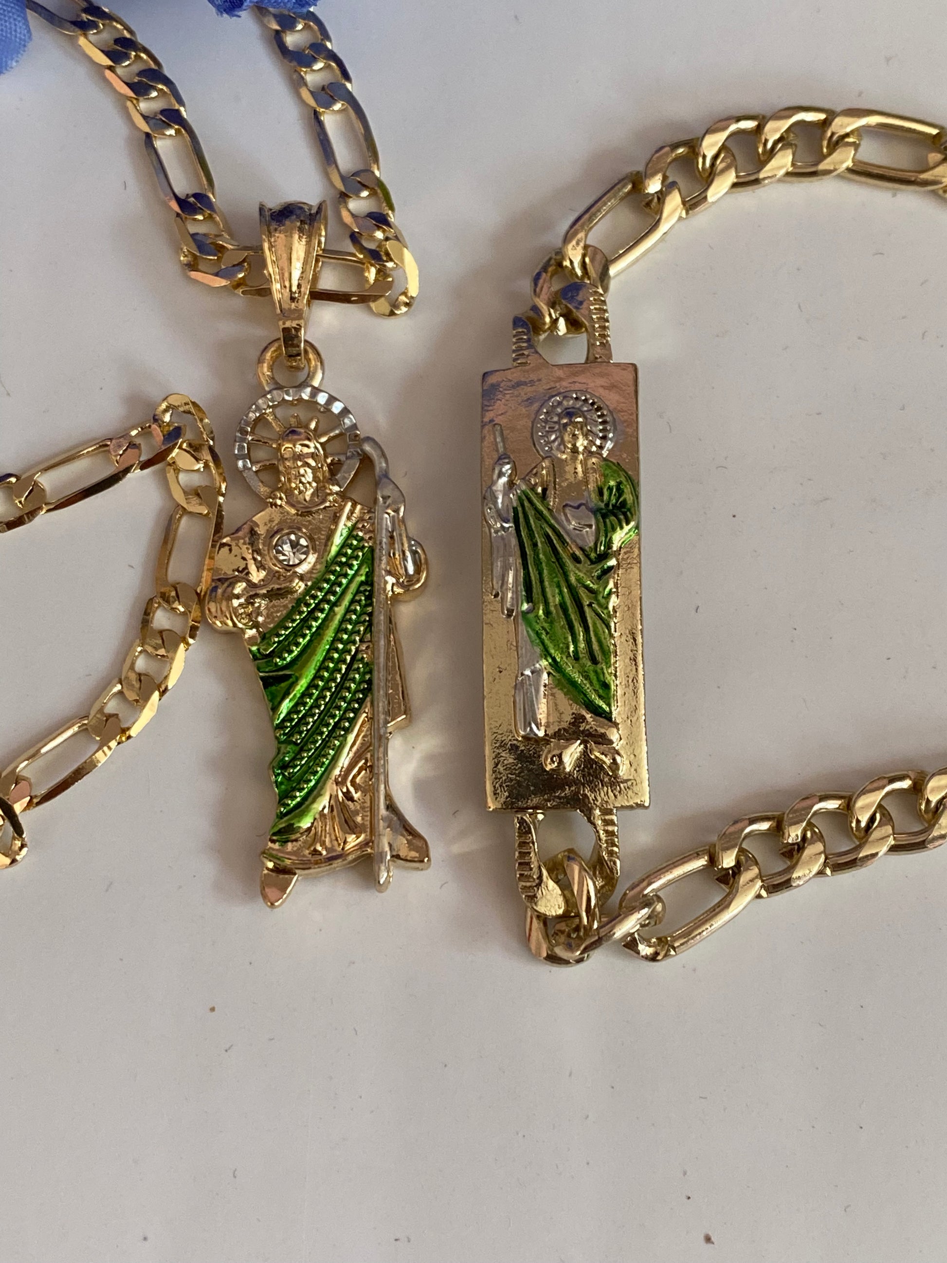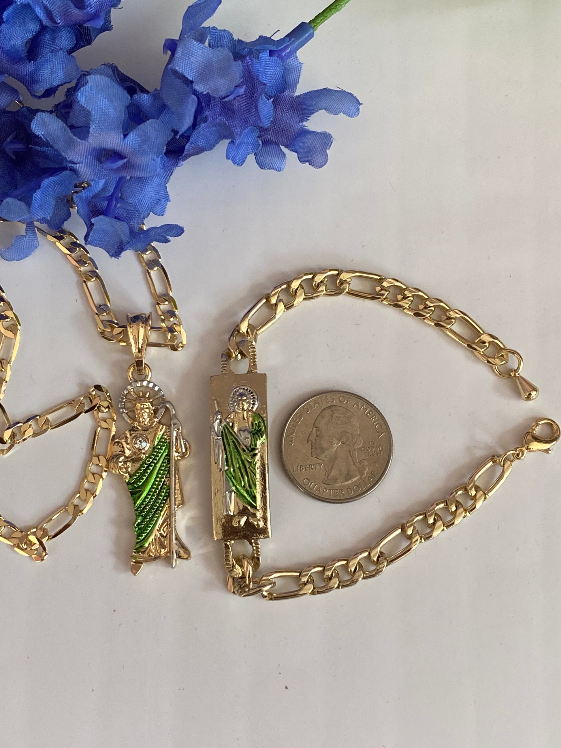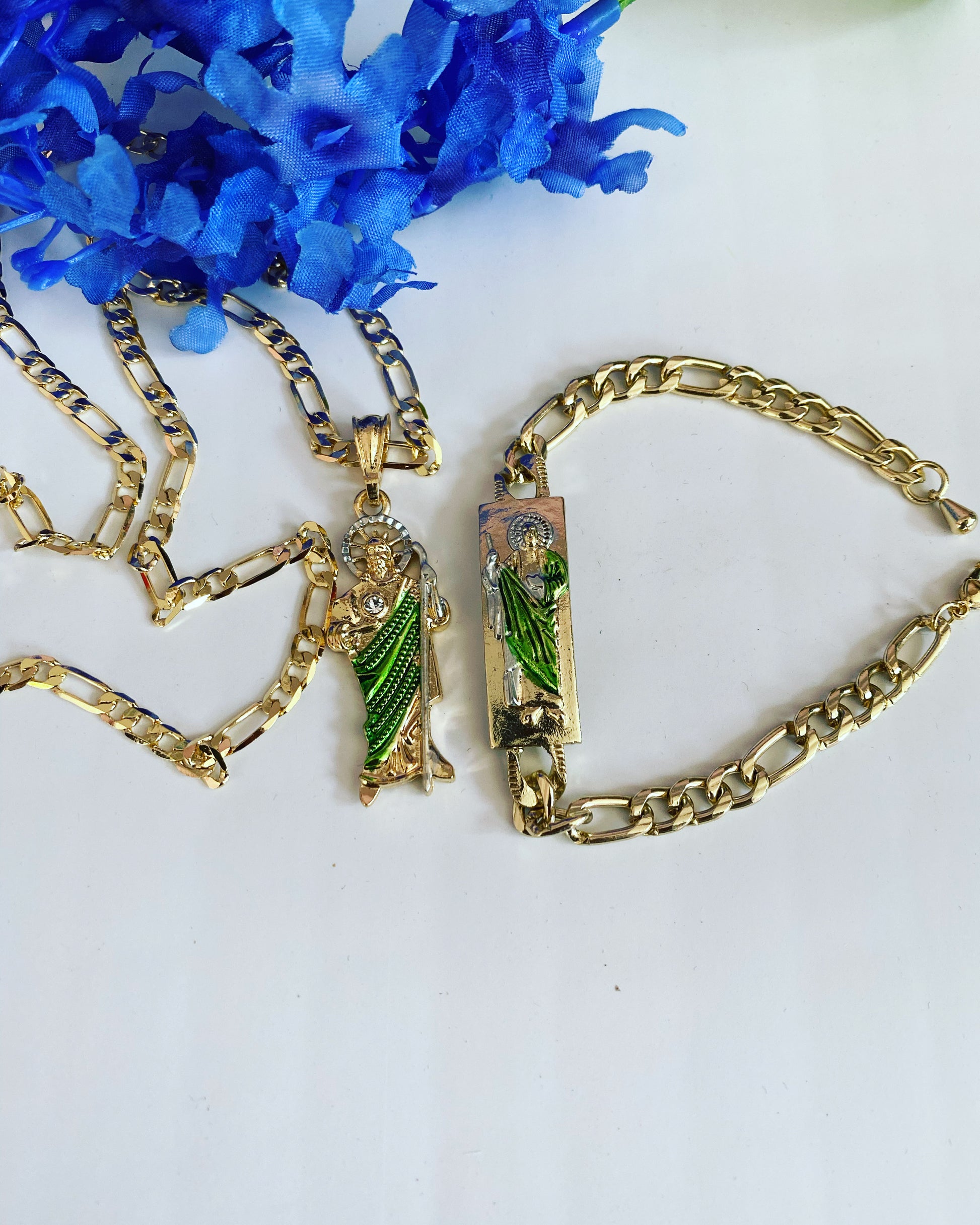 San Judas Necklace & Bracelet Set -St Jude set Gold Plated