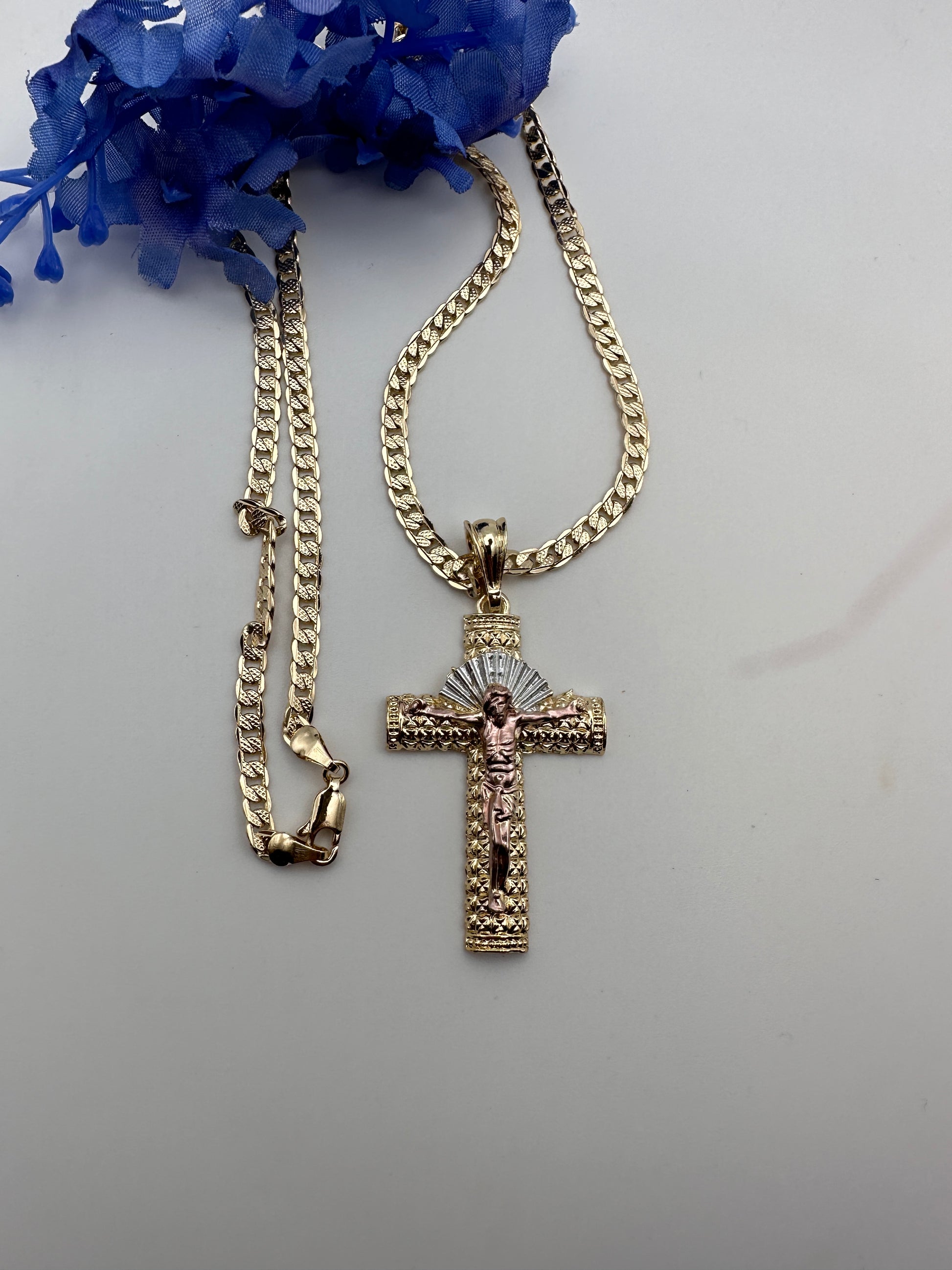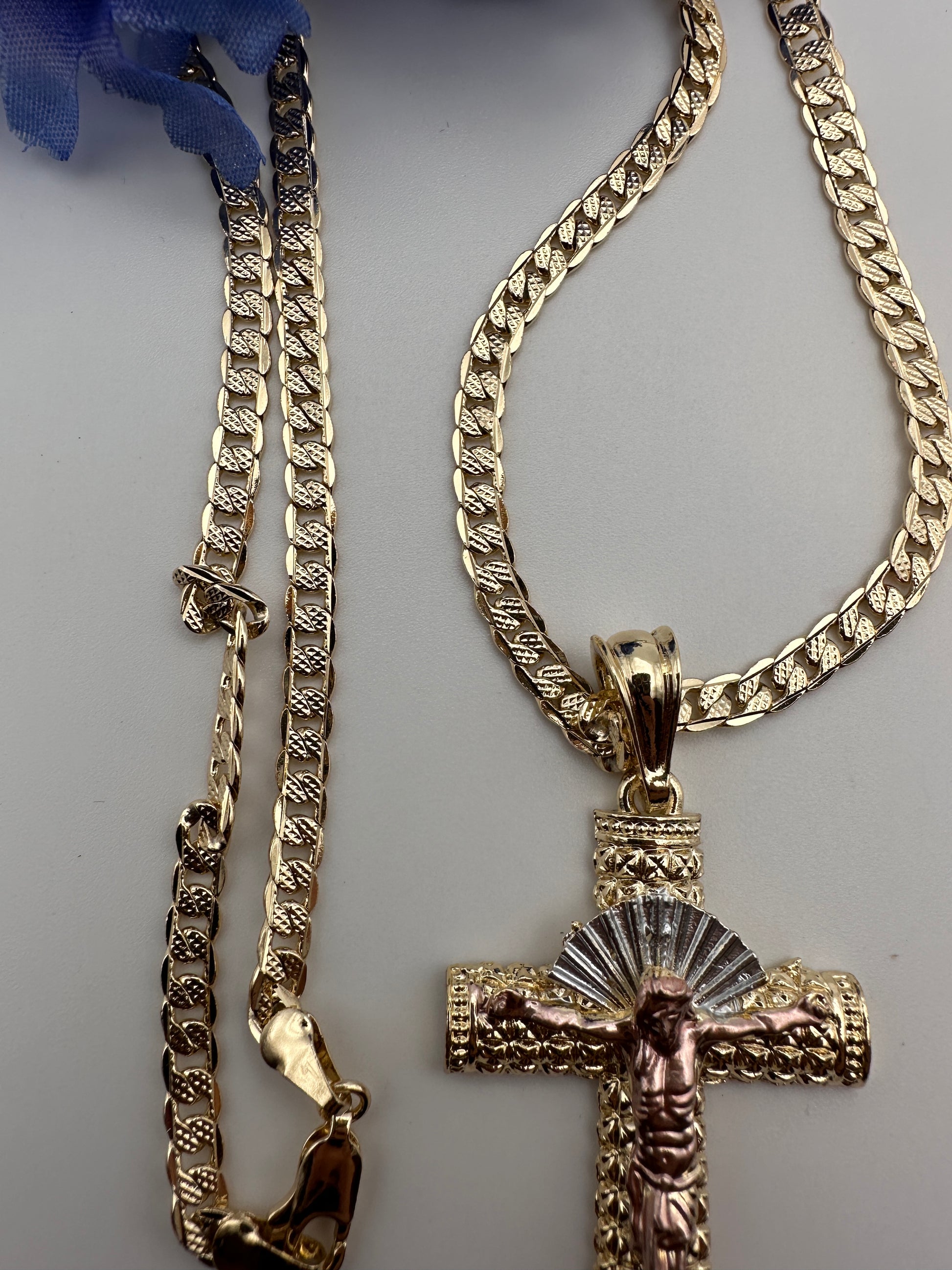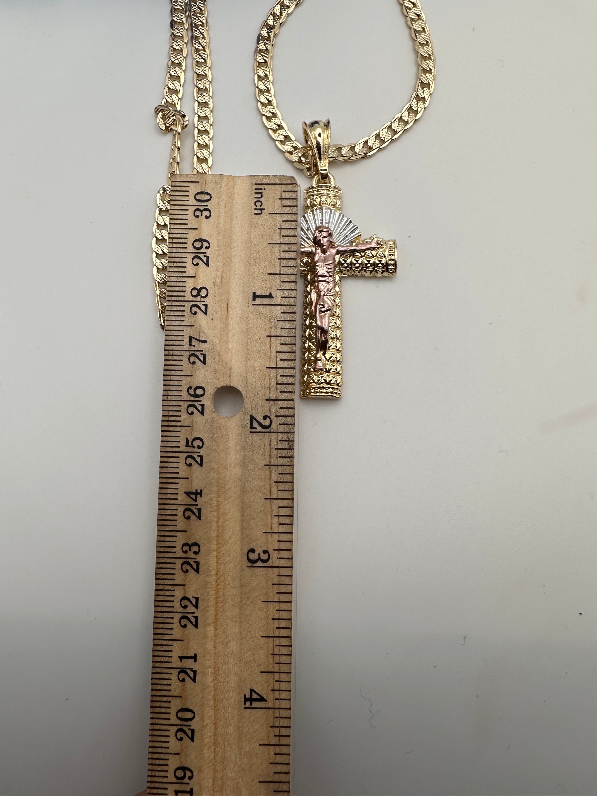 “King” Cross necklace Gold Plated/ Cadena Cruz 14k Oro Laminado