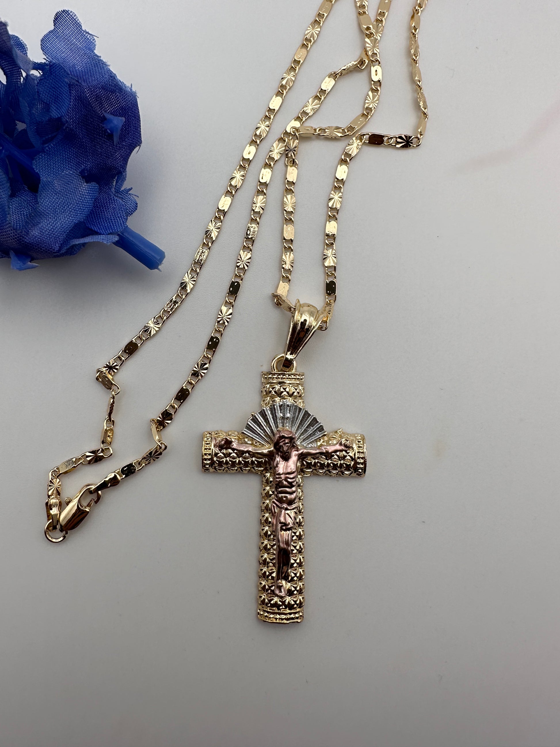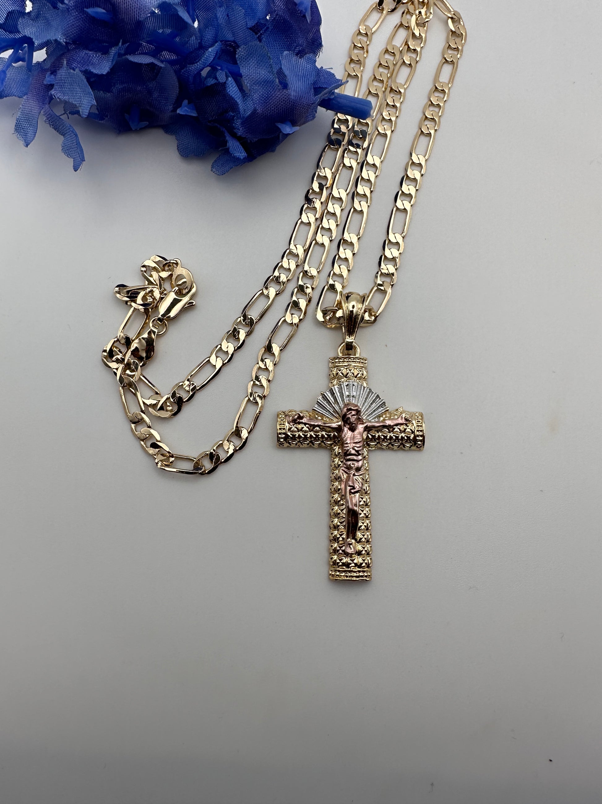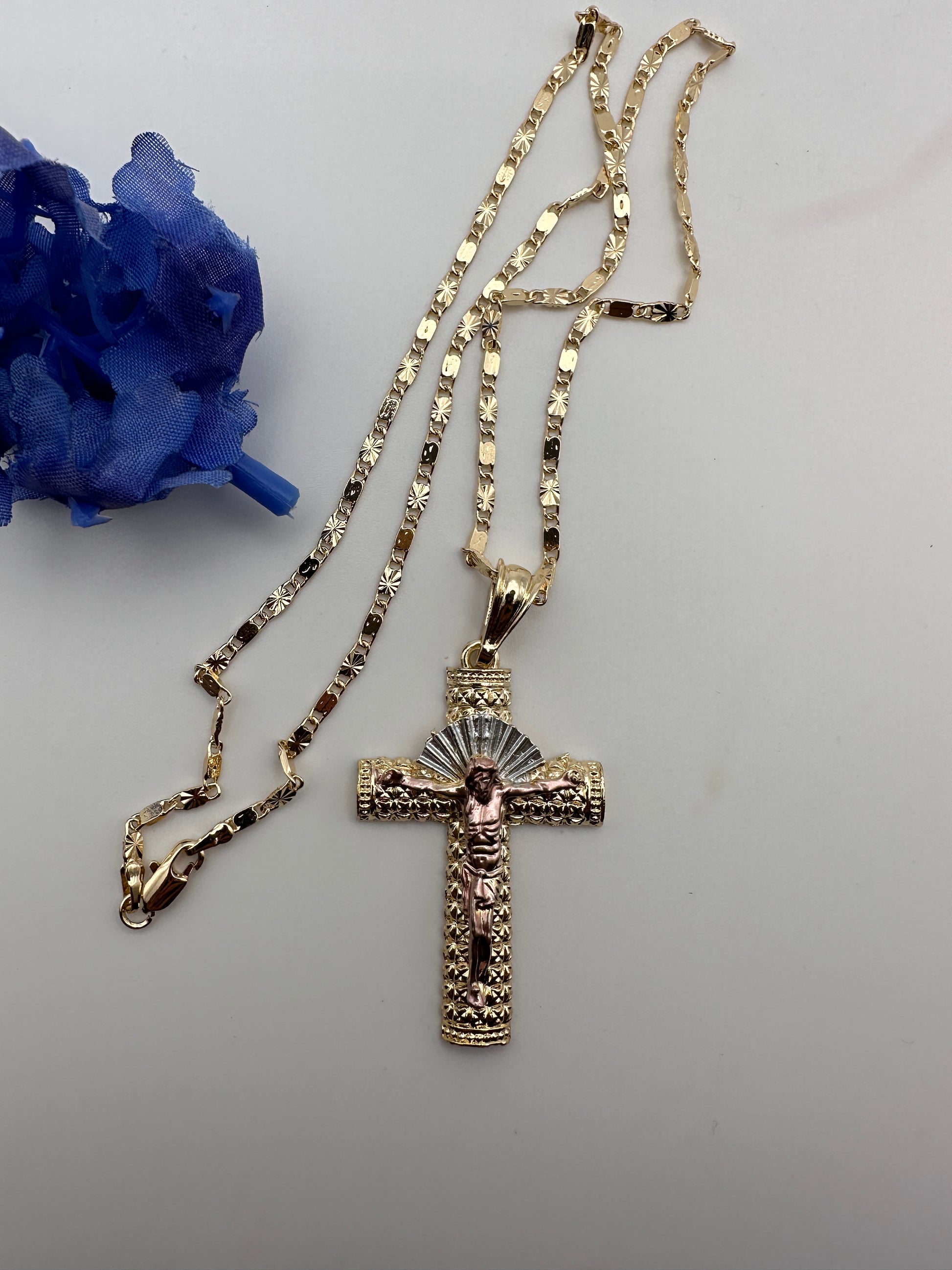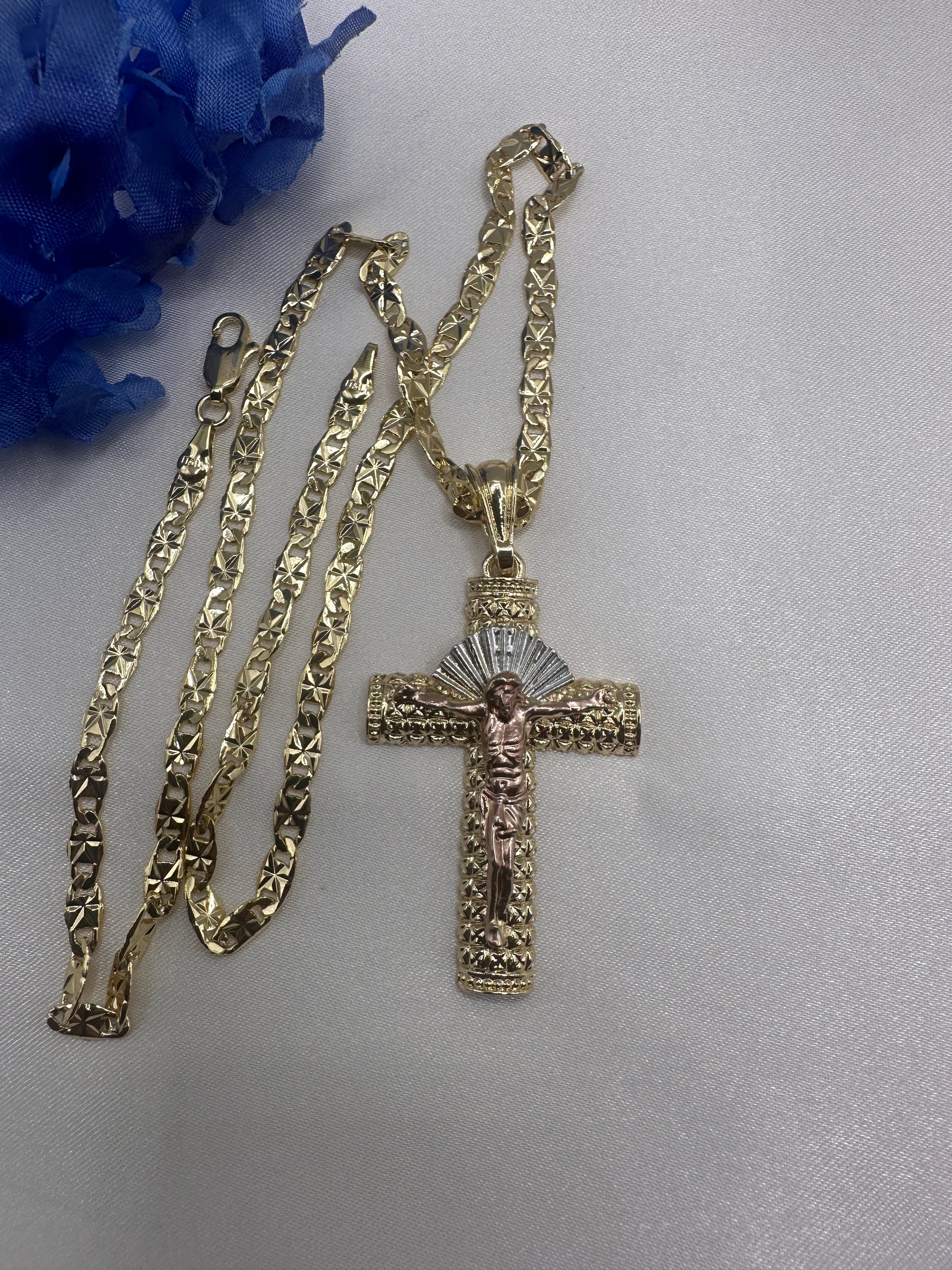 “King” Cross necklace Gold Plated/ Cadena Cruz 14k Oro Laminado