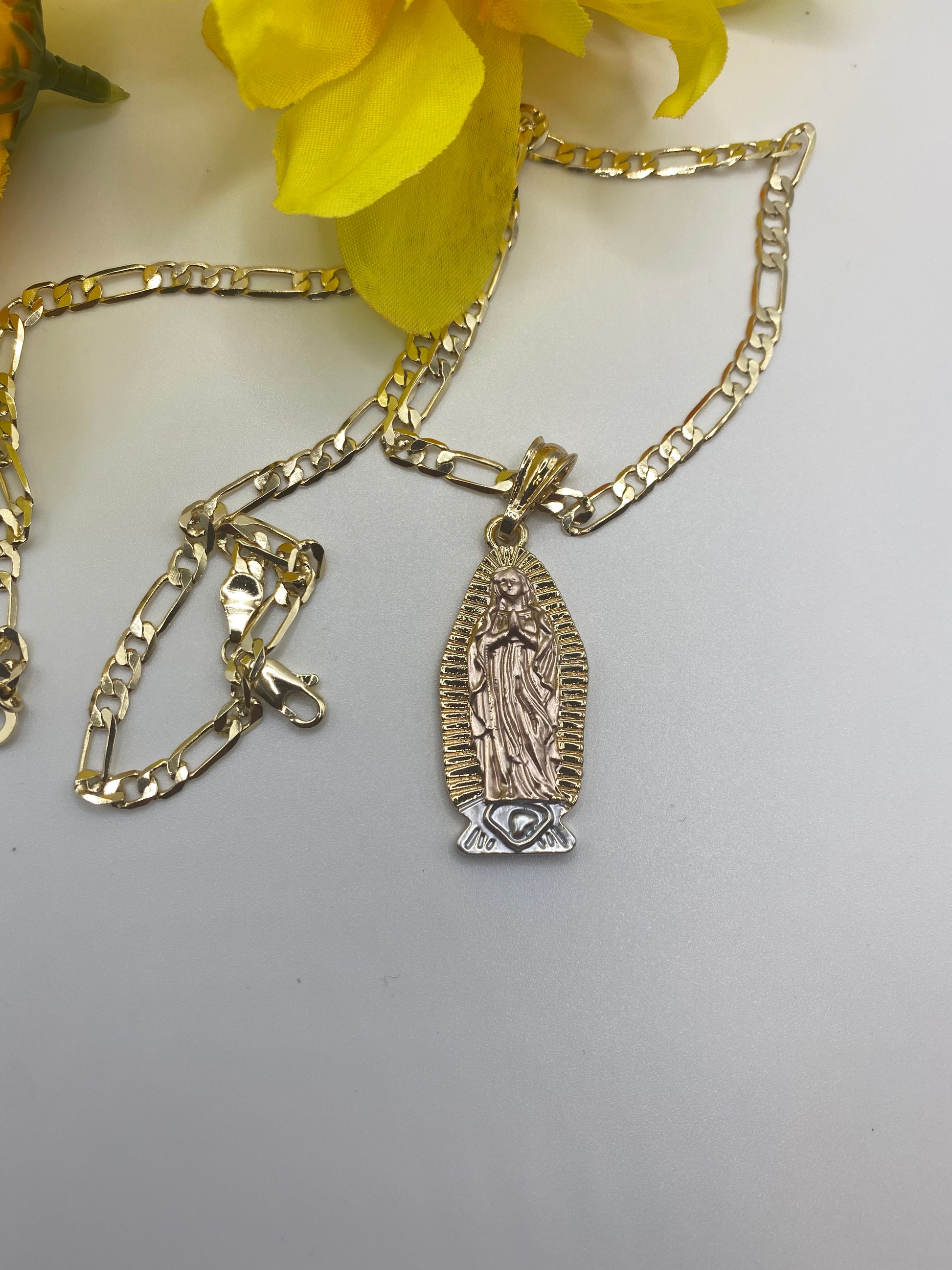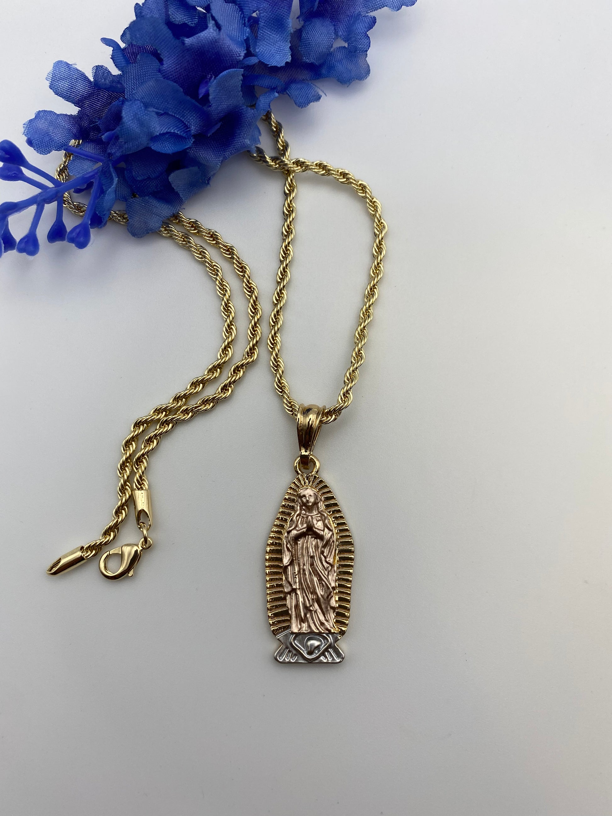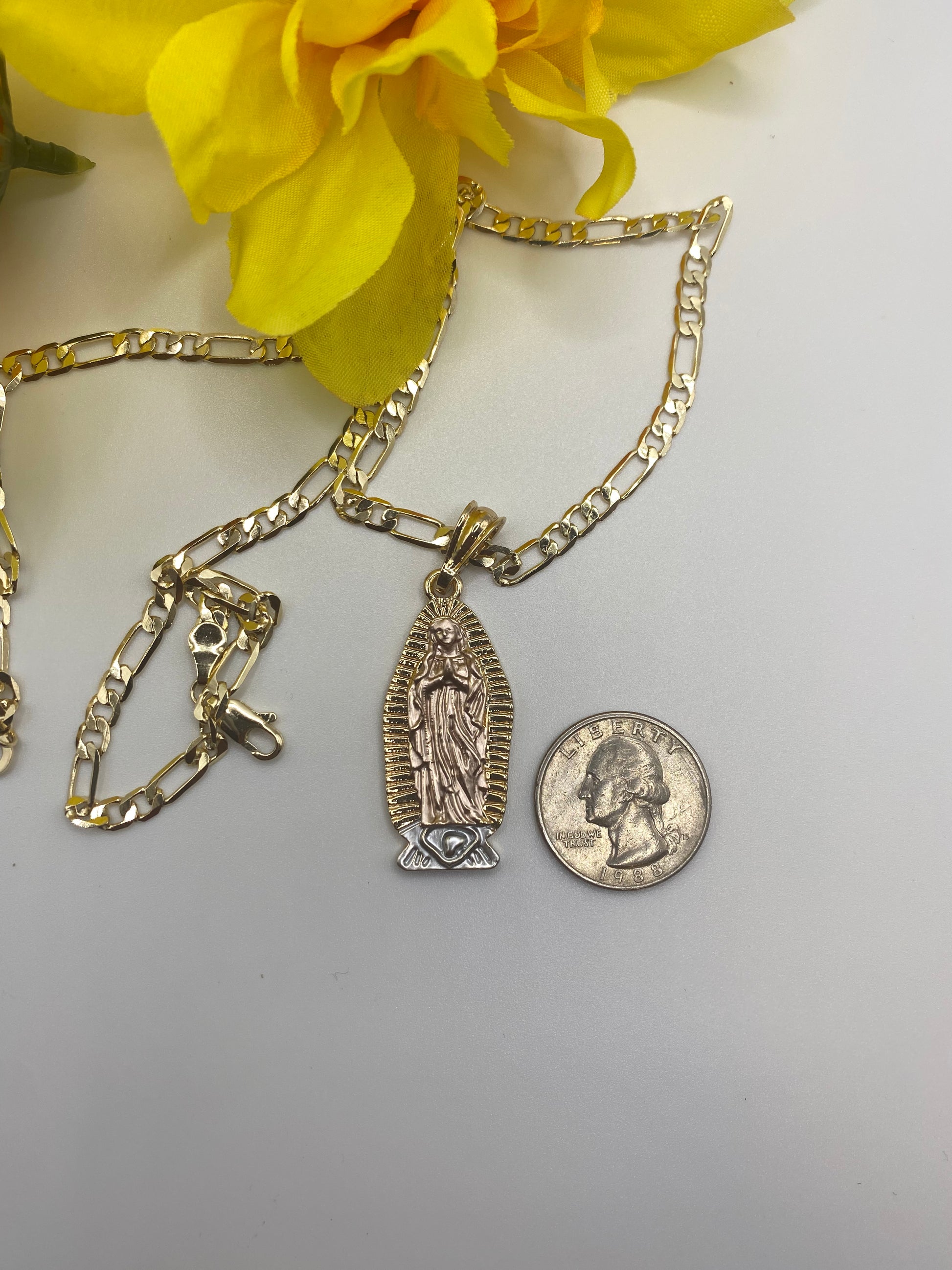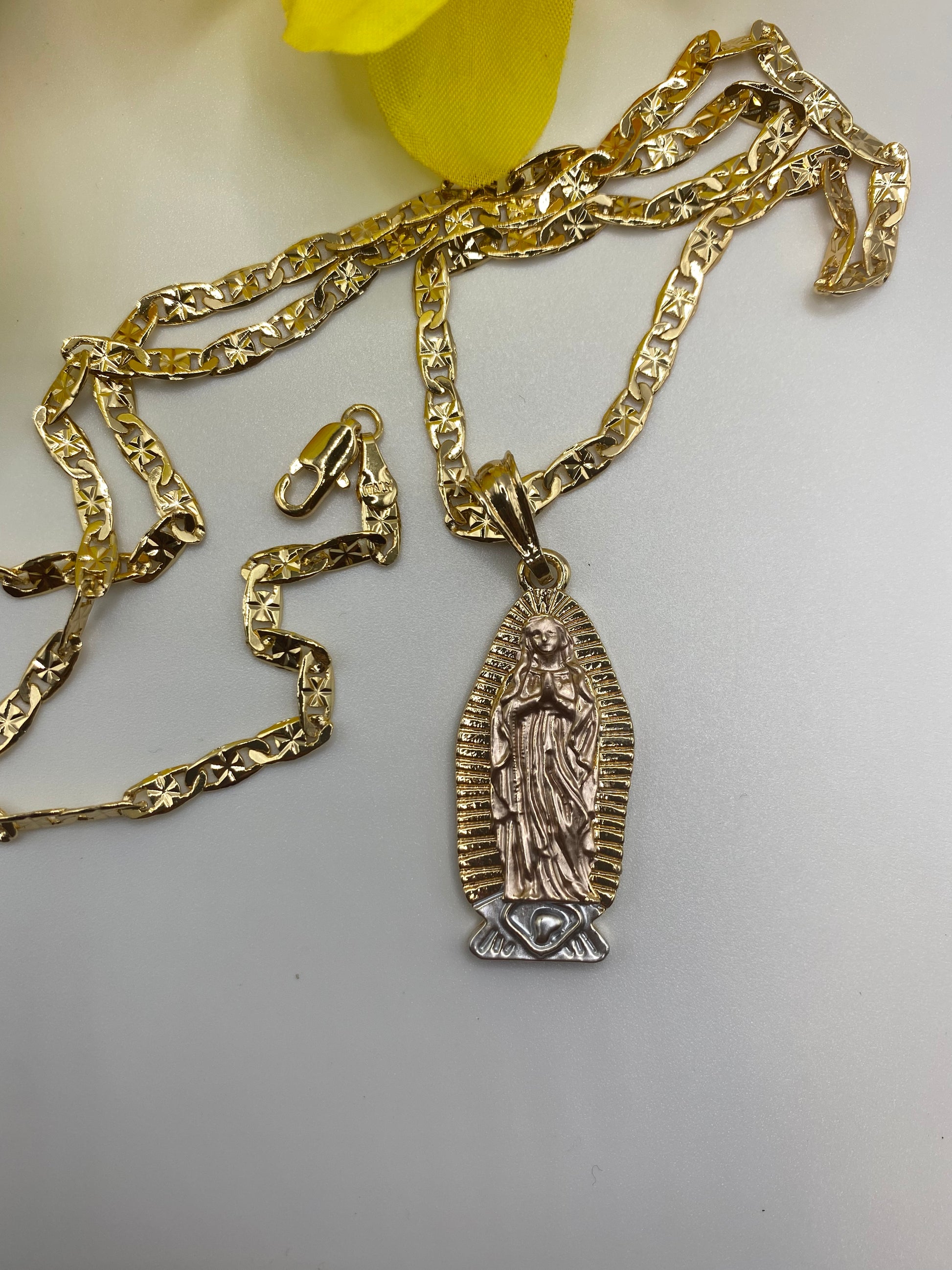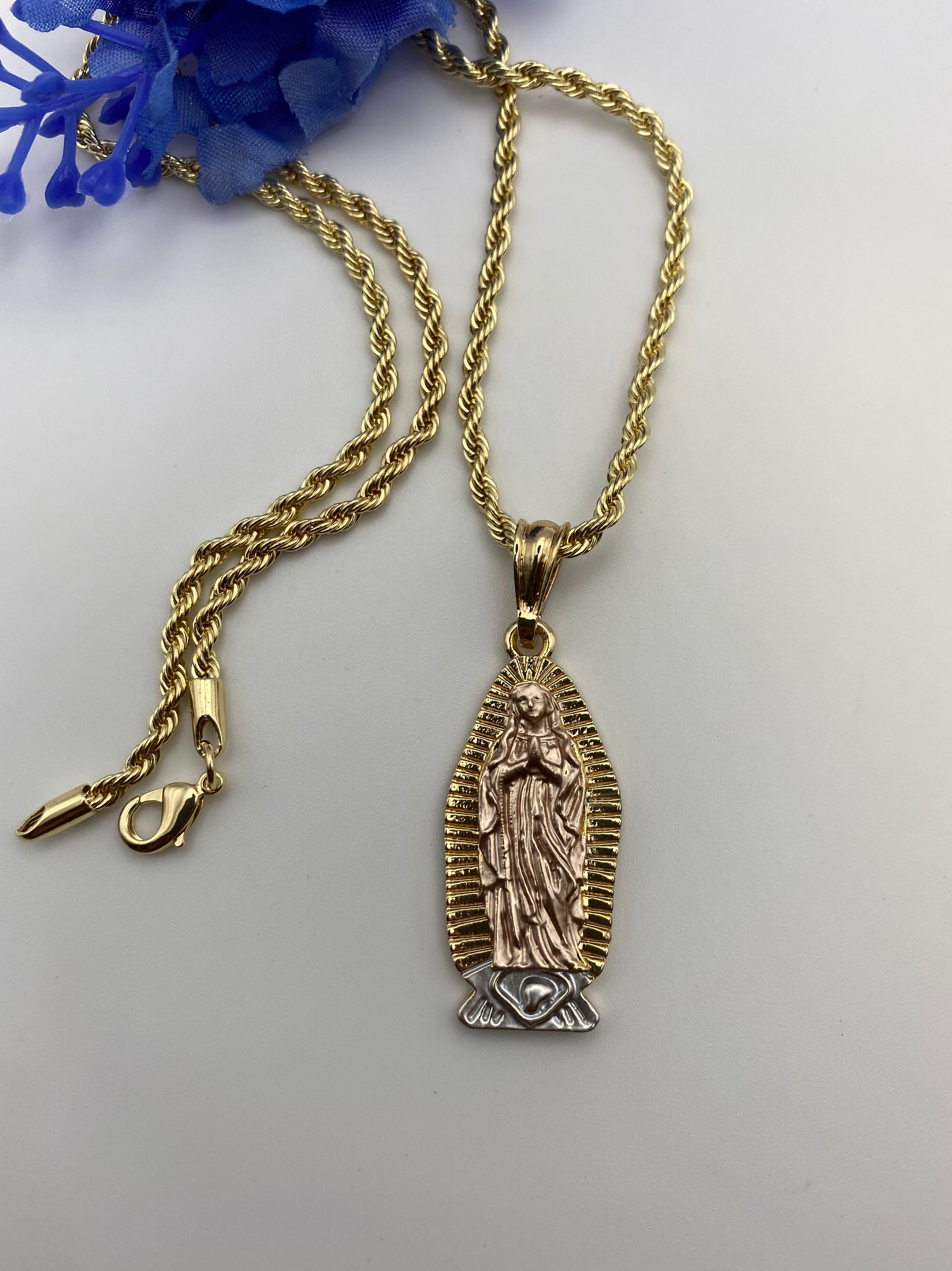 14k Gold Plated Virgen Guadalupe Necklace, Cadena 14k Virgen de Guadalupe Oro Laminado 24”