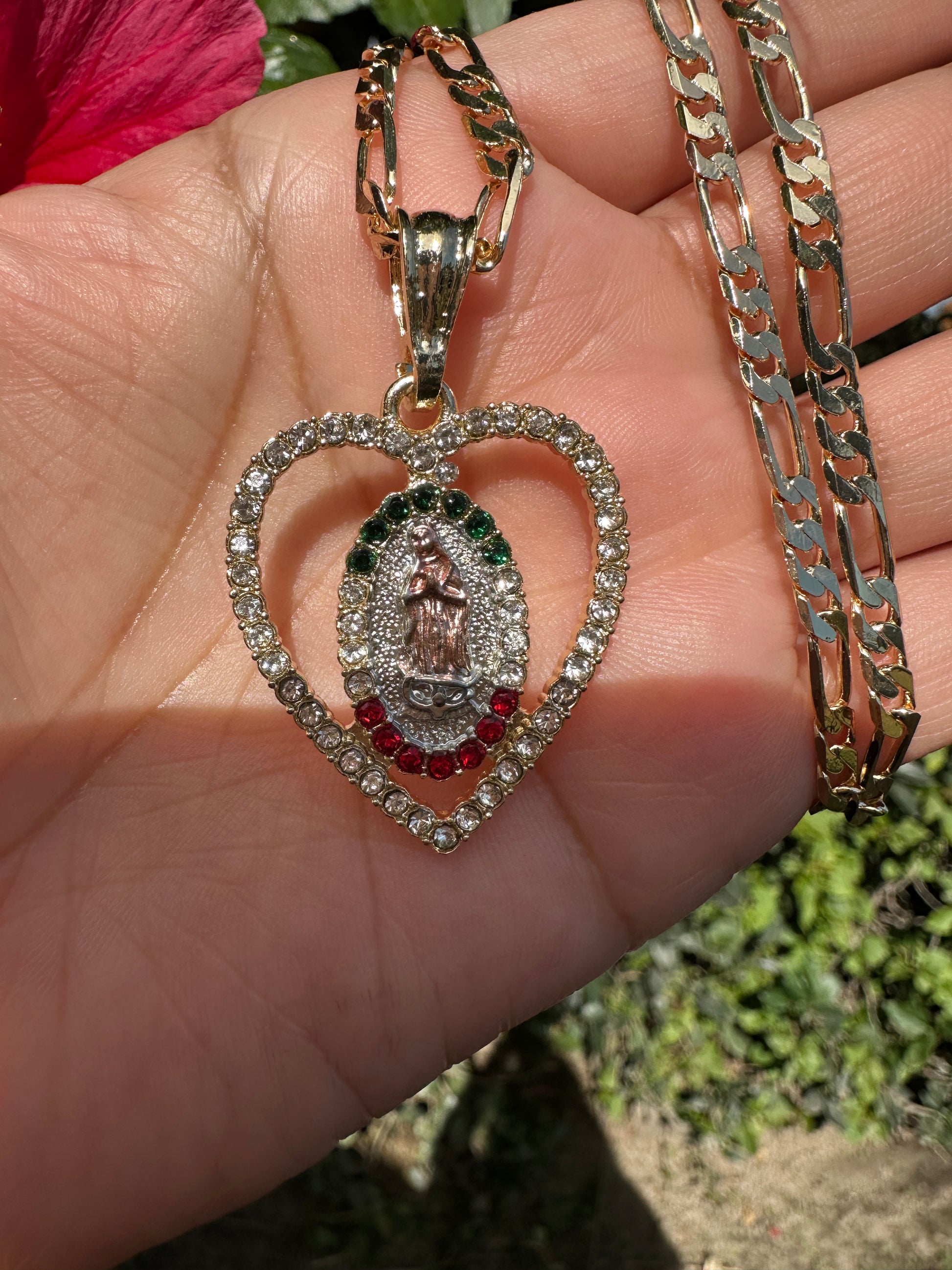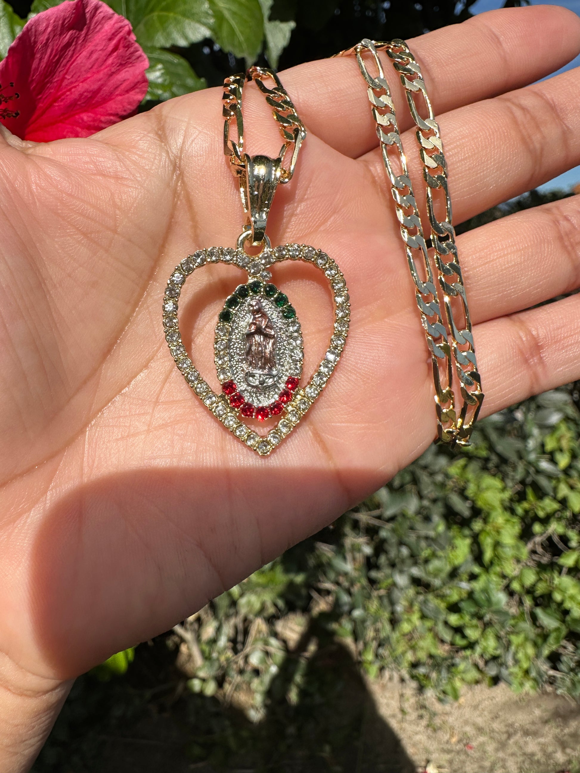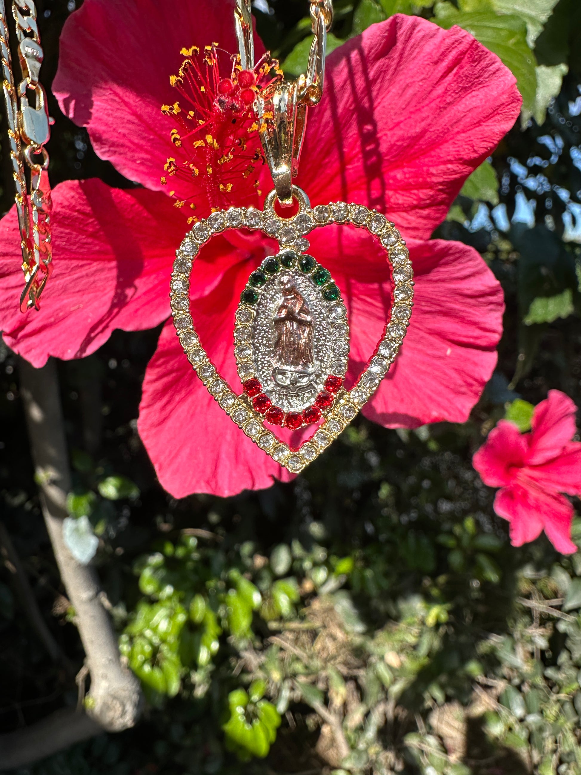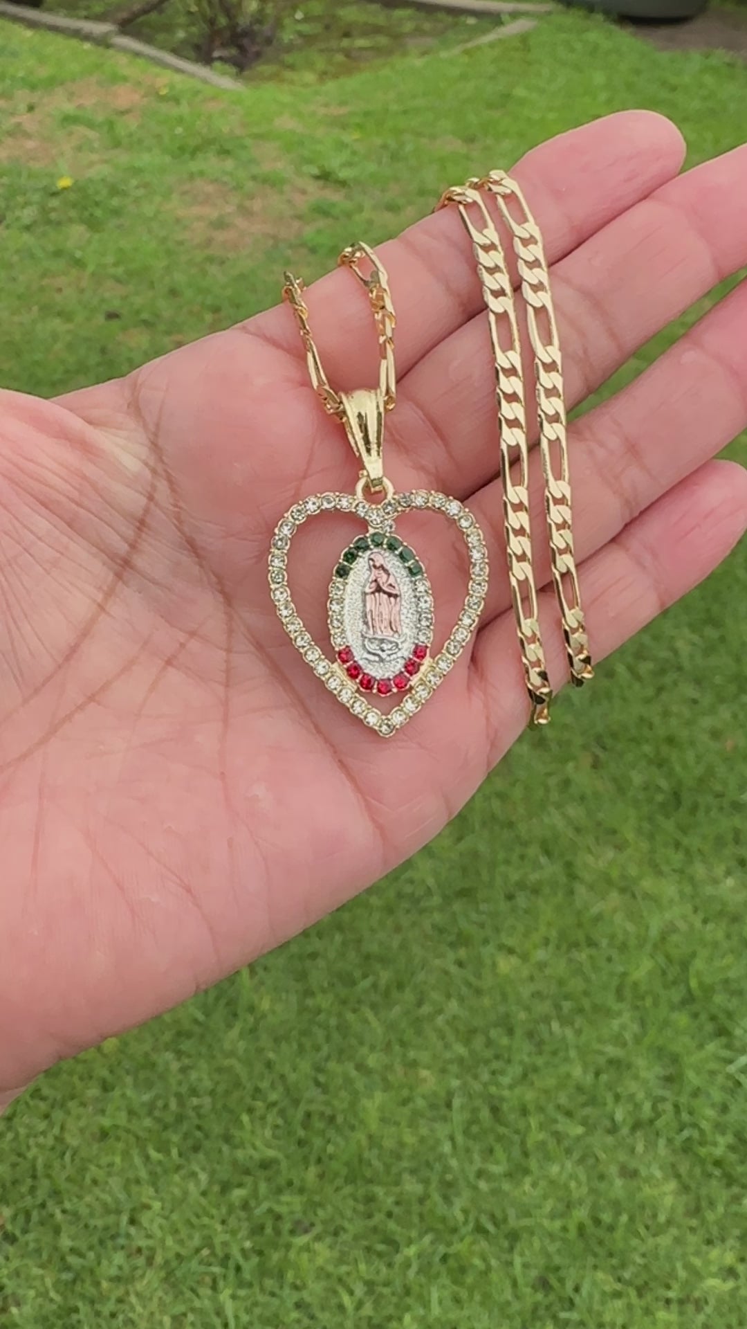 Amor Mío Virgin Necklace- Gold Plated Colored Red, White, Green