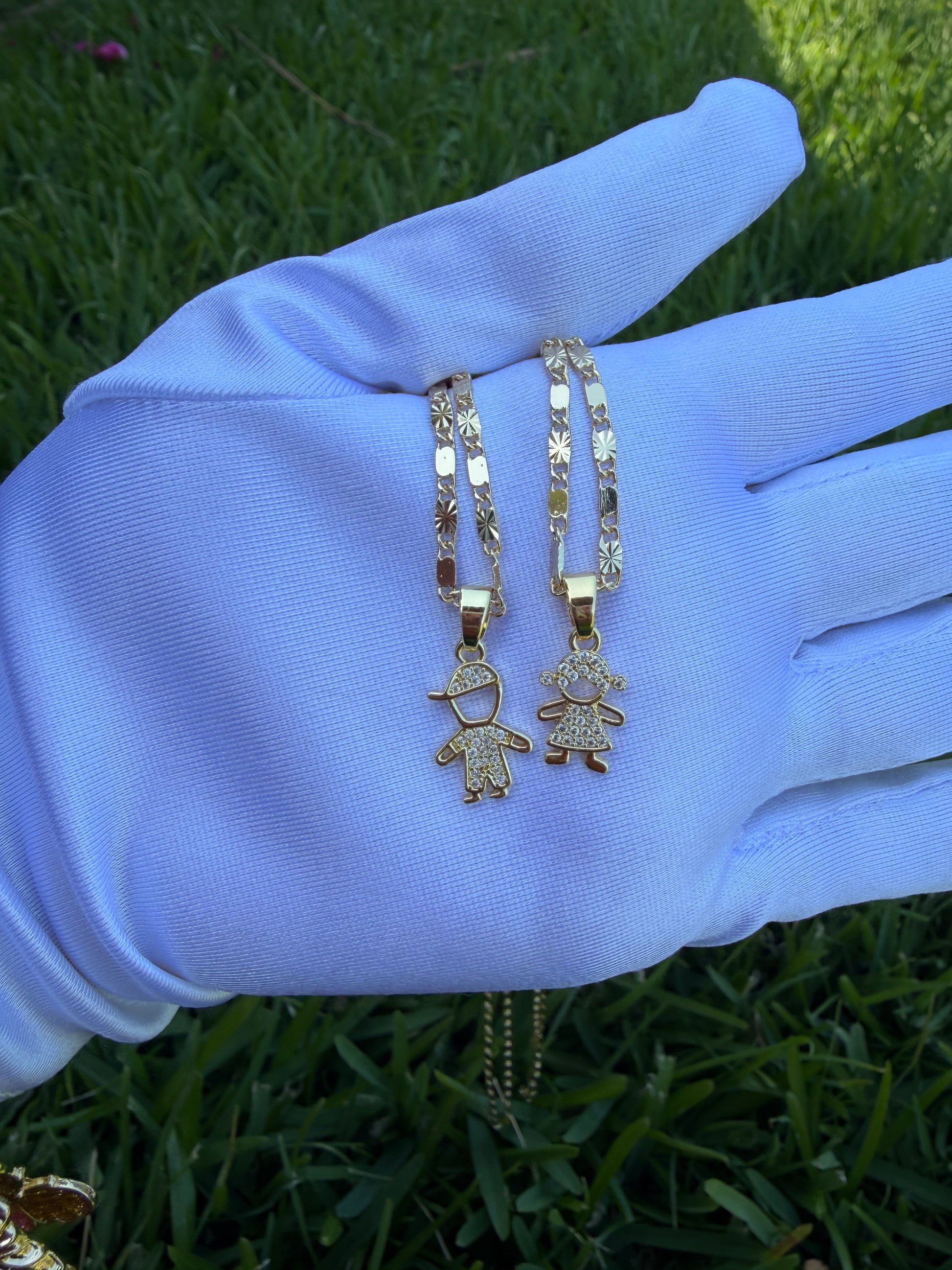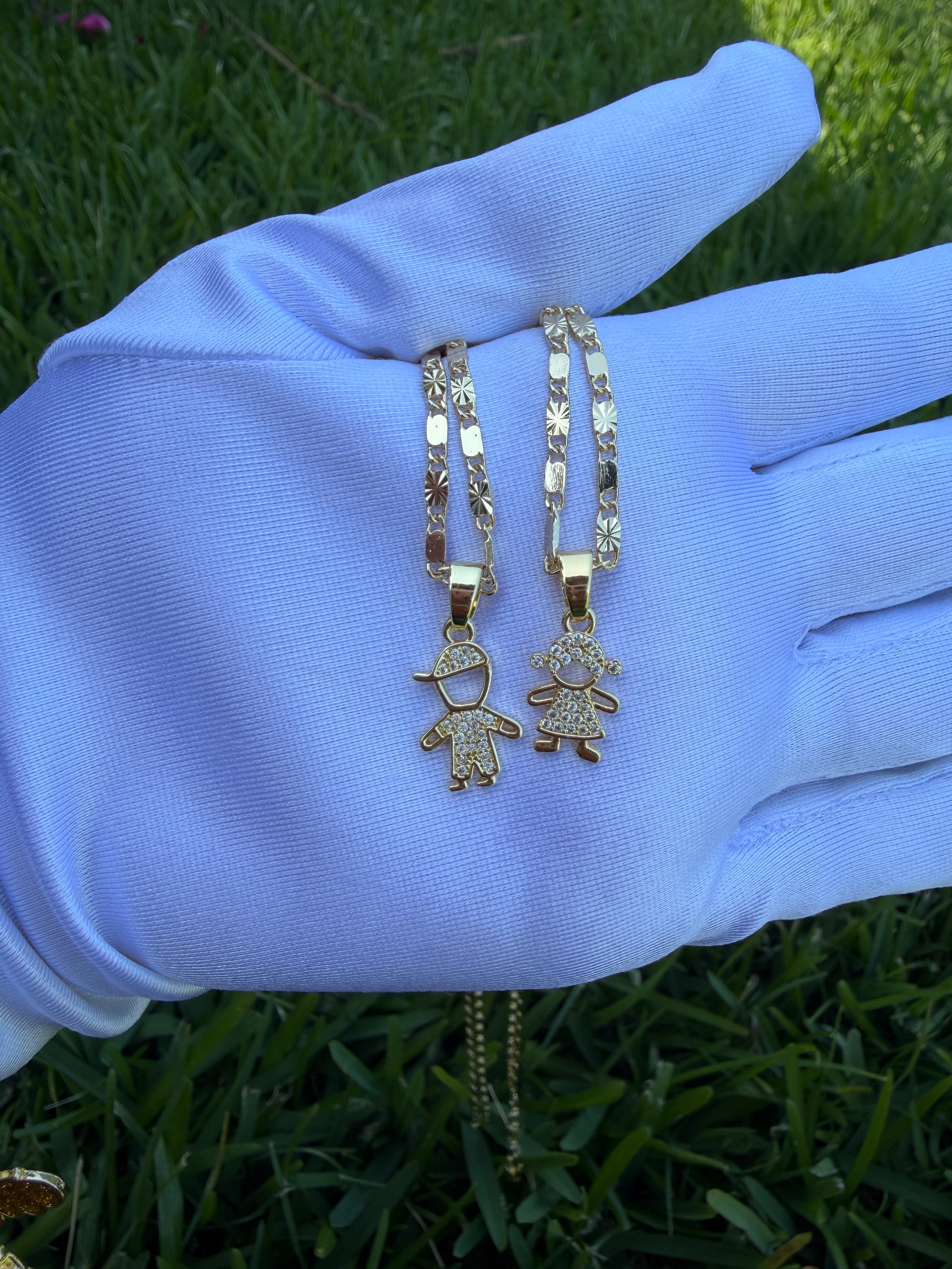 Boy Girl Charm Necklace with Chain - Gold Color Fashionable Design, Perfect for Everyday Wear