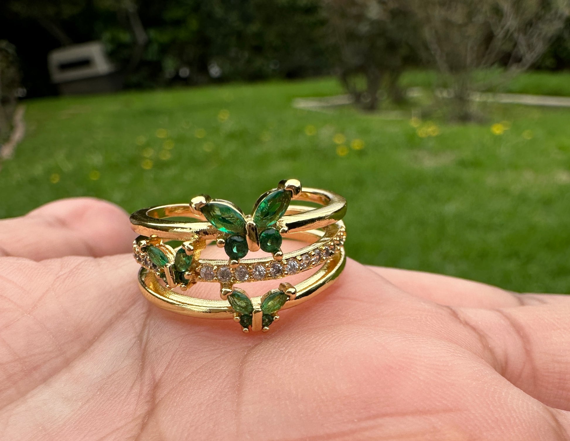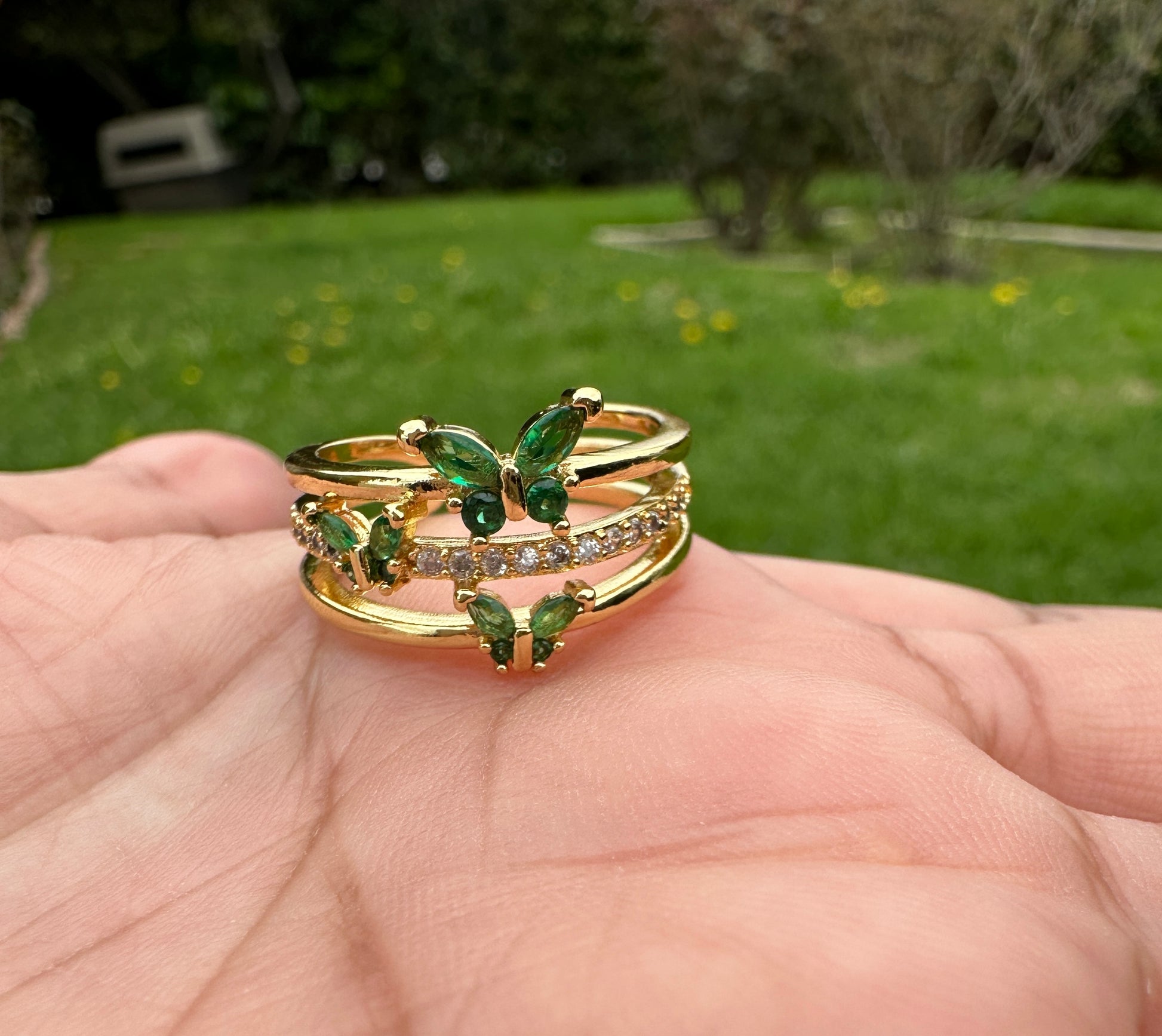 “Butterflies” Ring Gold Plated Green