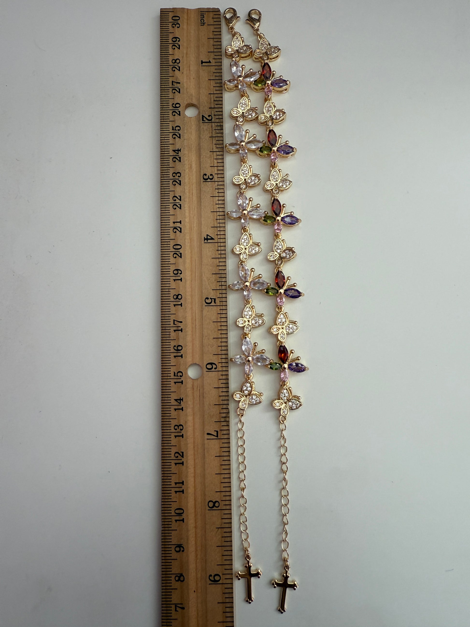 This elegant Butterfly Bracelet is an adjustable piece, measuring 7”-8.5” in length. It is the perfect addition to any outfit.