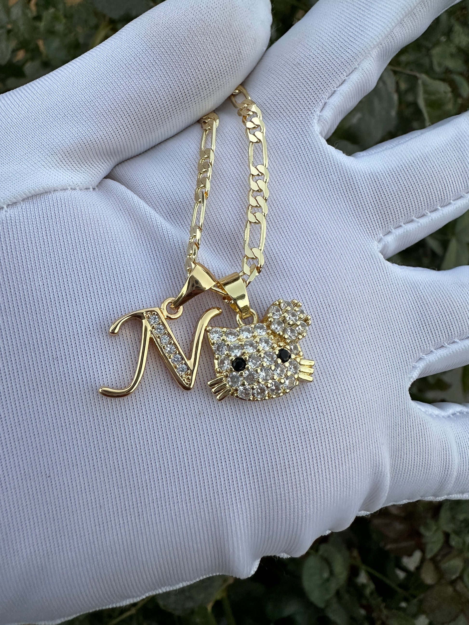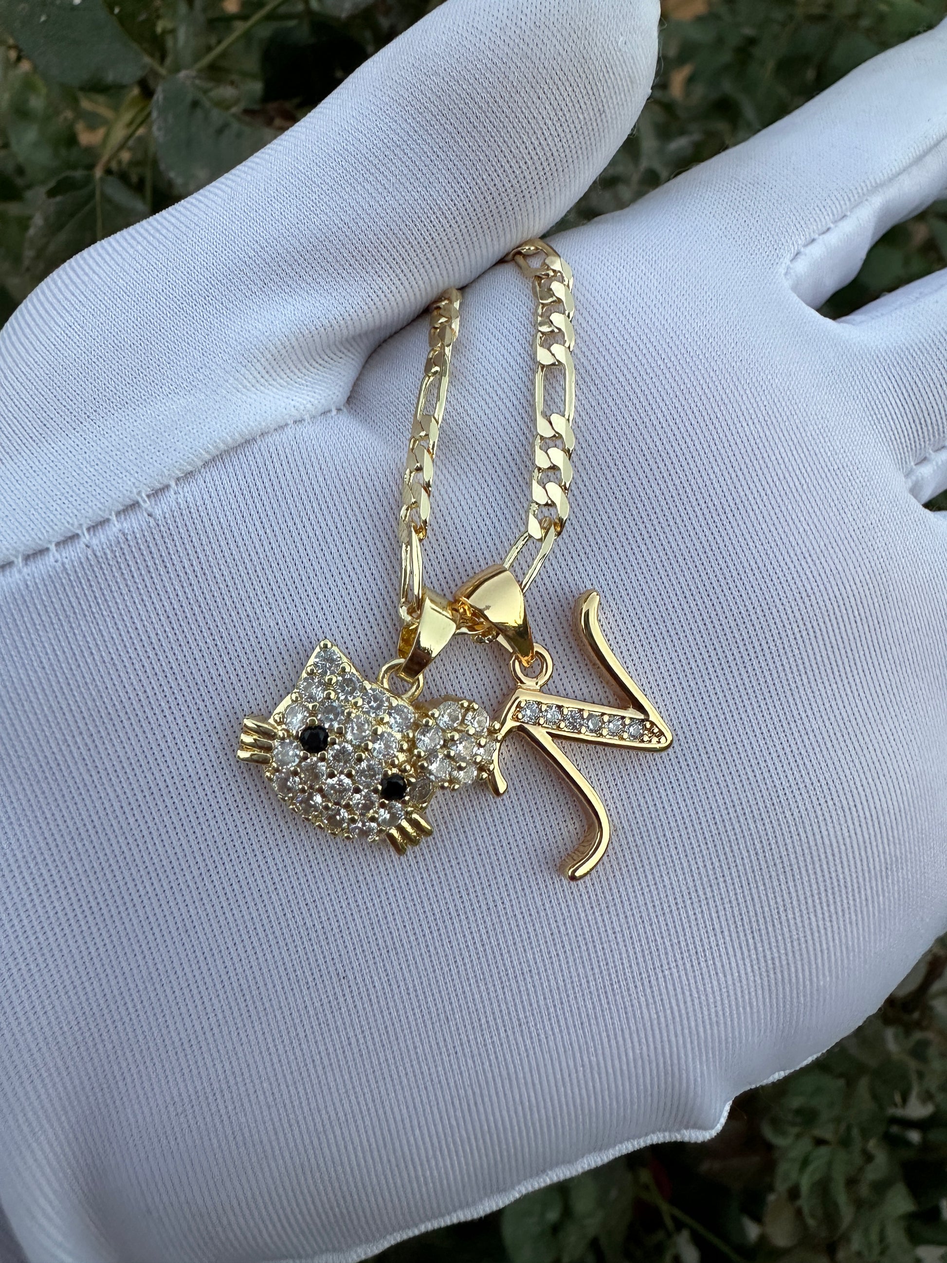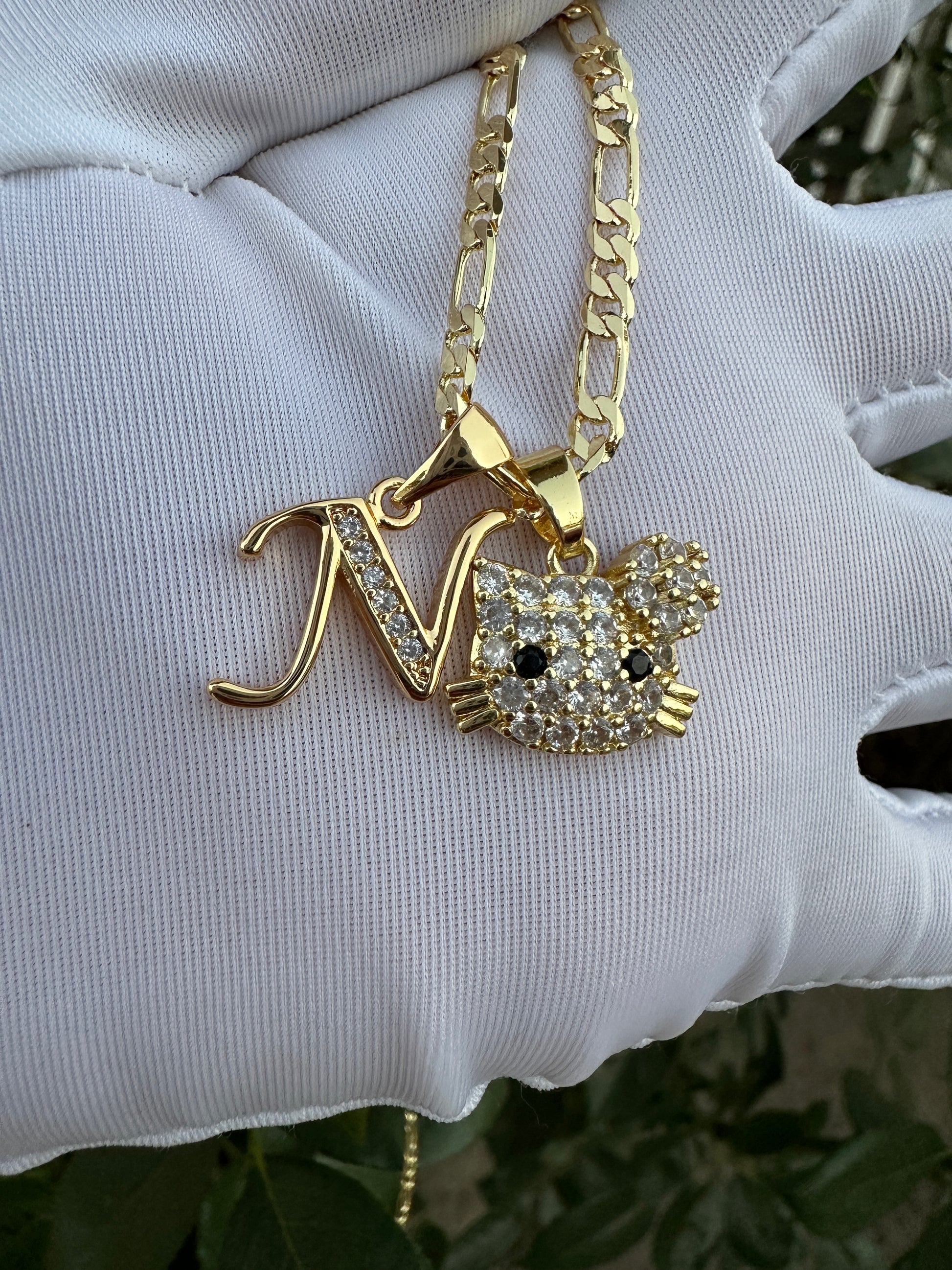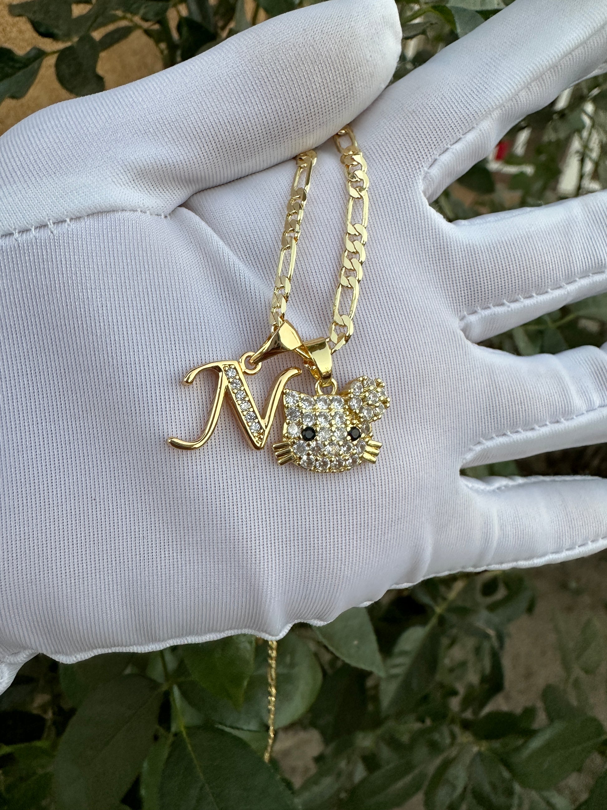 Cat Personalized Necklace with Letter initial Plated