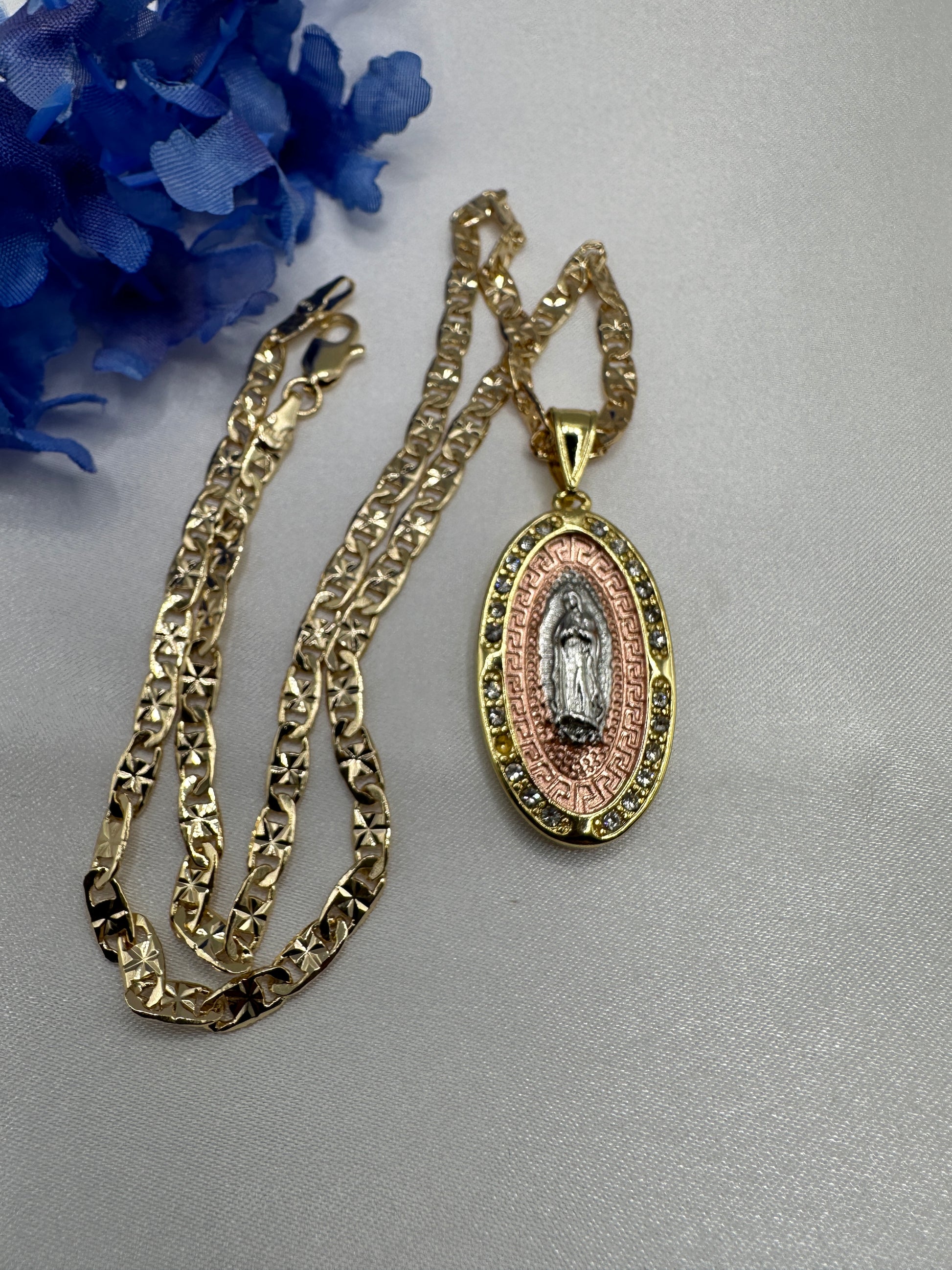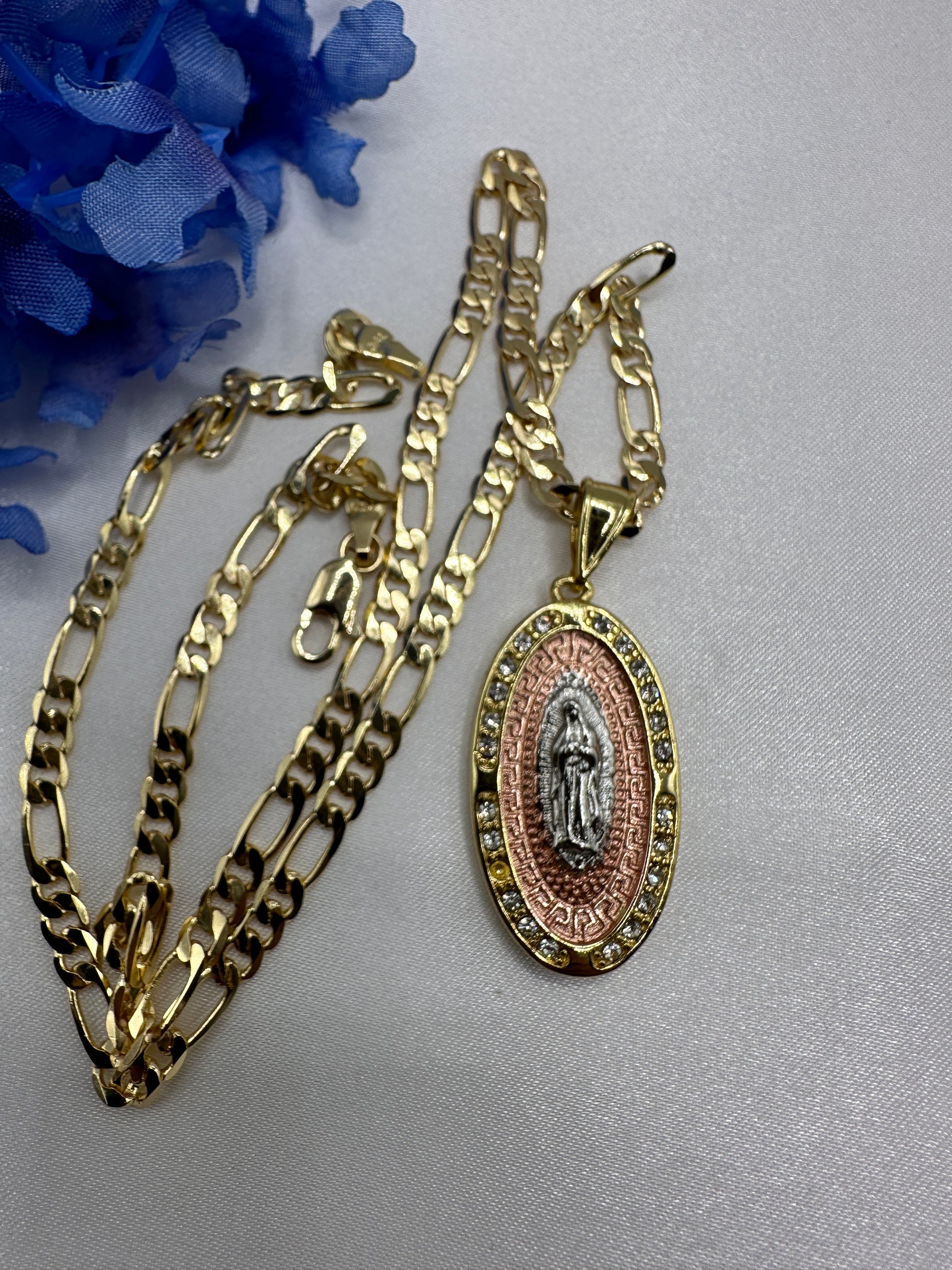 “Chapel” Virgin Necklace Pink Accent -Gold Plated