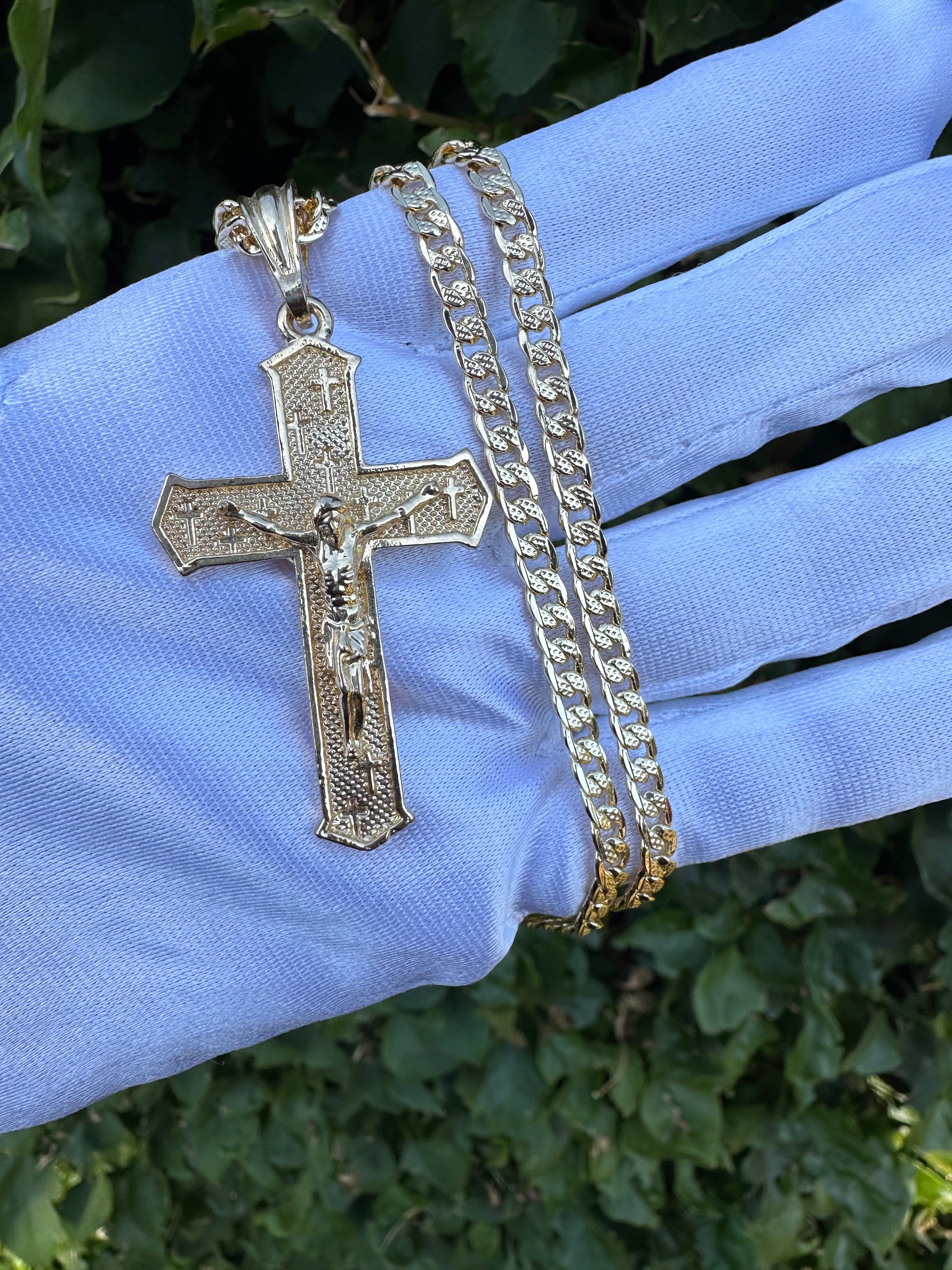 Enhance your everyday style with our Cross Necklace with Chain Gold Plated. Featuring a versatile 22" chain and a selection of cross styles, this elegant piece is perfect for any occasion. Crafted to be tarnish-free, it's the ideal accessory for both men and women. Make a statement with this beautiful necklace.