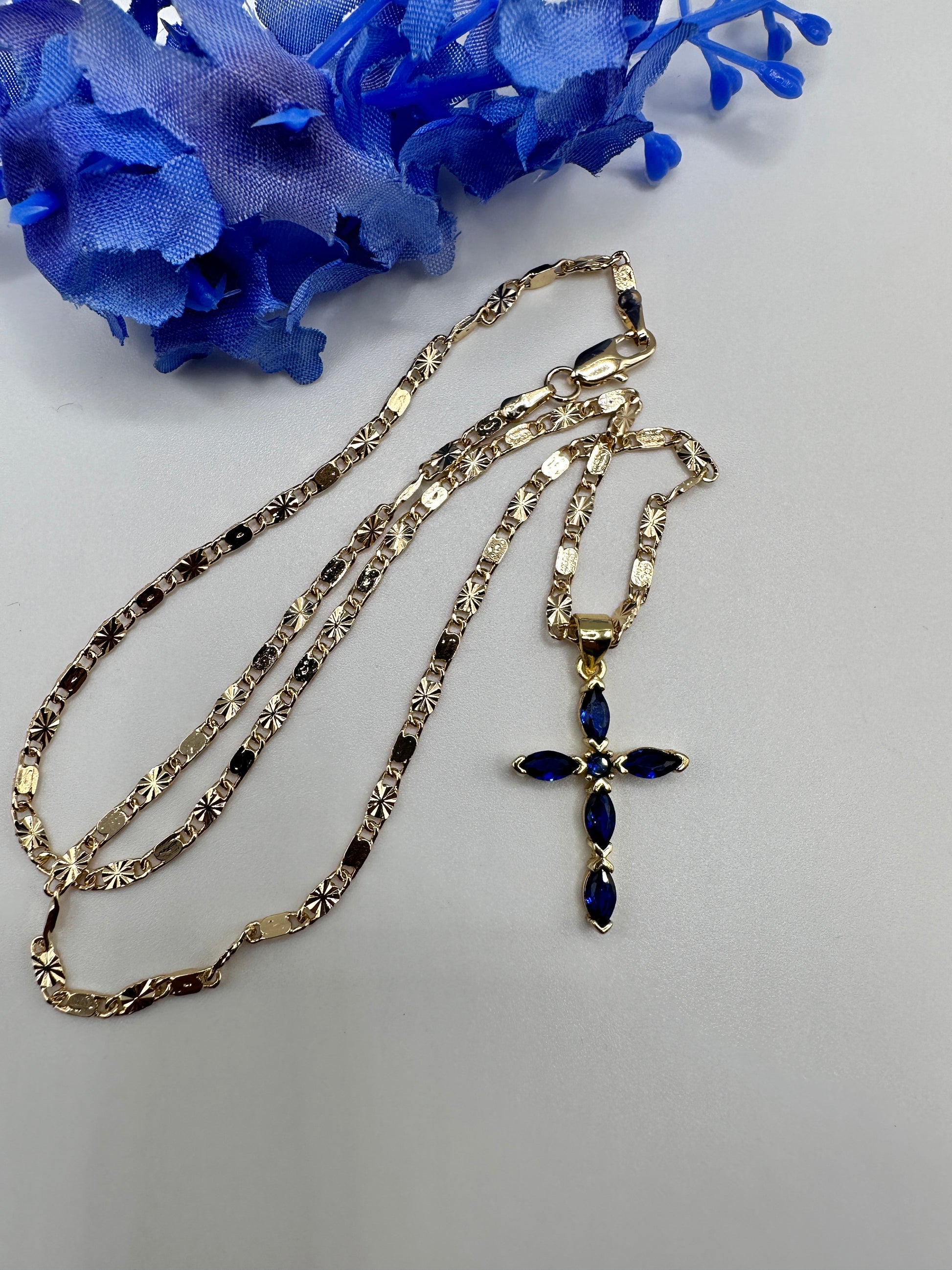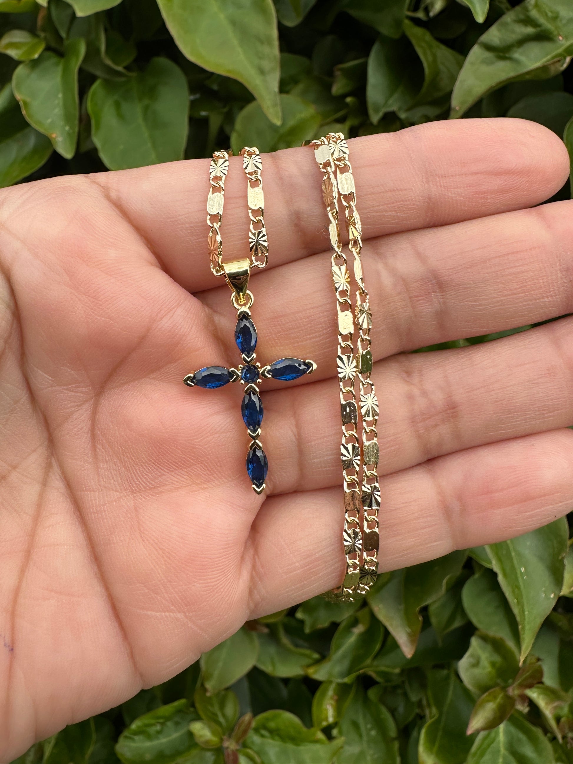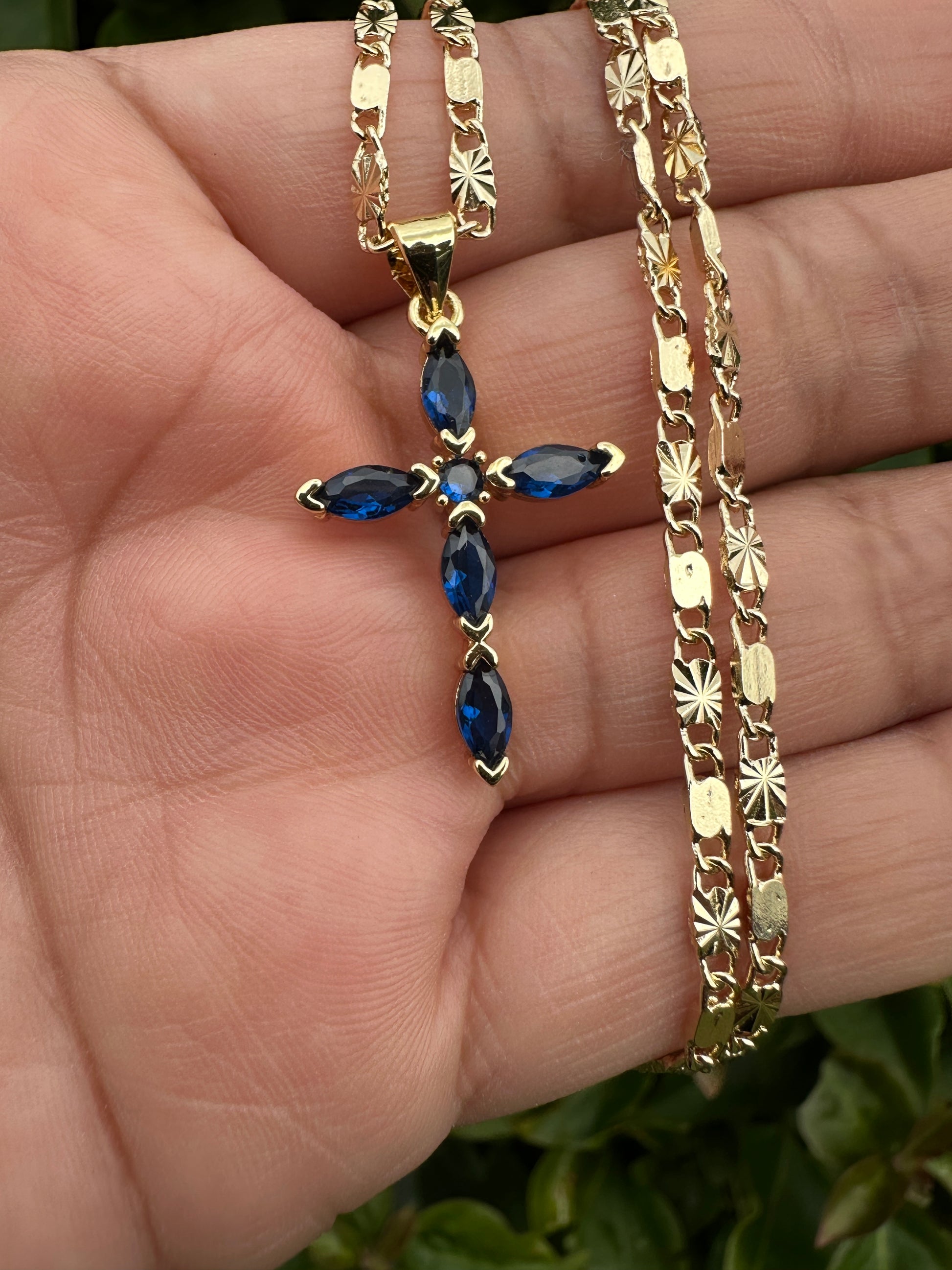 “Diamond Blue" Cross Necklace with Stones
