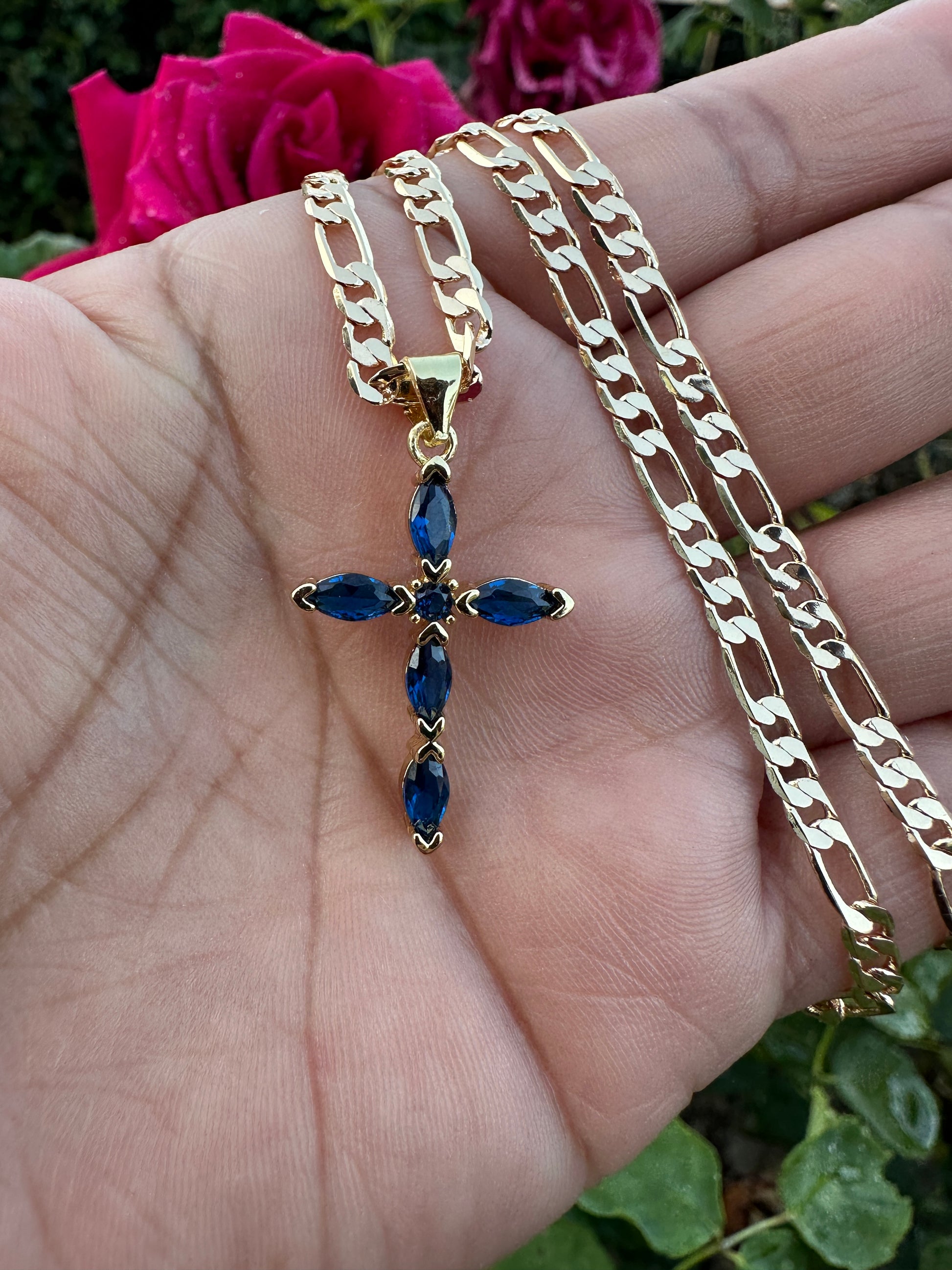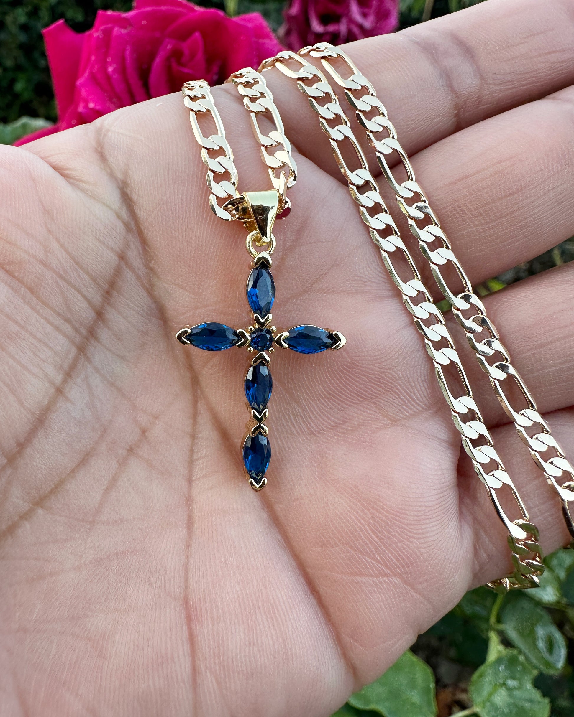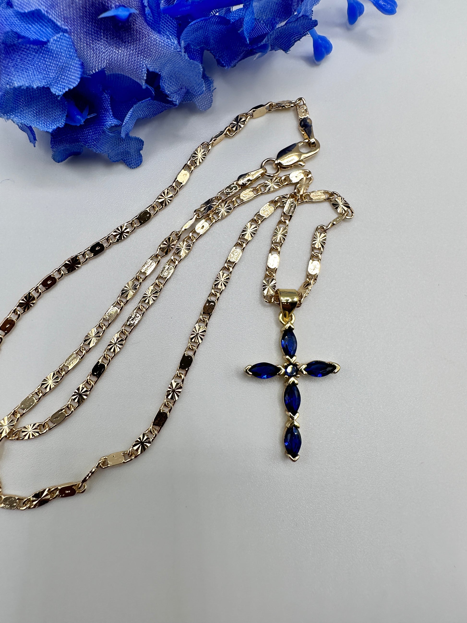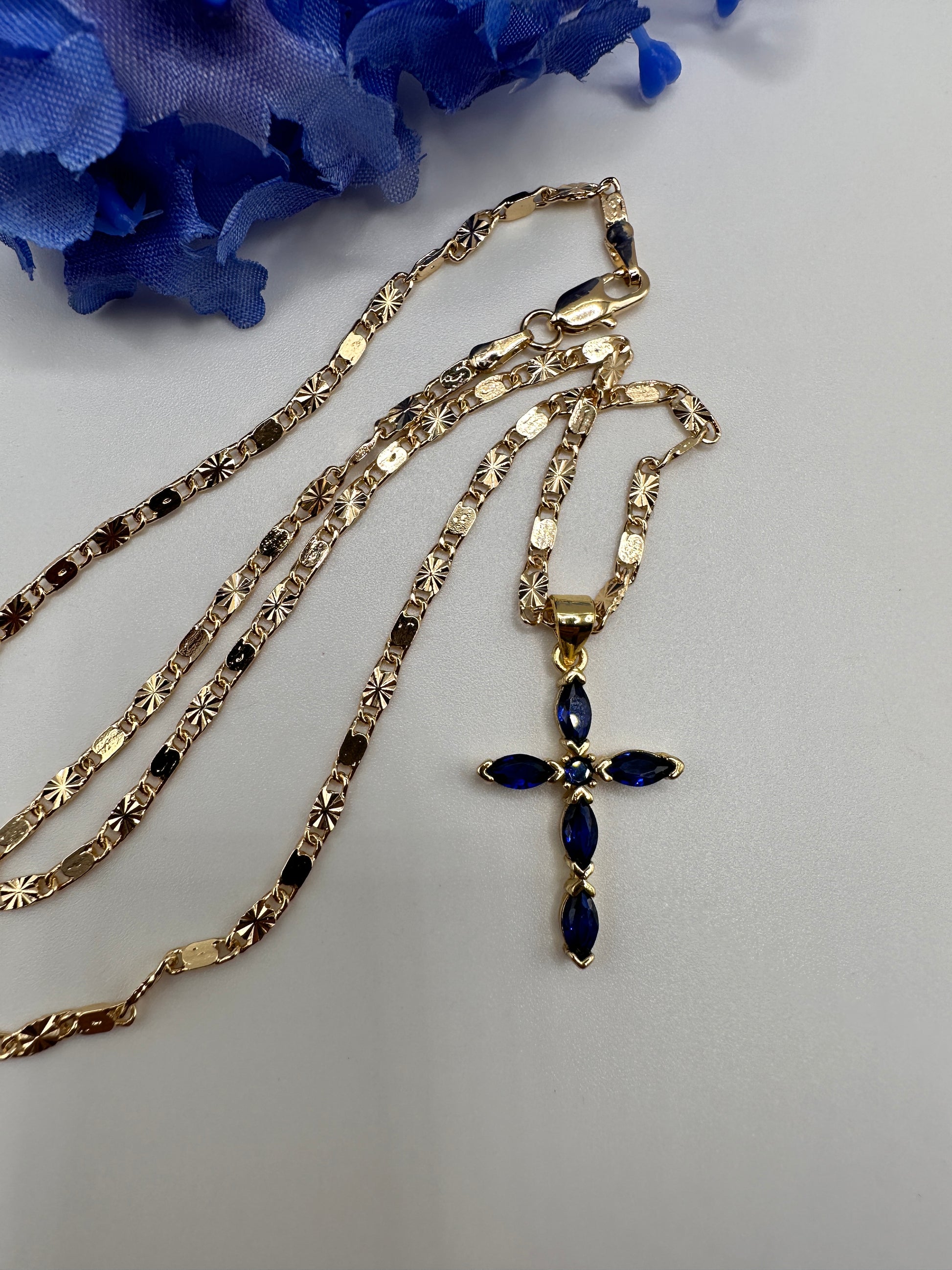 “Diamond Blue" Cross Necklace with Stones
