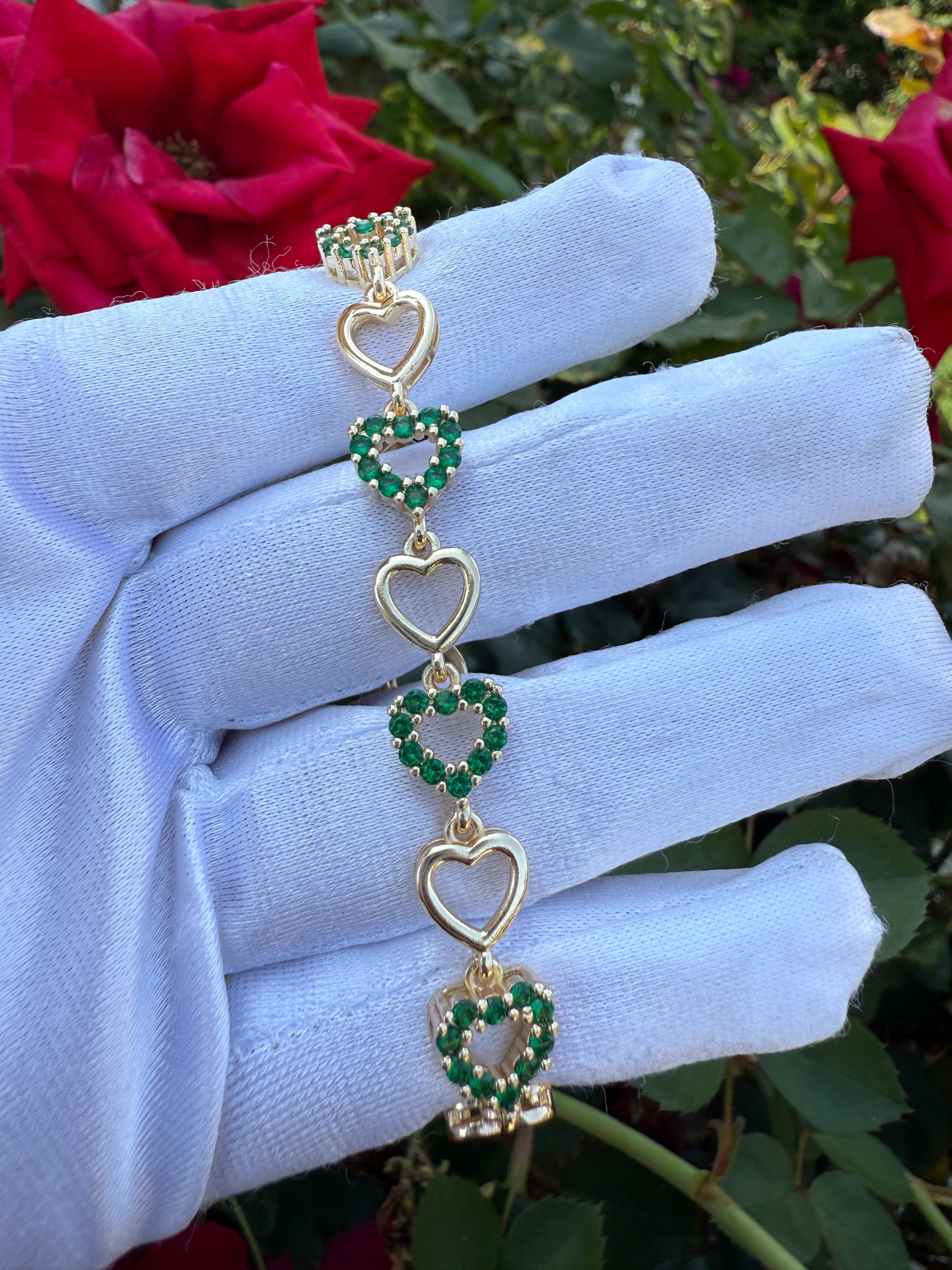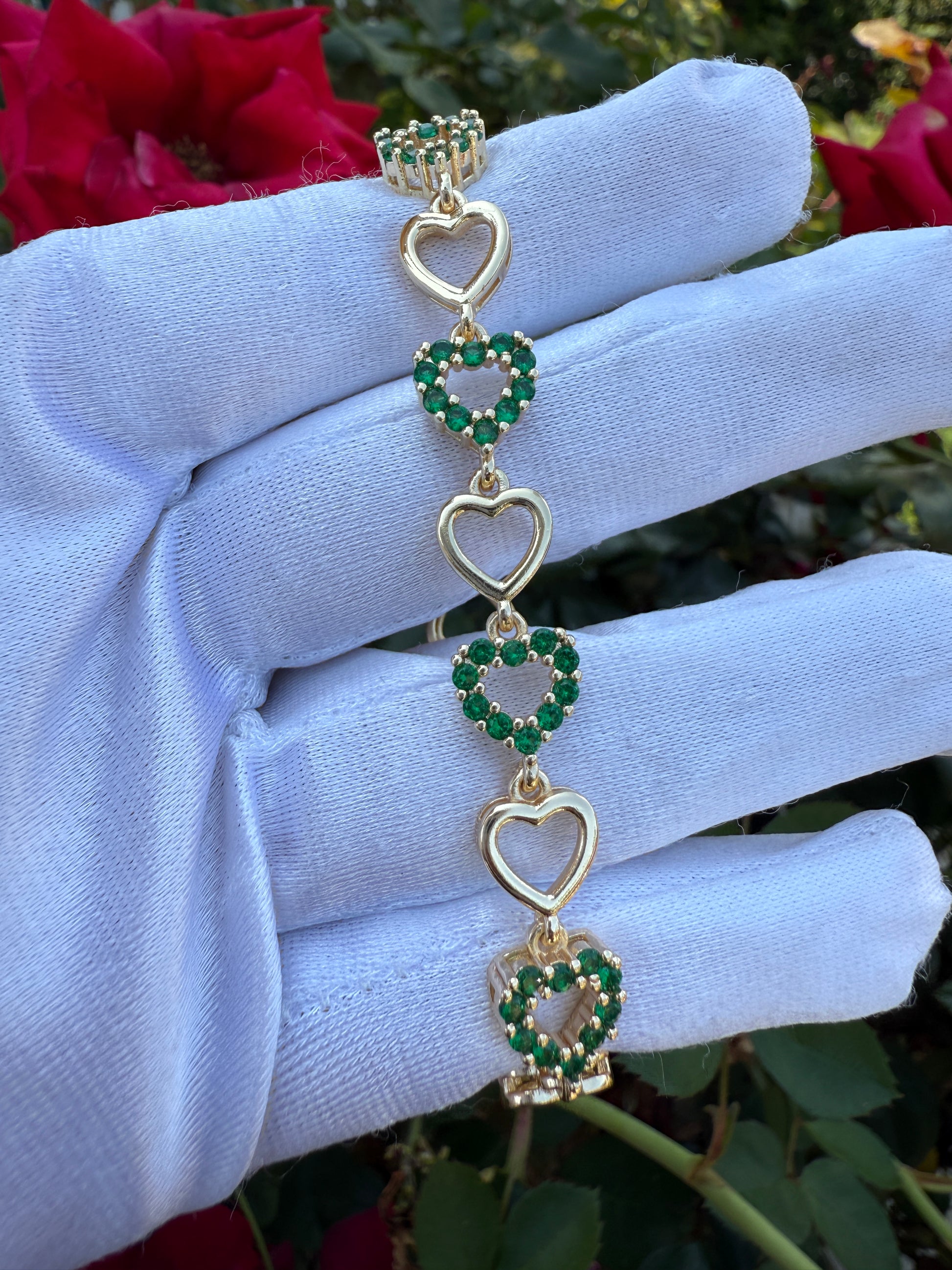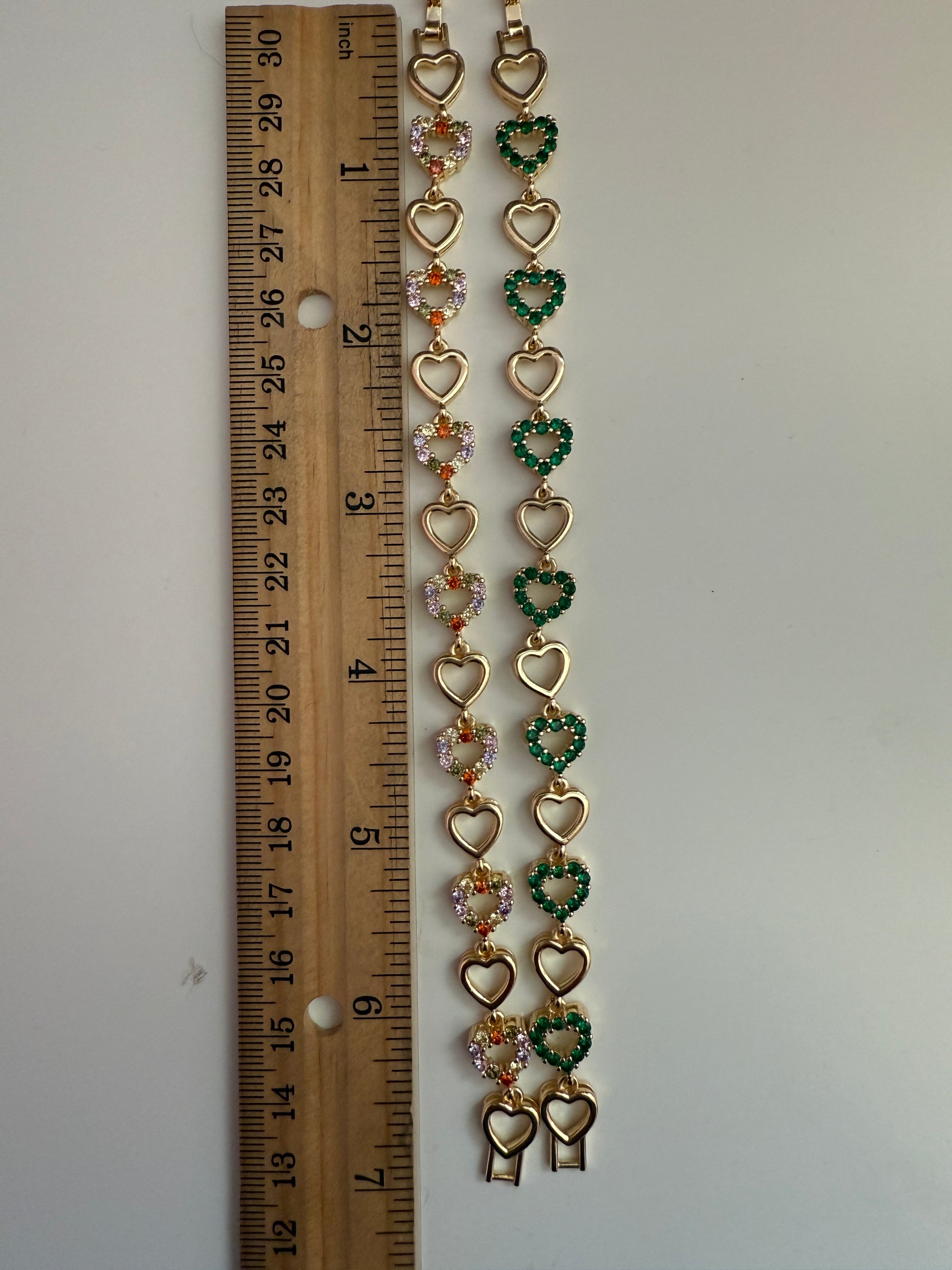Elegant Color Heart Bracelets for Her - Green and Clear Heart Pendants with Gold Accents