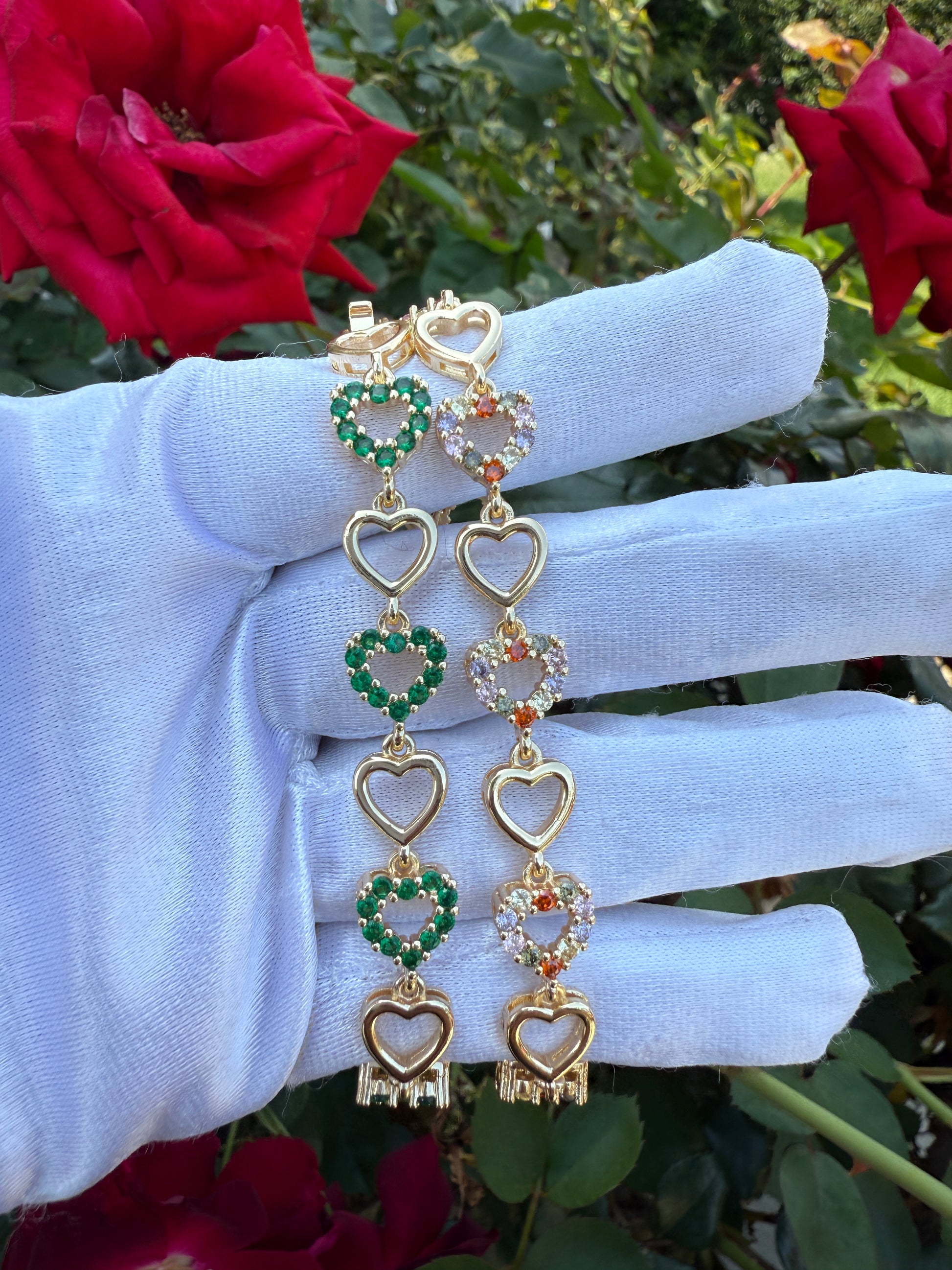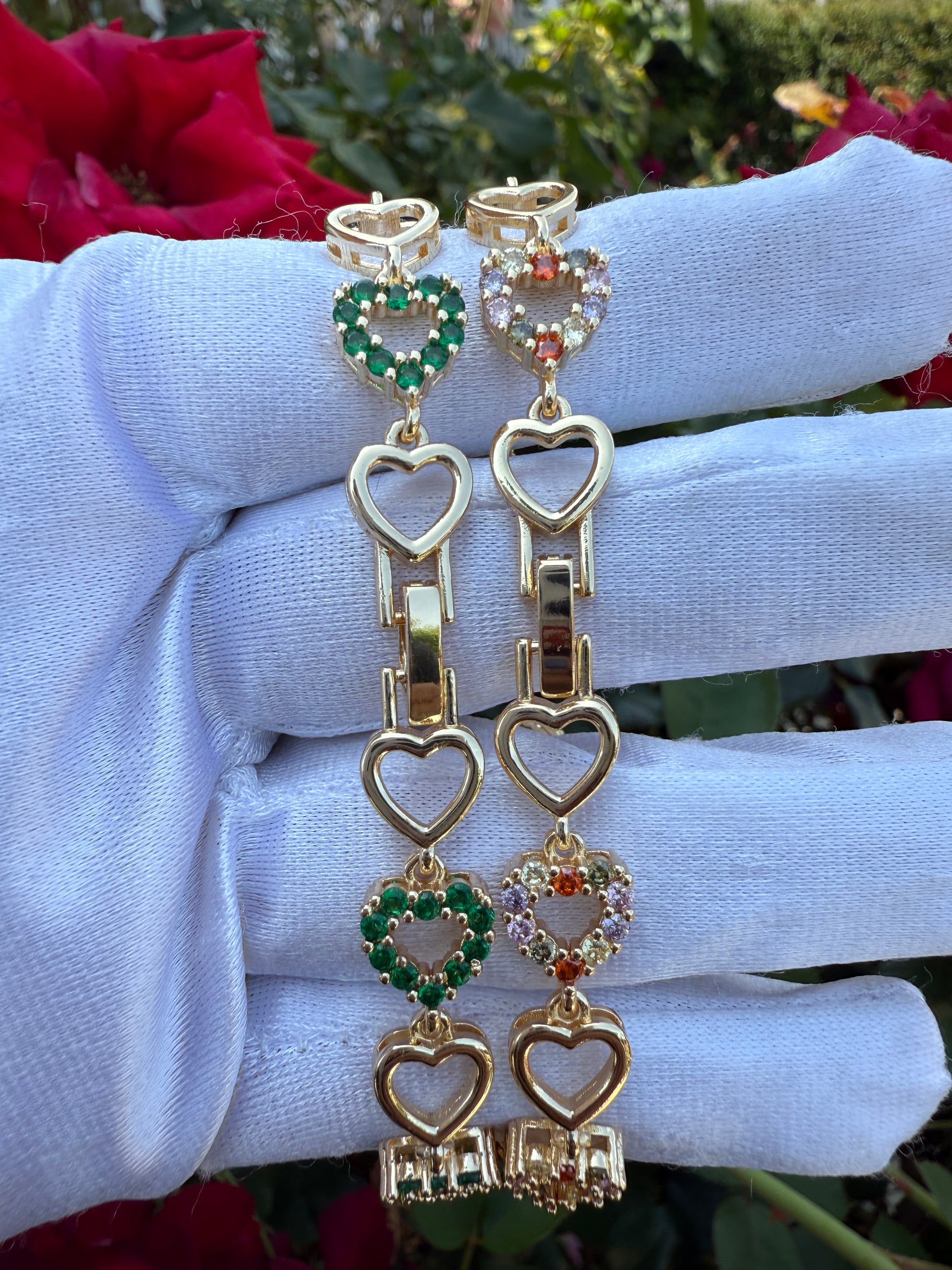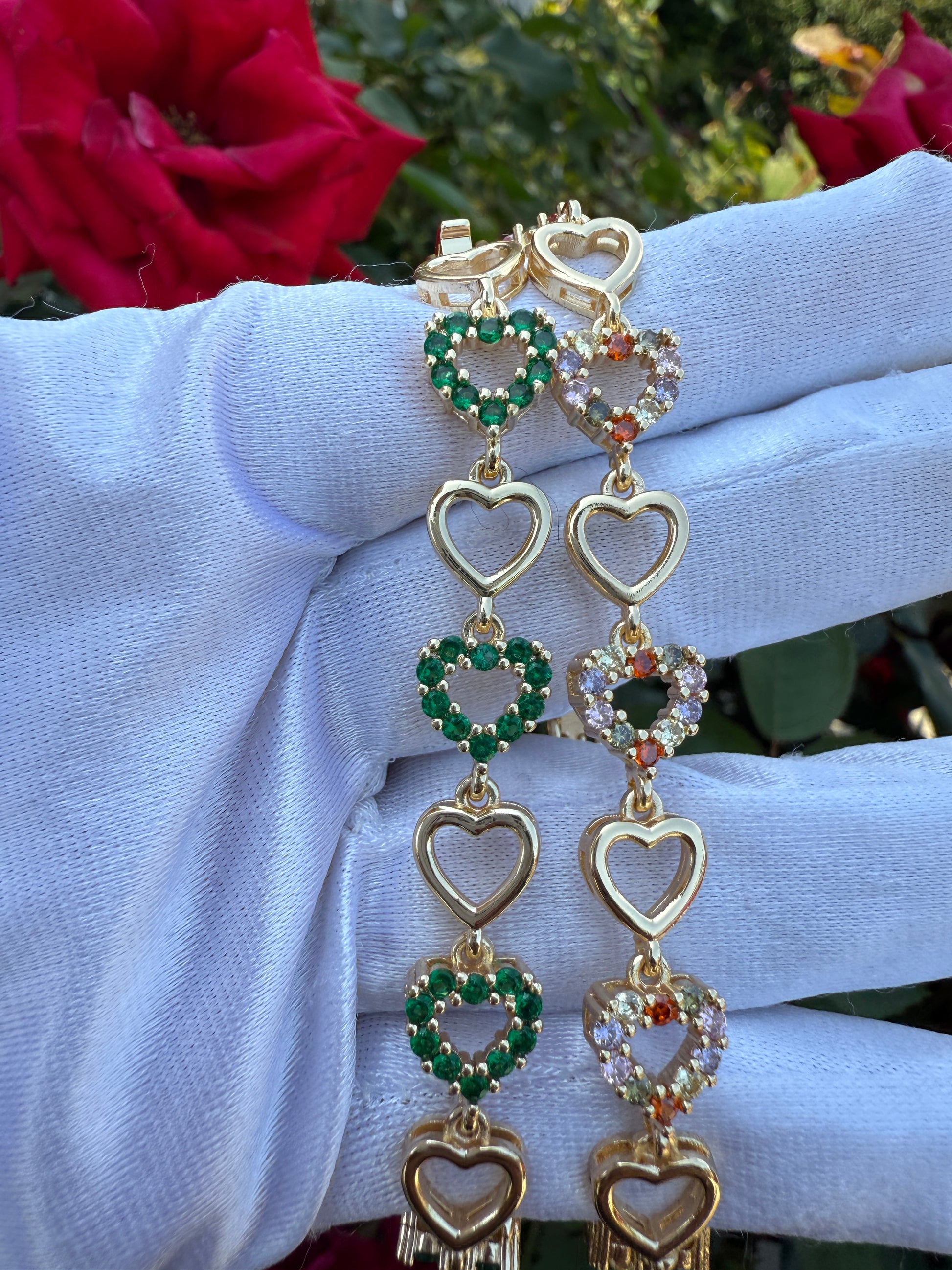 Elegant Color Heart Bracelets for Her - Green and Clear Heart Pendants with Gold Accents