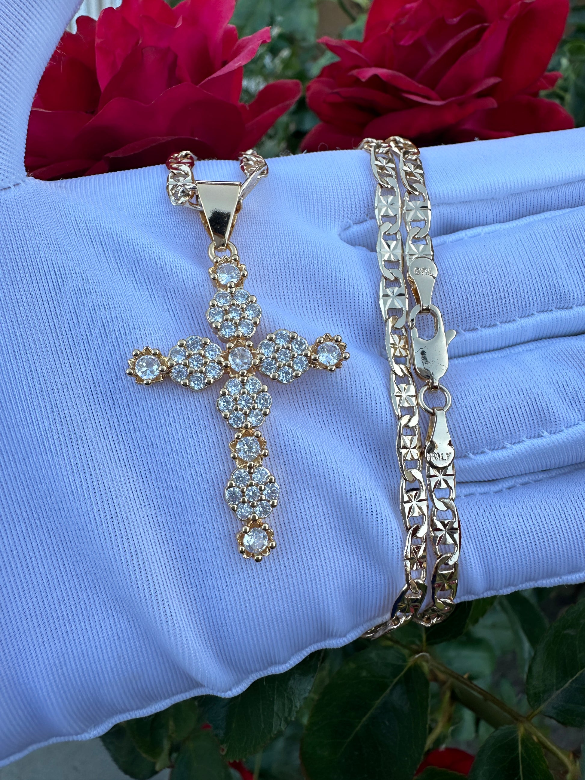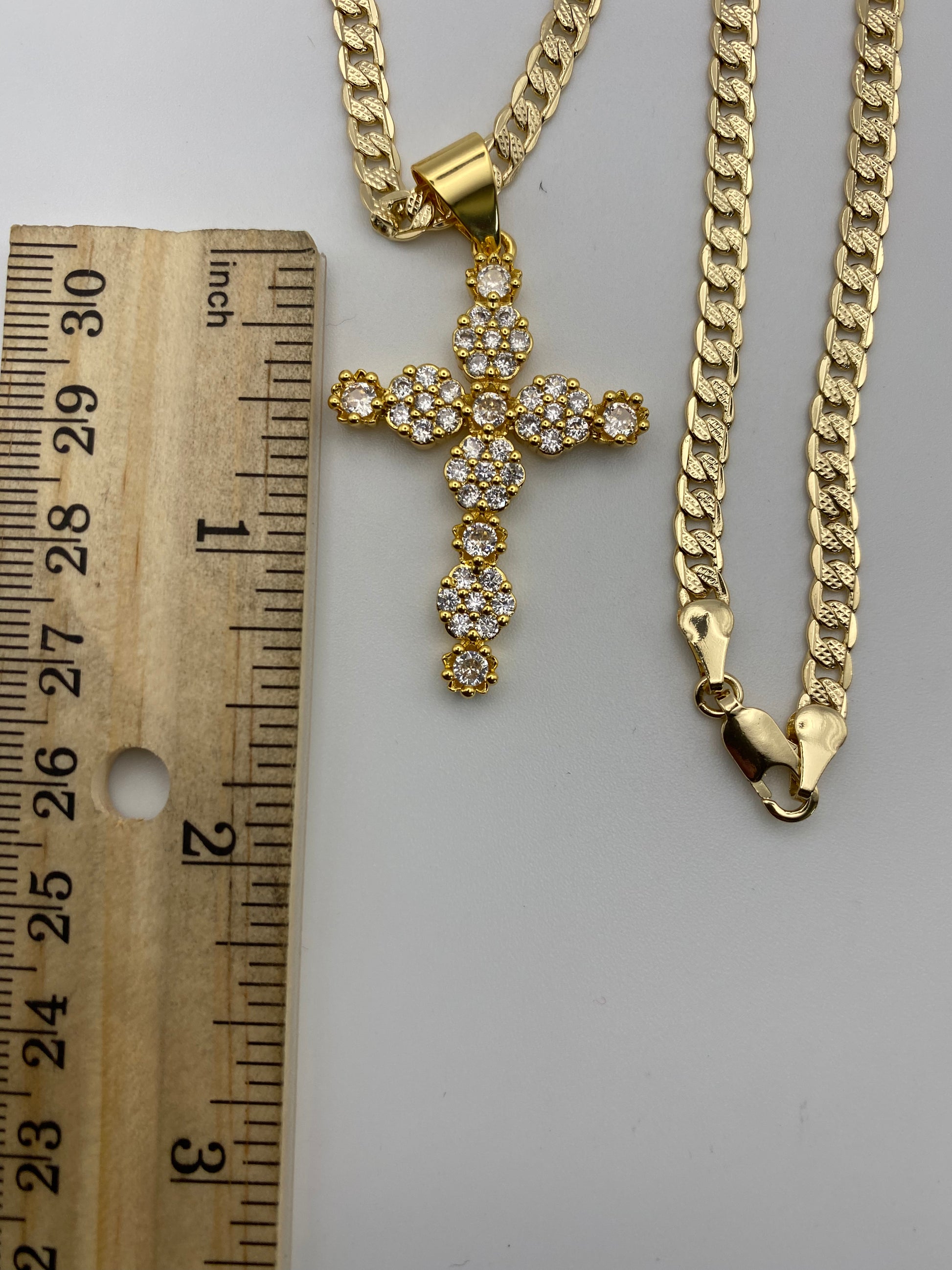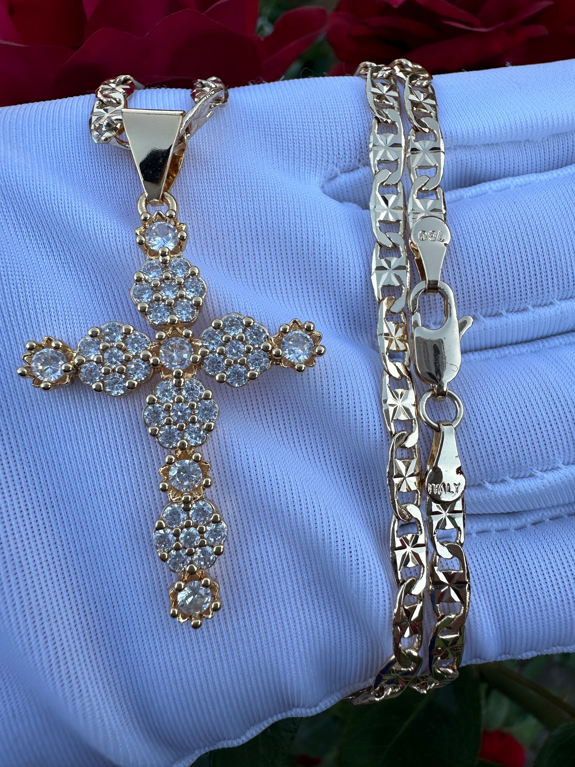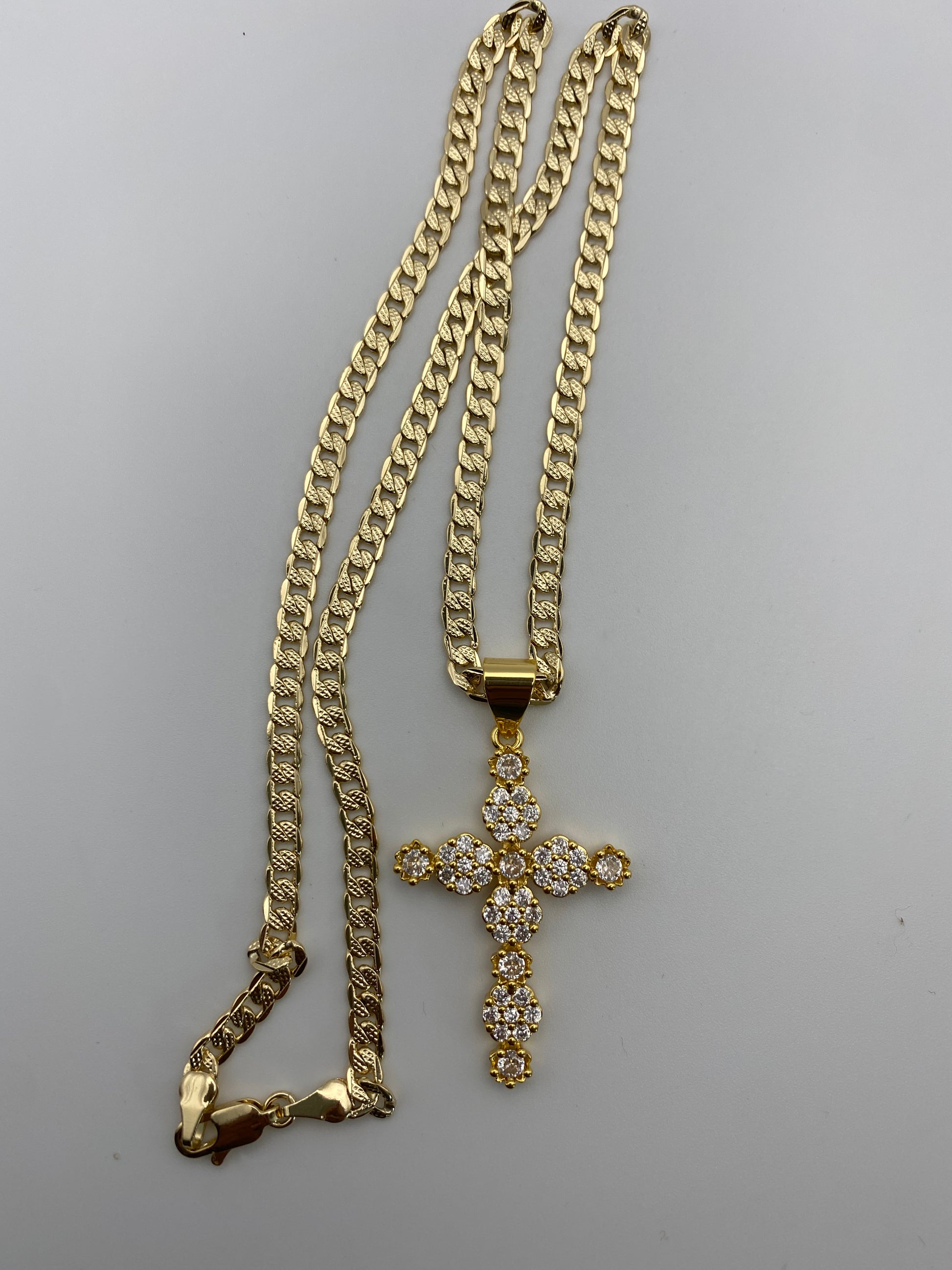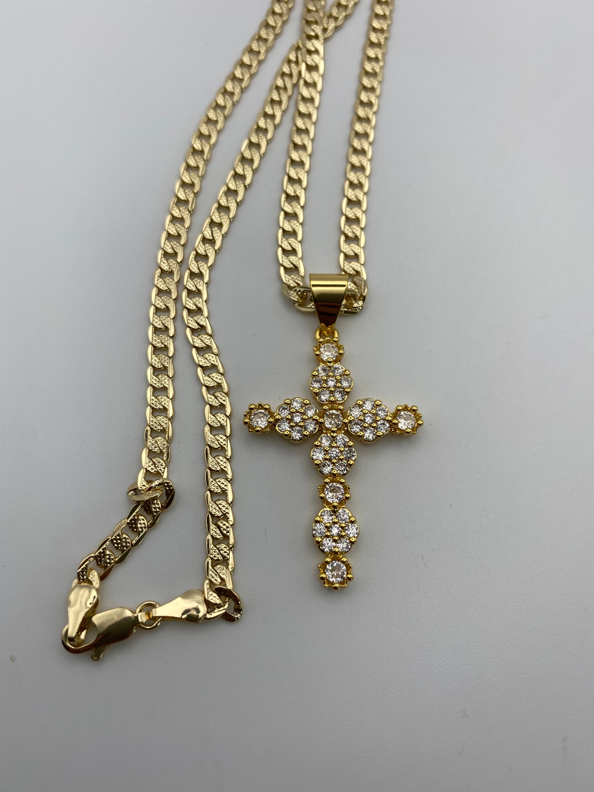 “Jade” Cross Diamond Necklace 18k Gold Plated