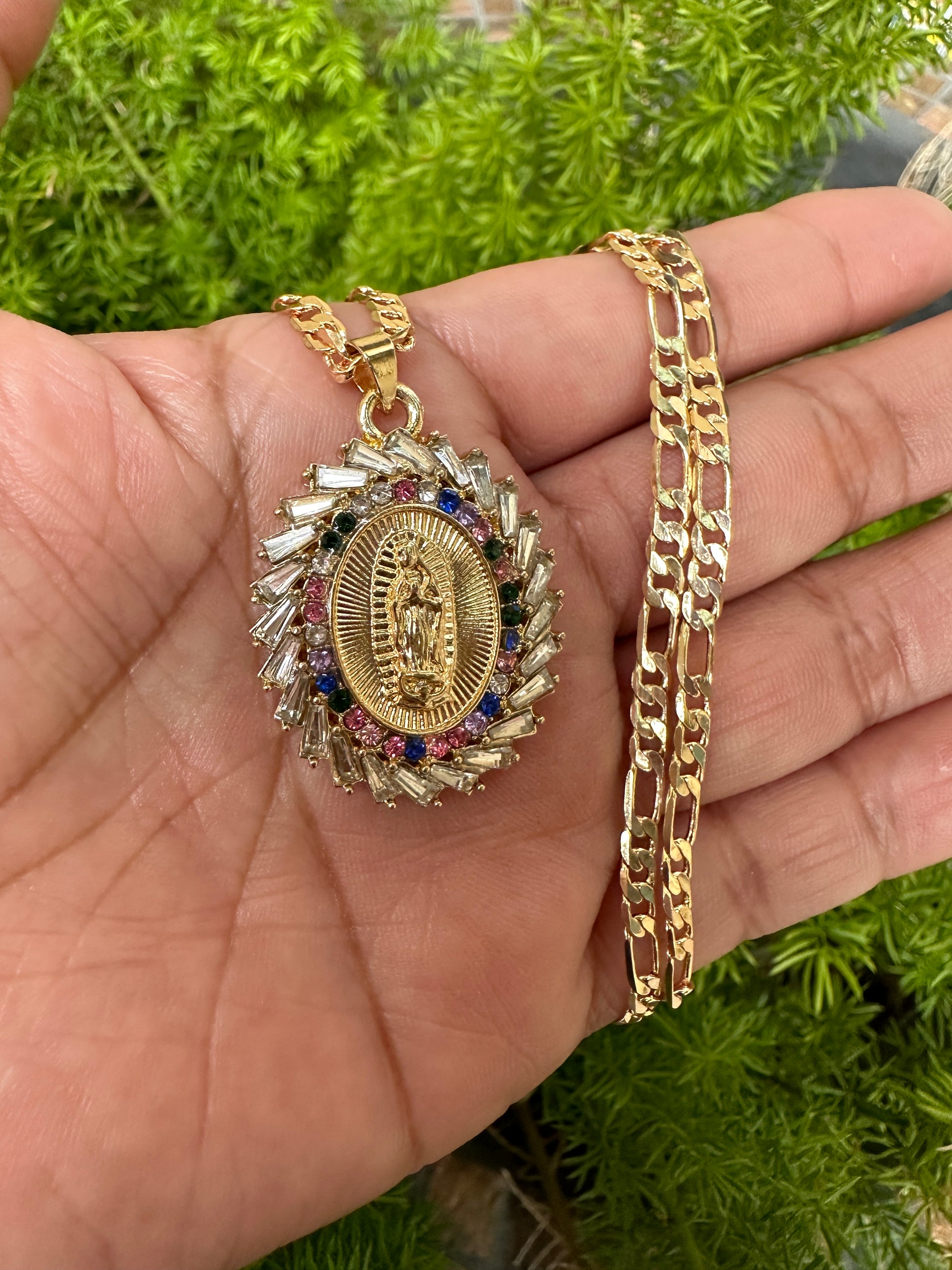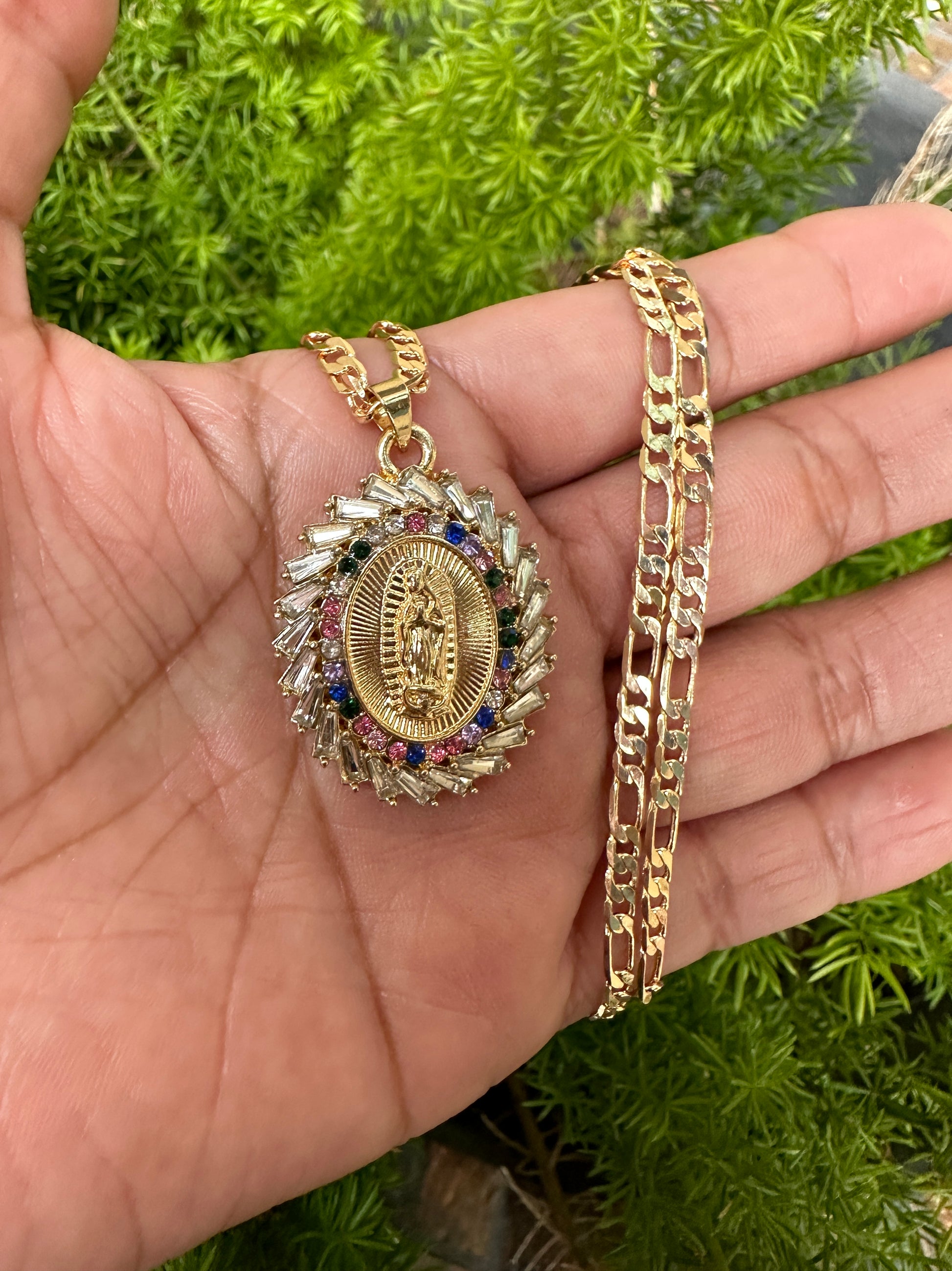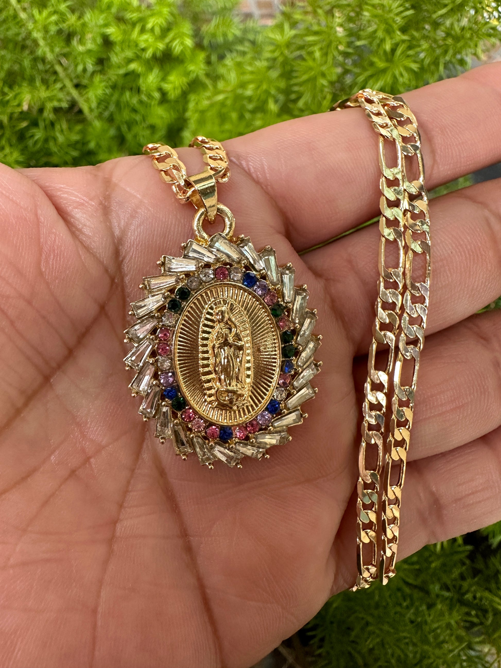 “Rainbow” Virgin Necklace with Colored Stones Gold Plated