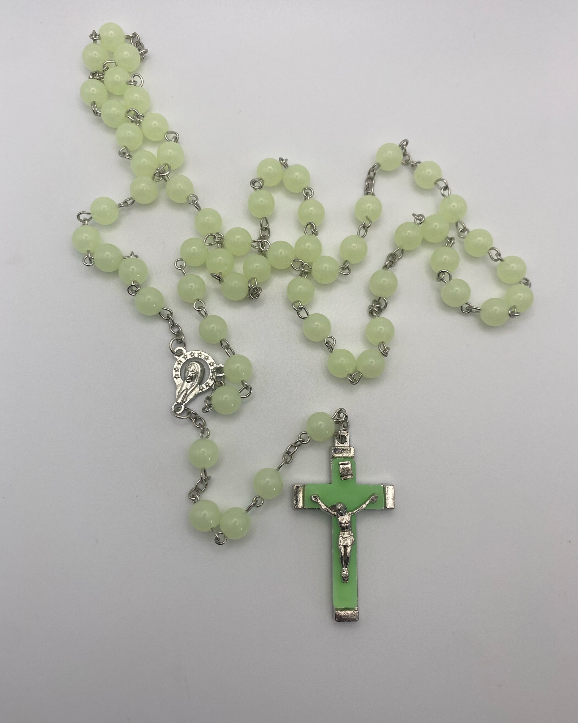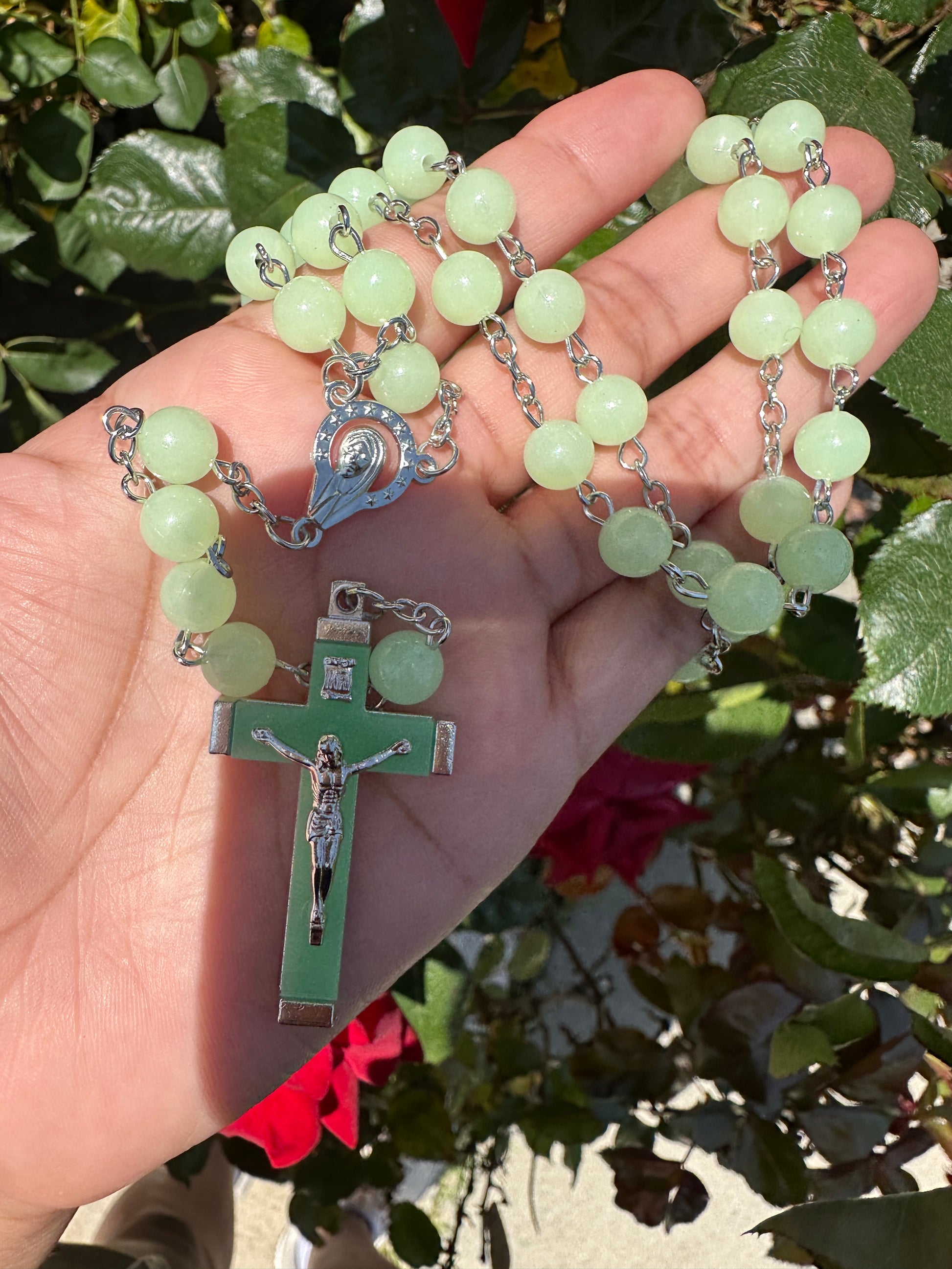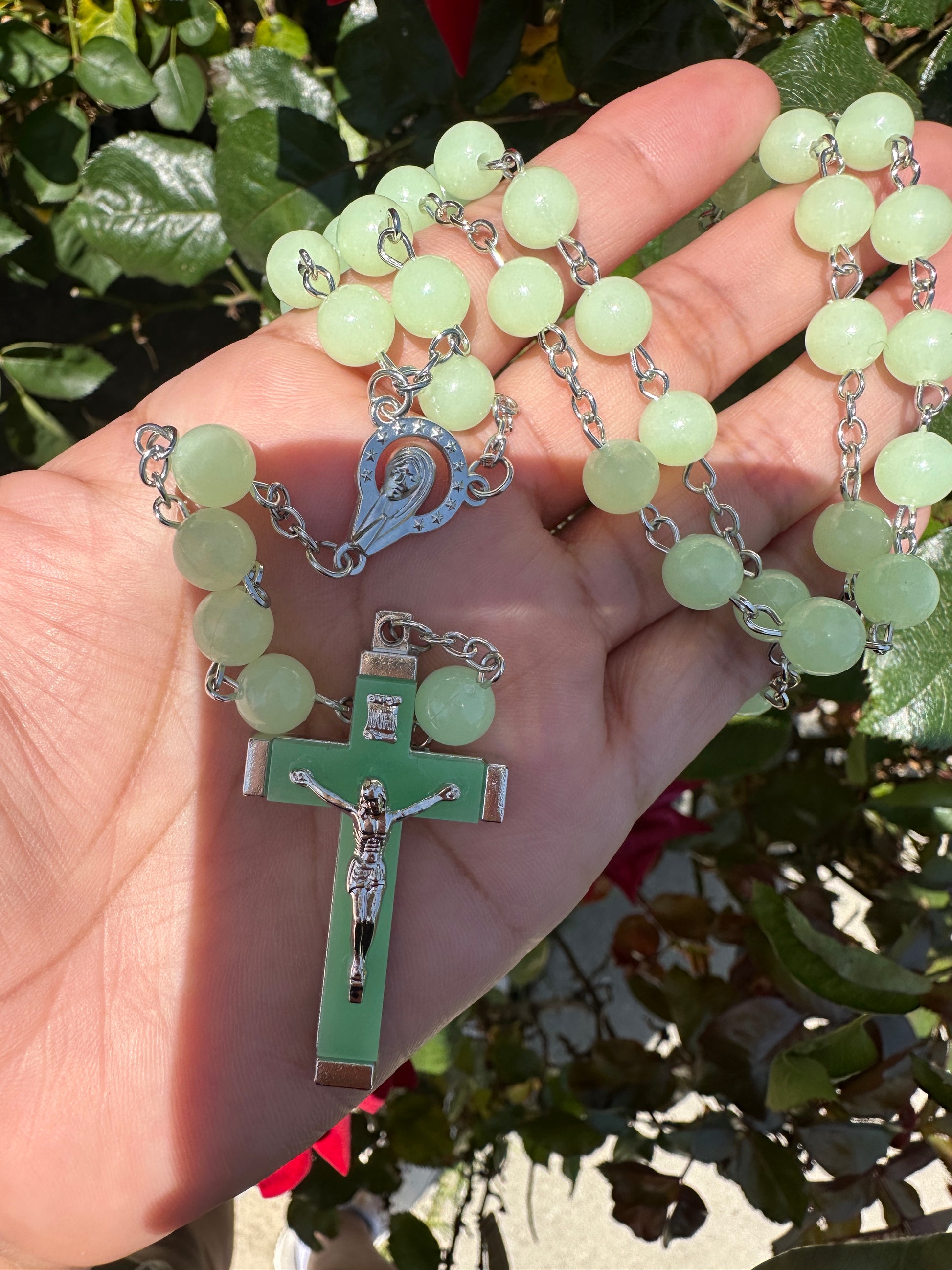 Rosary Beads Luminous Noctilucent Necklace Catholicism Religious Jewelry Party Gift Prayer, 8mm (Green) Glow In The Dark Rosary 22” Long . Rosario Brilla en la Noche con crucifico.Glow Rosary