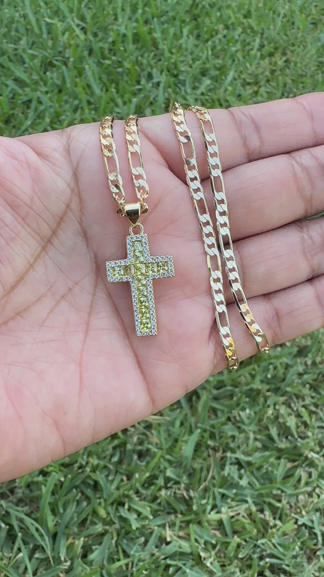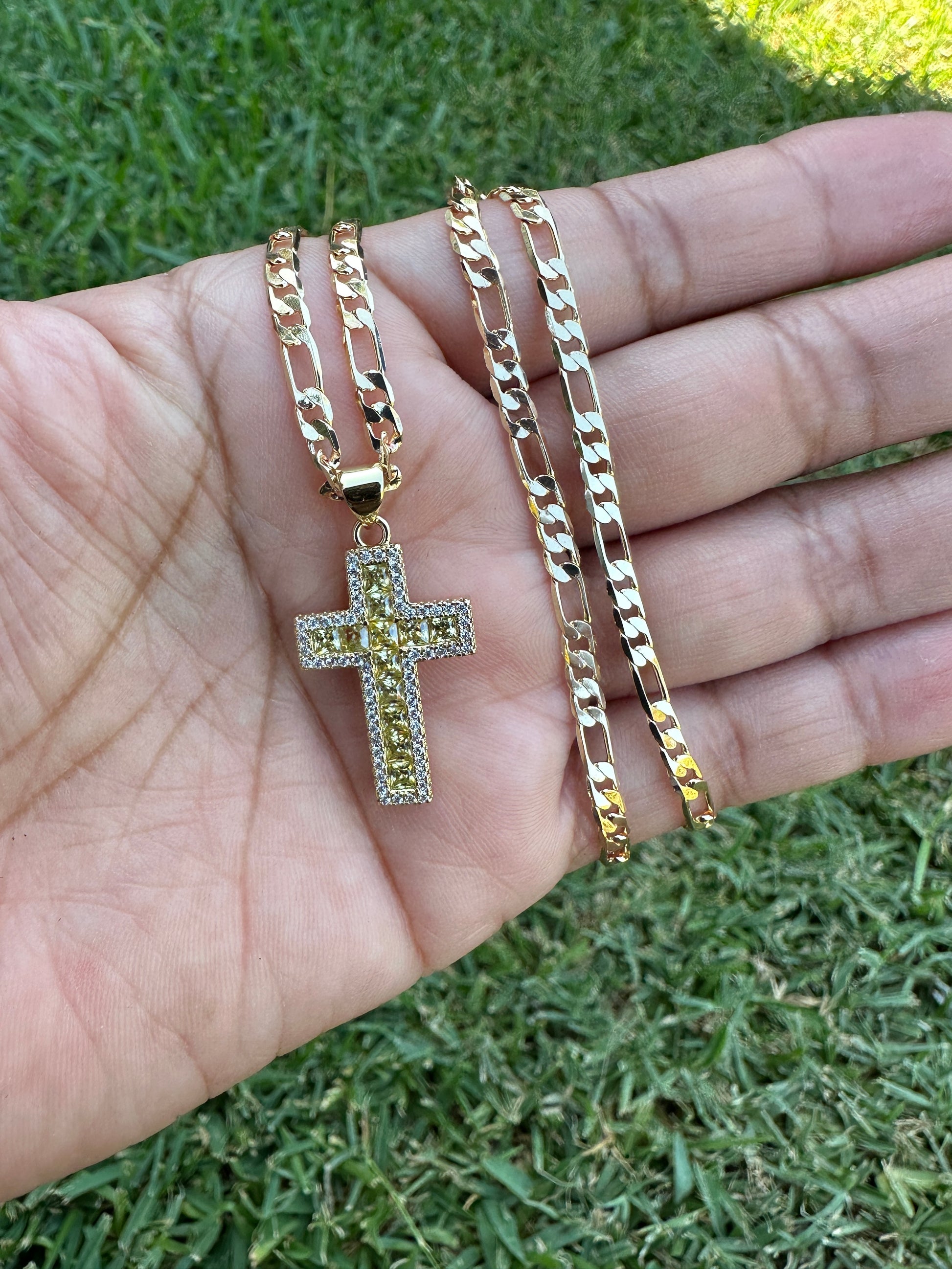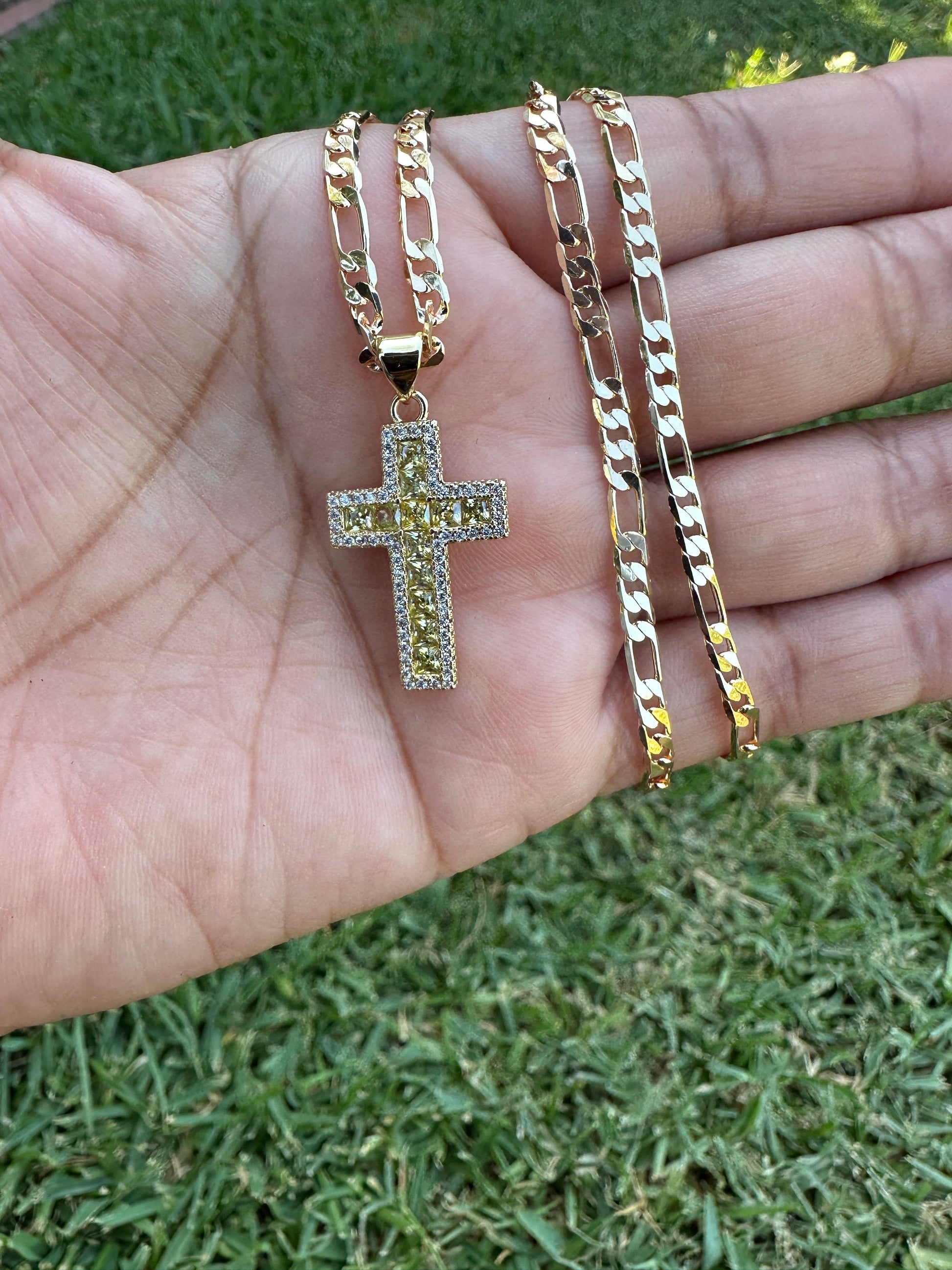 Crystal Yellow - Cross Diamond Necklace Gold Plated