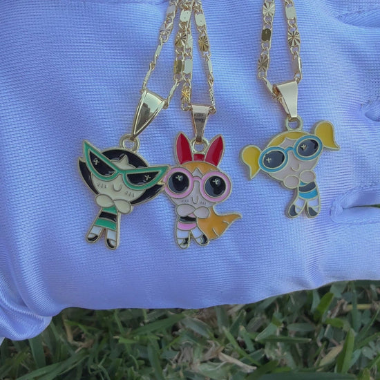 Girls - Puff - Girl Necklaces Pink- Blue- Green