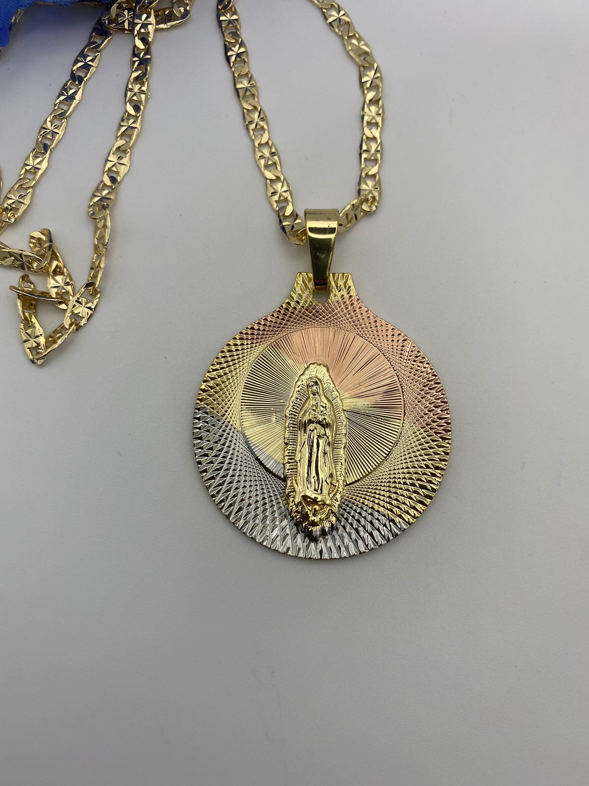“Angelica” Virgen round Tricolor Necklace Gold Plated