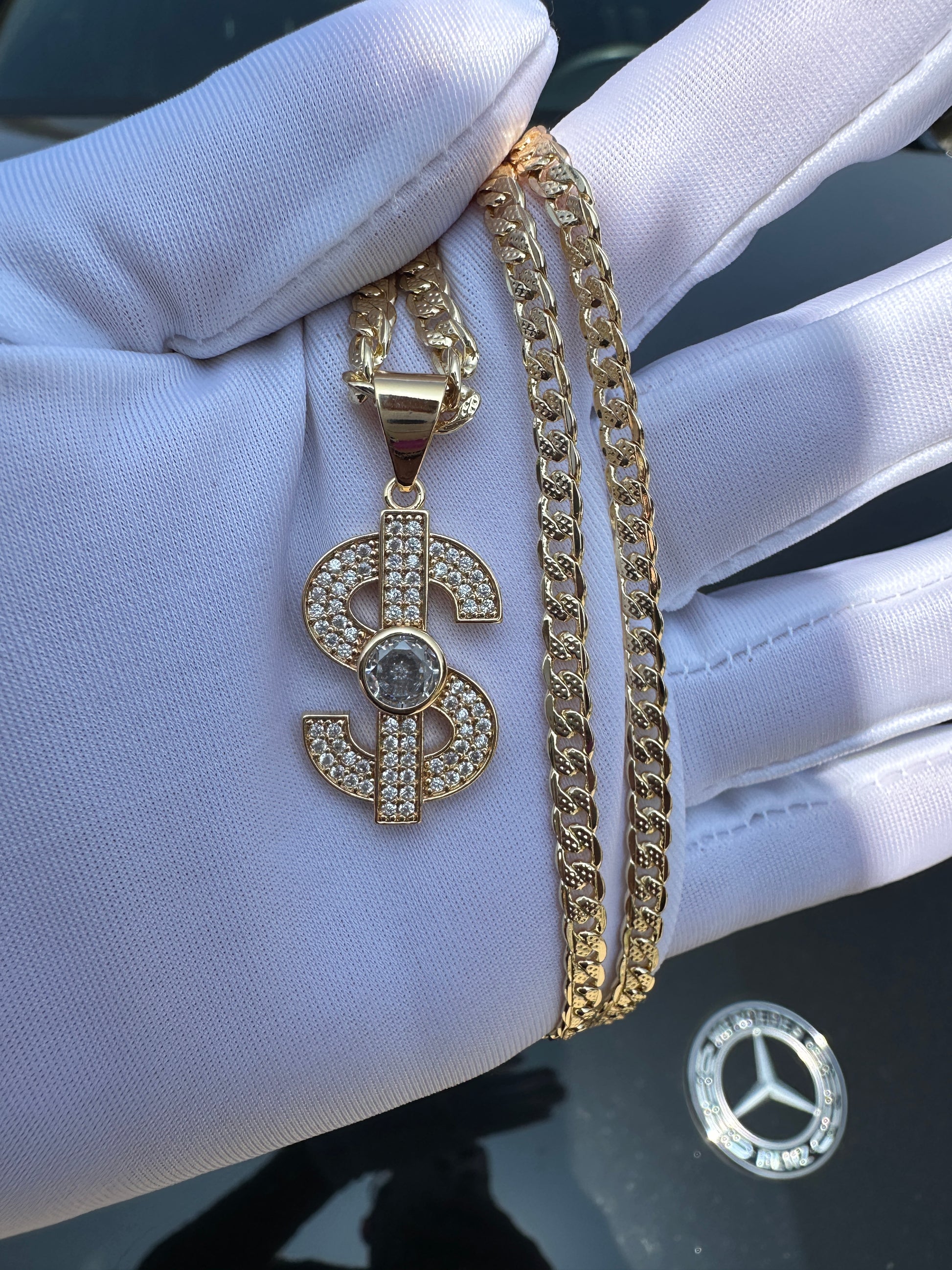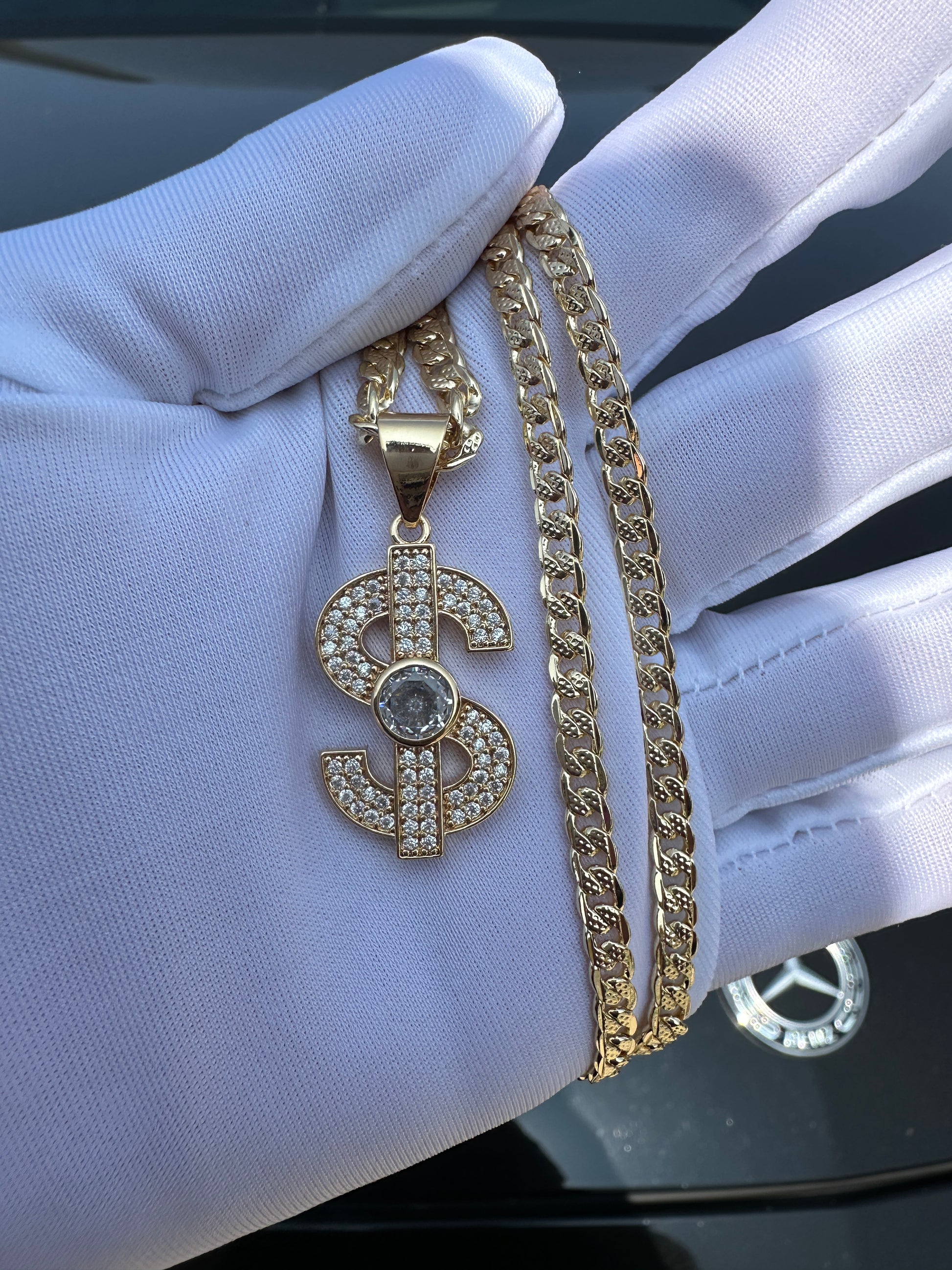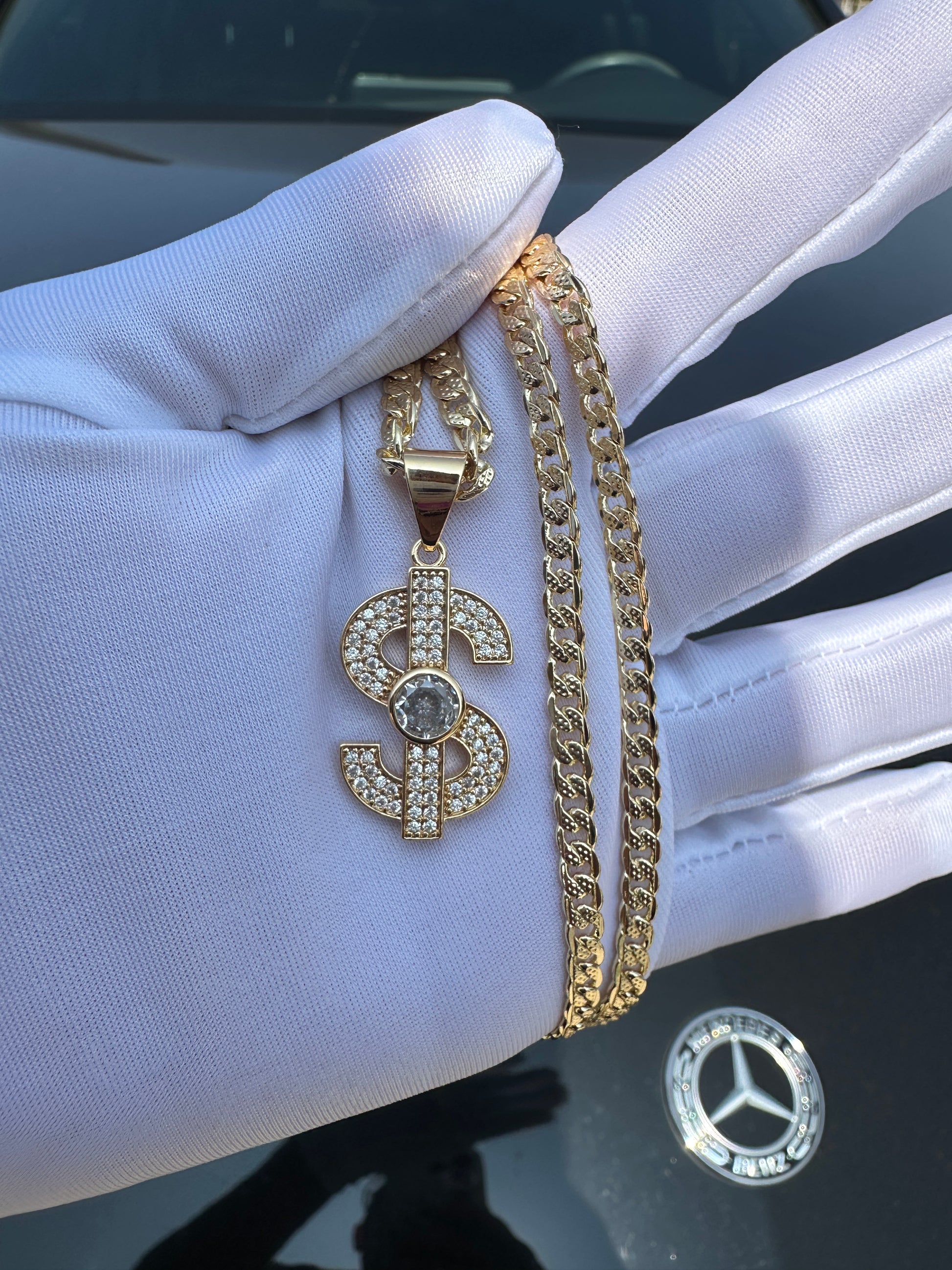Bling Money Symbol Necklace for him or her in Cuban chain
