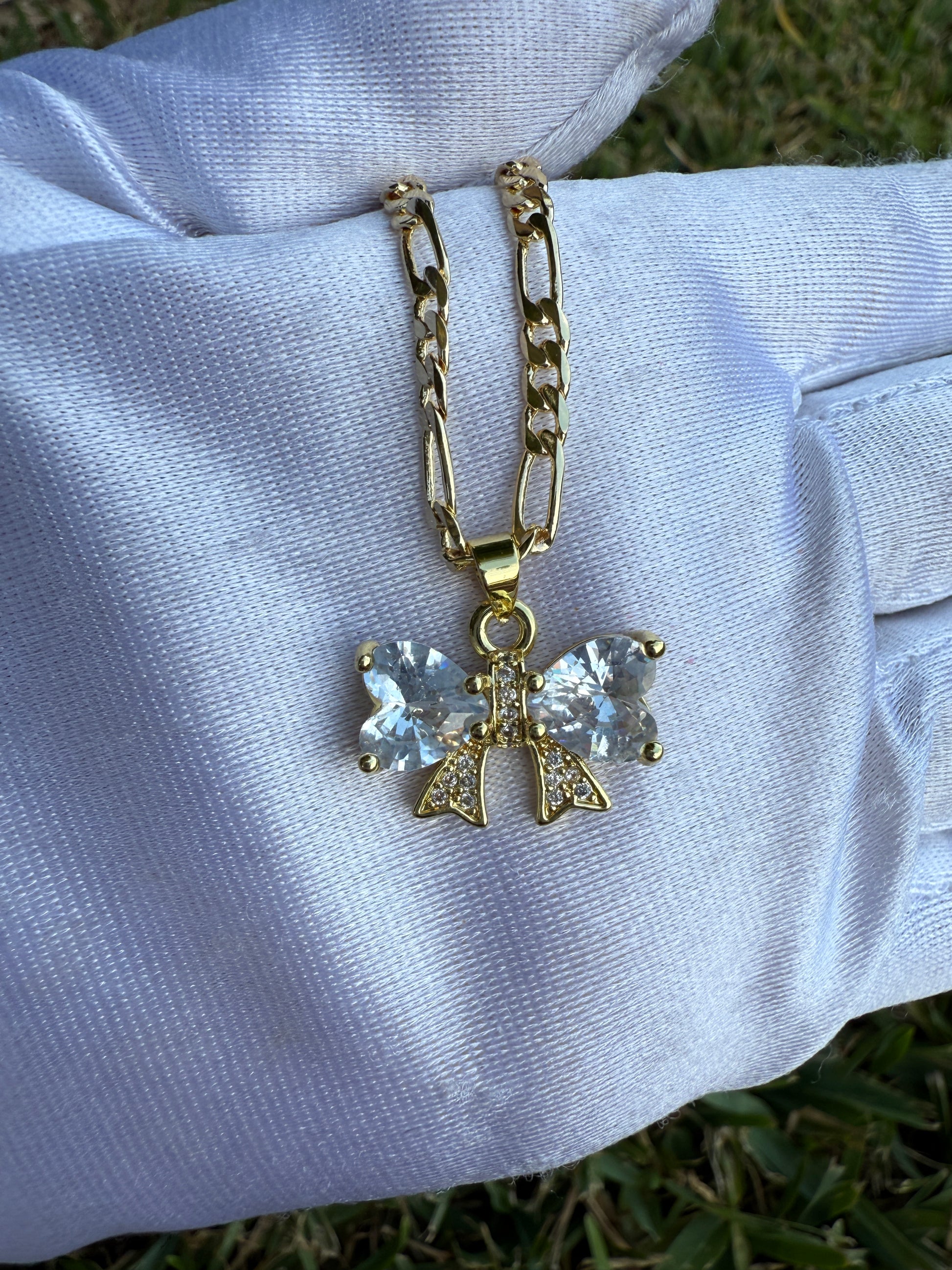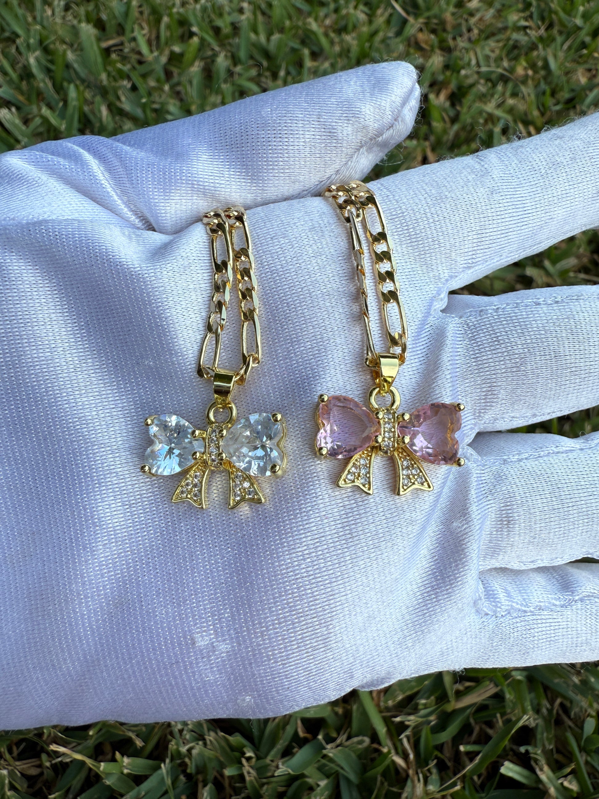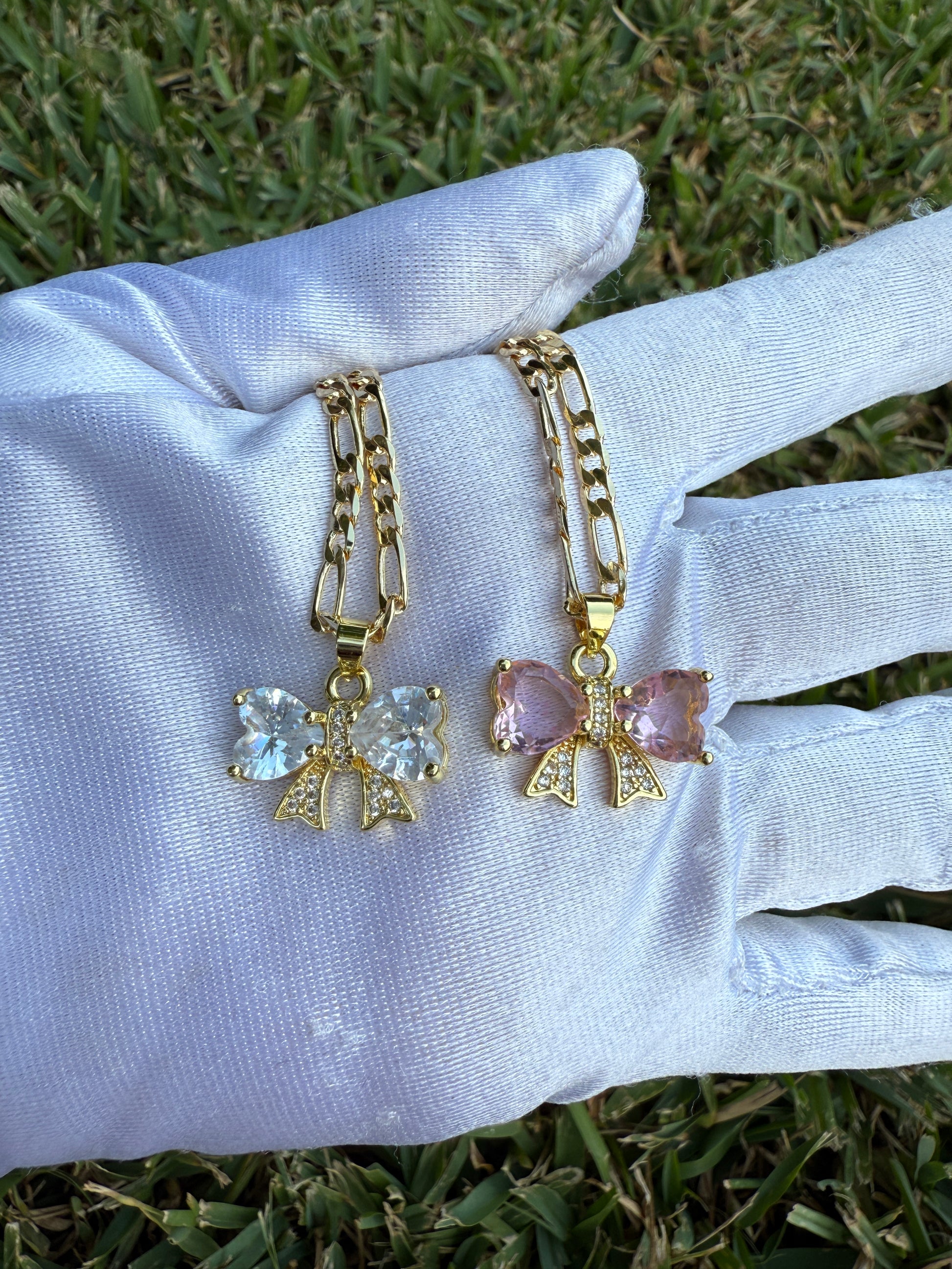Bow Necklace with Chain - Gold-Tone Design Featuring Bow Charms and Chain Details
