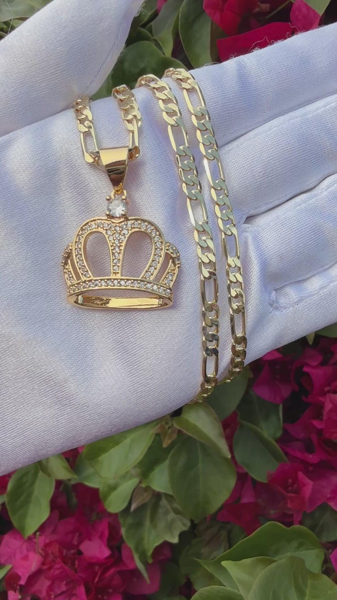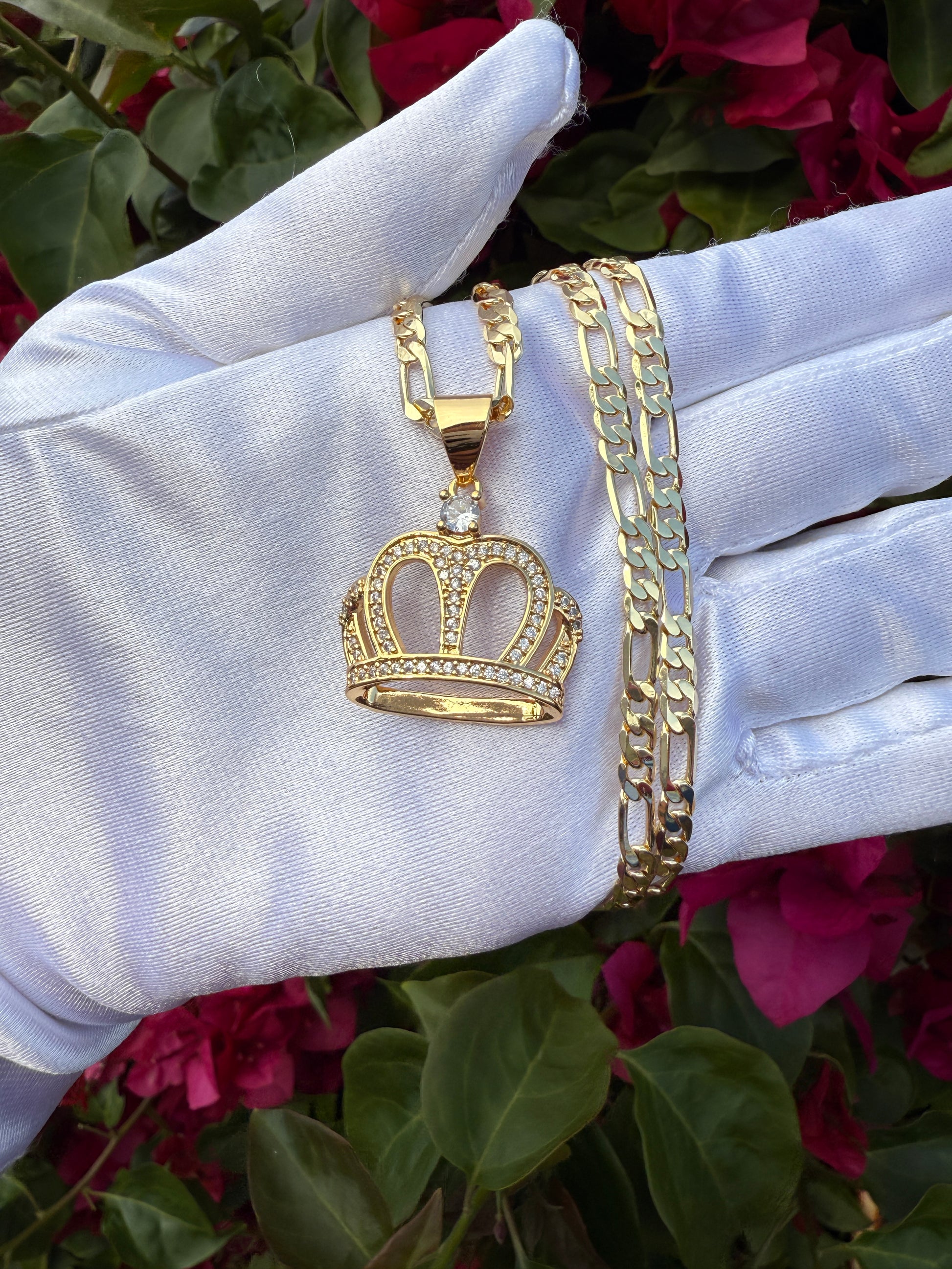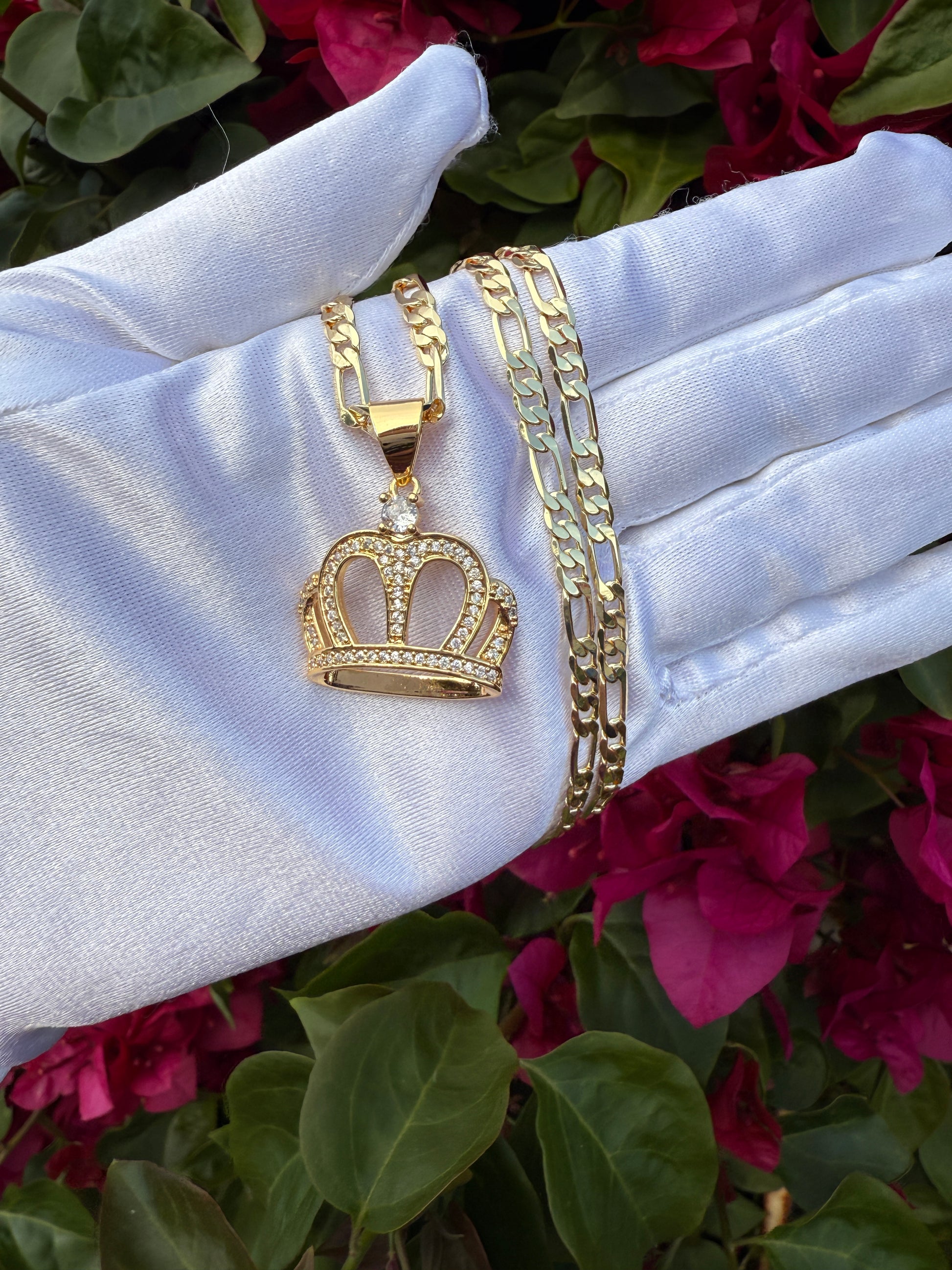 Crown Necklace with Figaro chain for him or her tarnish free
