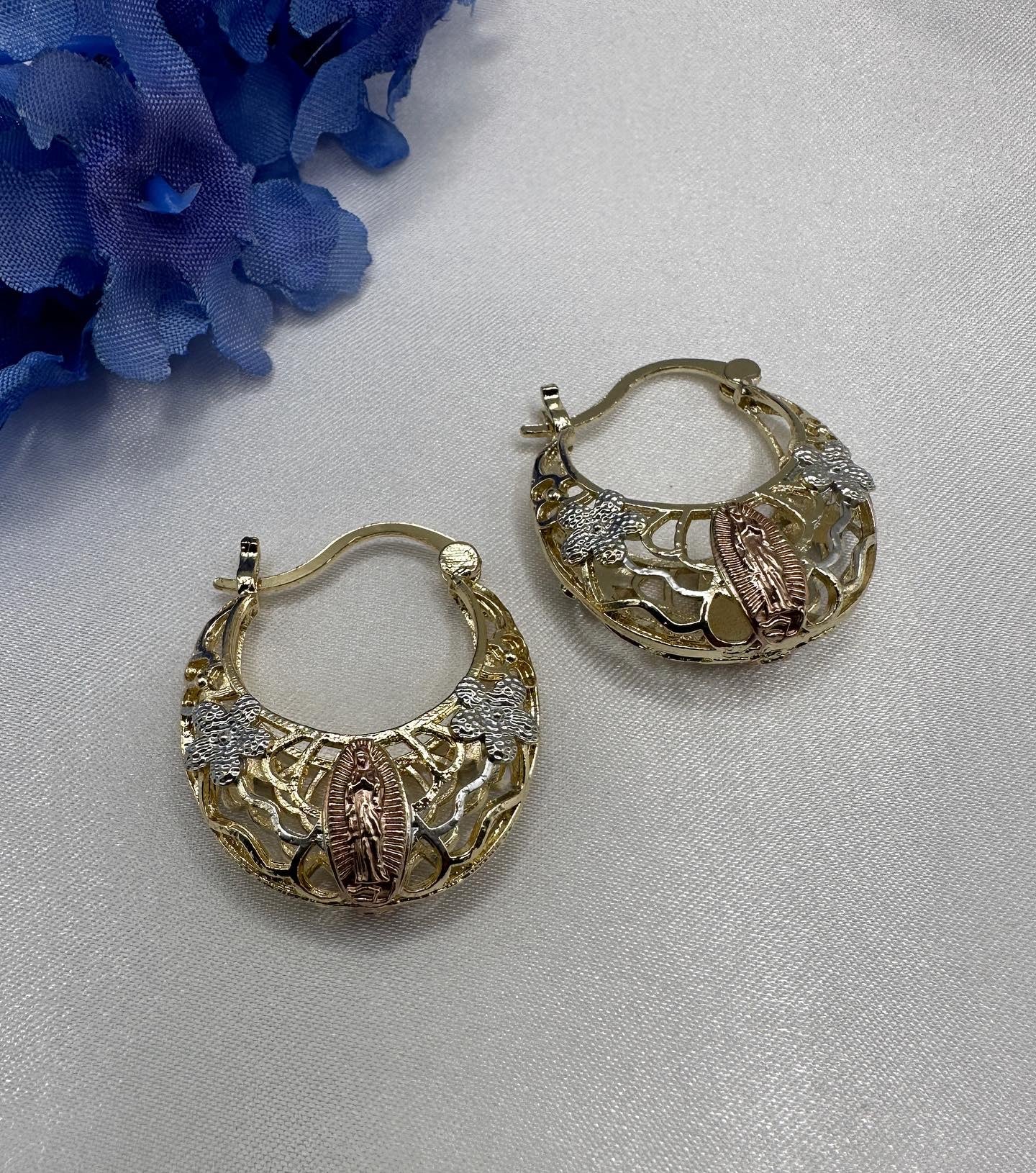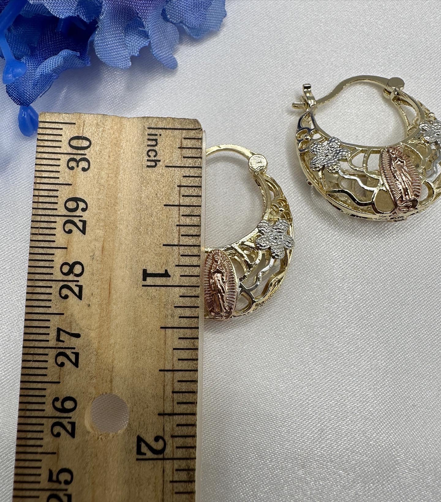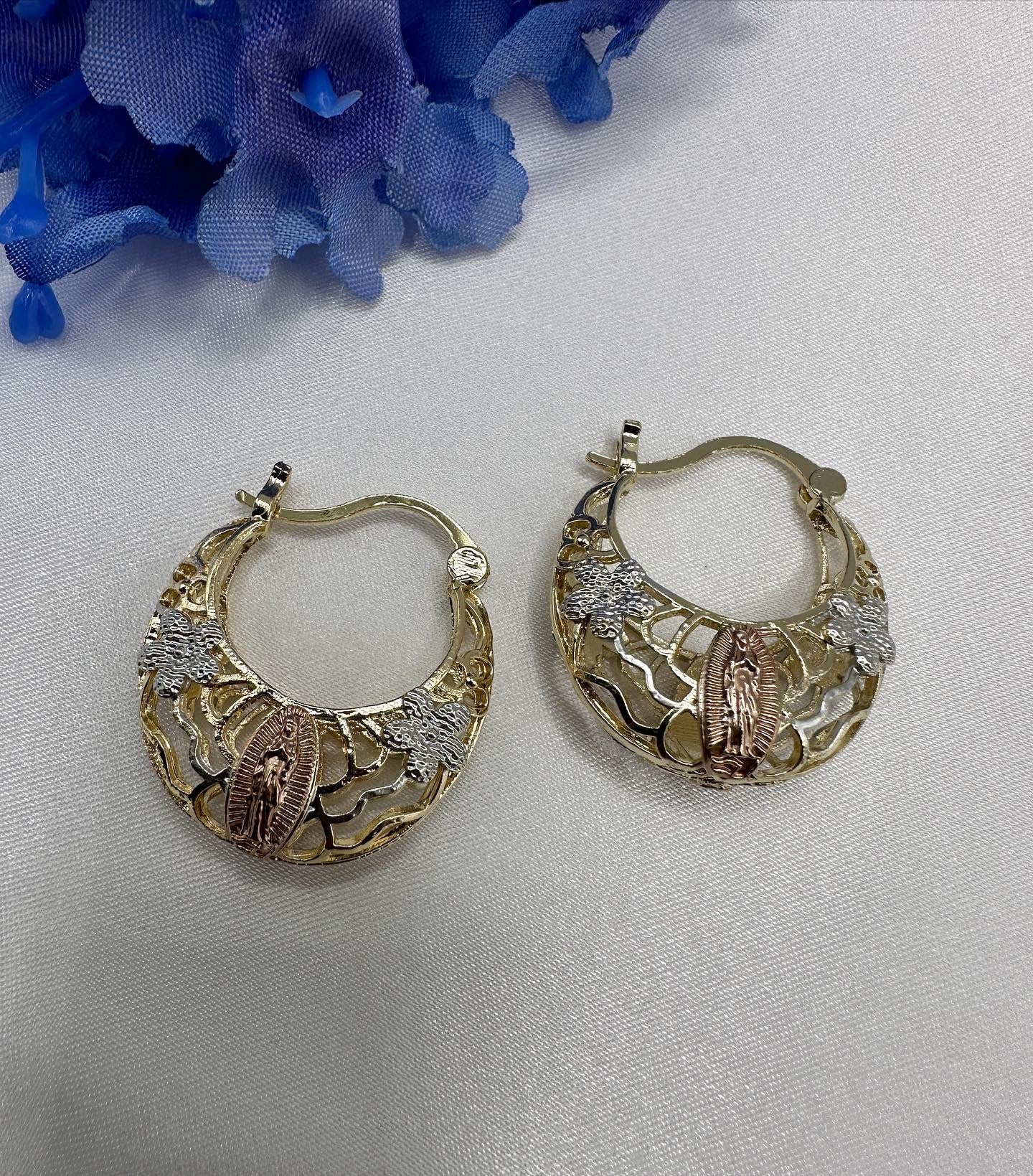 Upgrade your earring game with our “Day Dream” Virgin Earrings. Made with gold plating, these tricolor earrings feature a beautiful representation of the Virgin Mary. Enjoy a tarnish-free accessory that adds a touch of elegance and spirituality to any outfit.