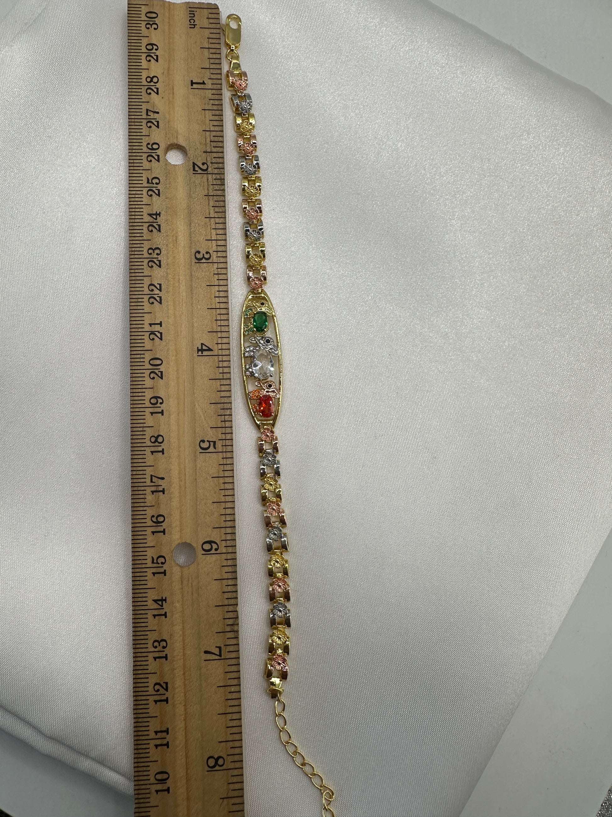 Expertly crafted and designed for good luck, this Elephant TRICOLOR Bracelet is the perfect addition to your jewelry collection. Its gold-plated finish and 7.5 inch length make it both stylish and versatile. Bring a touch of fortune to your everyday with this elegant and unique piece.