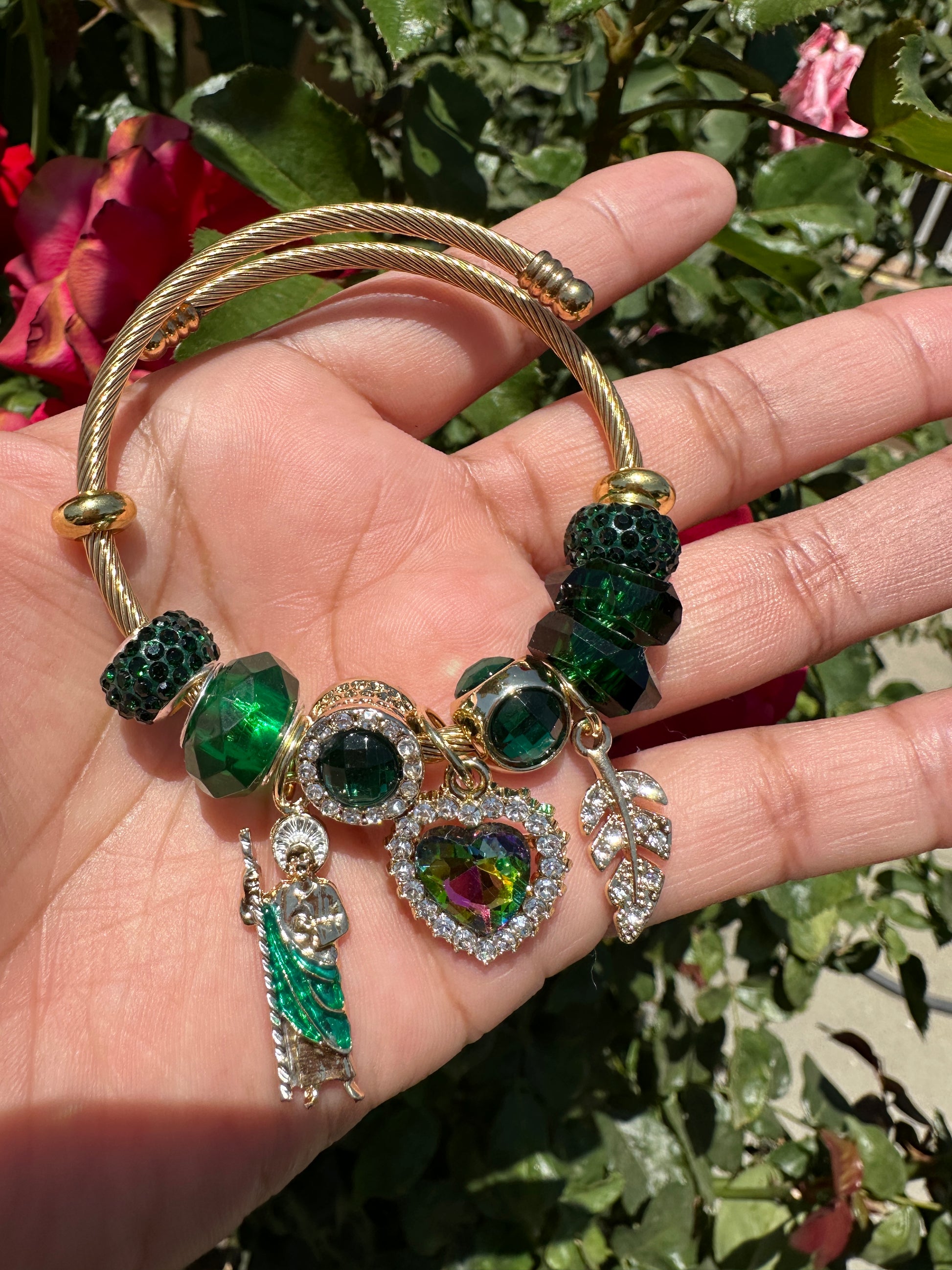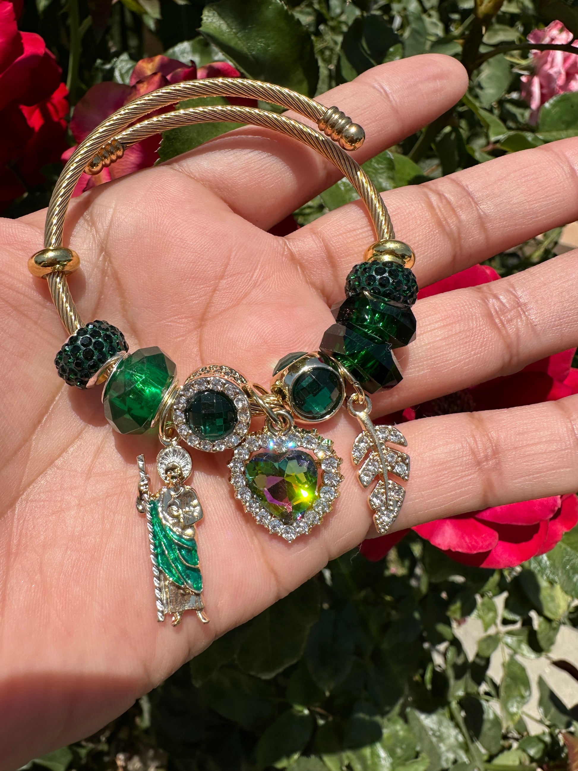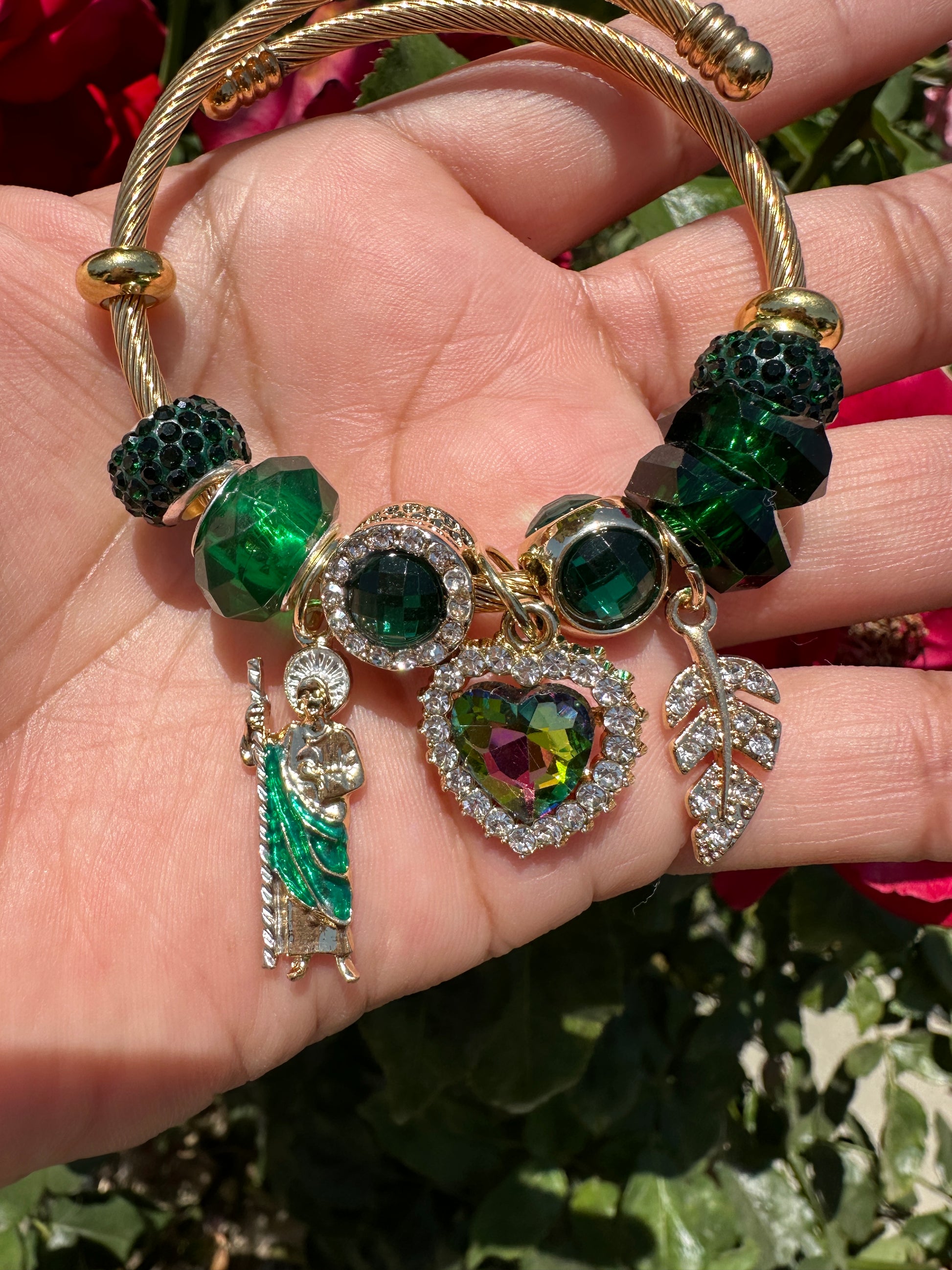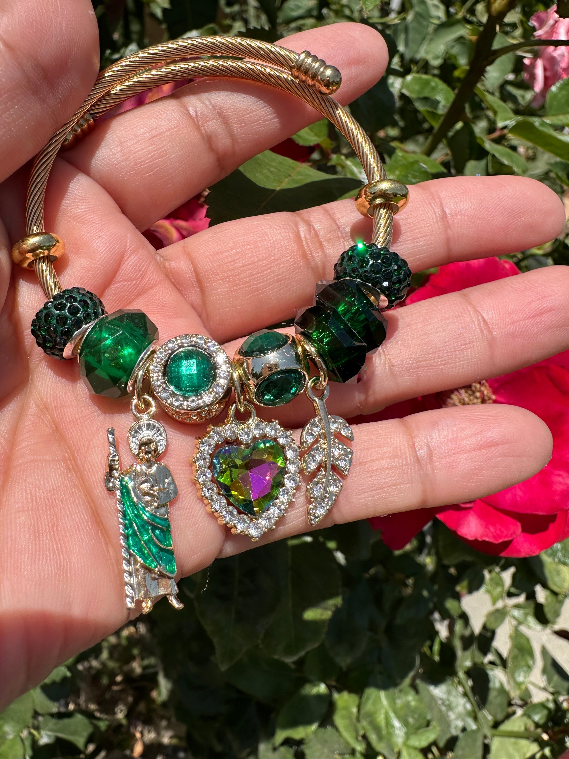 This elegant green charm bracelet features a St. Jude charm, symbolizing hope and strength. Made from high-quality materials, this bracelet serves as a daily reminder of positivity and resilience. Perfect for any outfit, this bracelet is a must-have for those seeking a meaningful accessory.