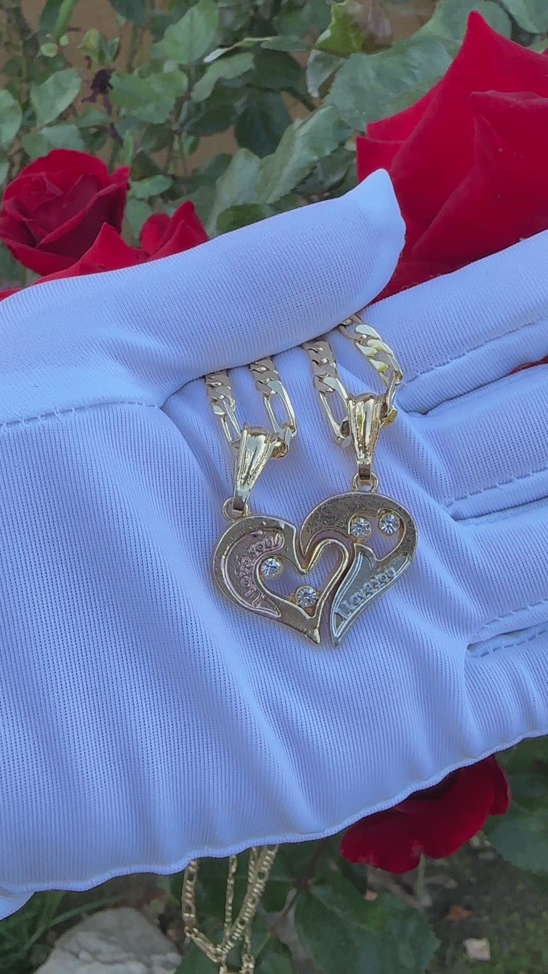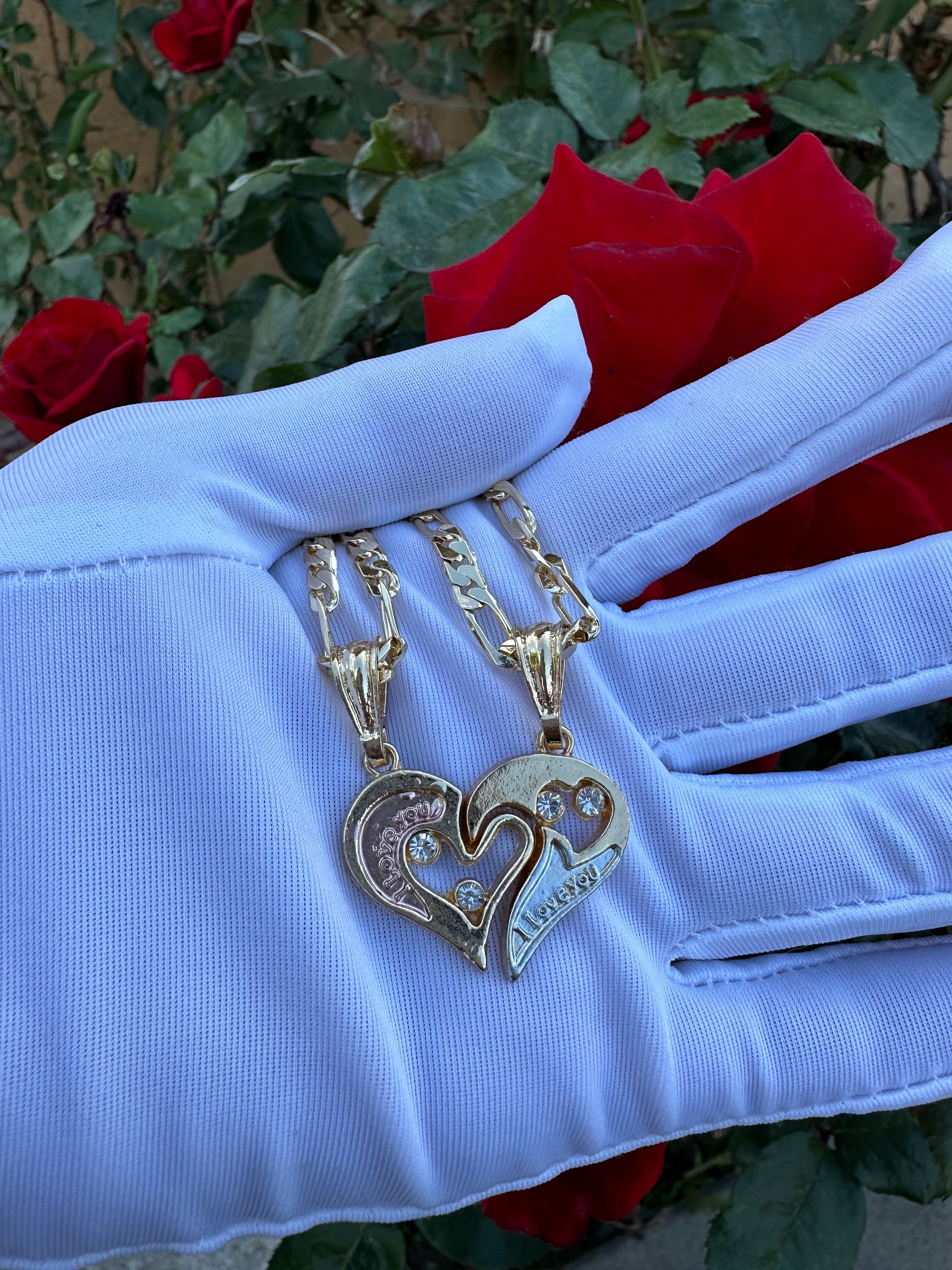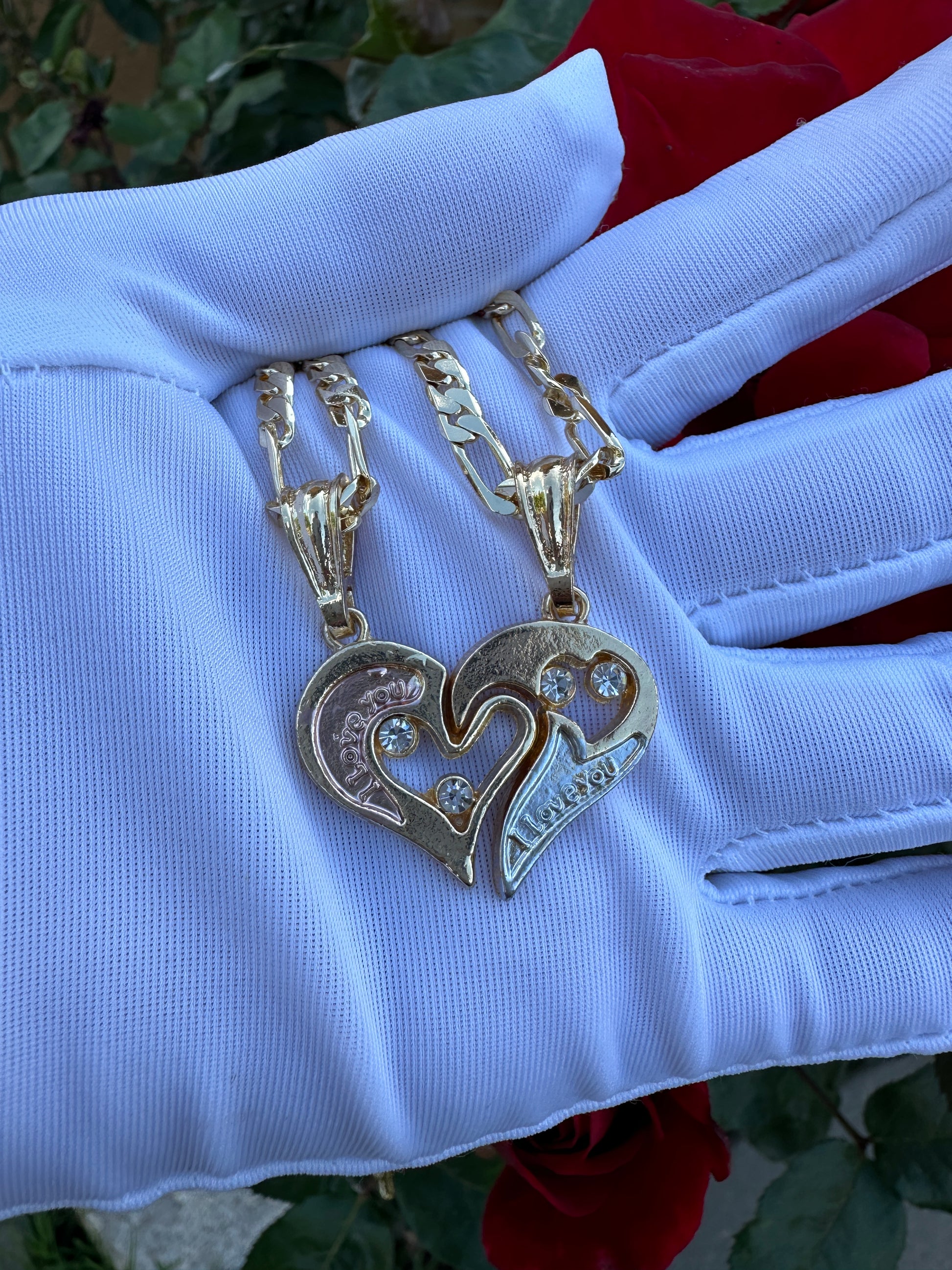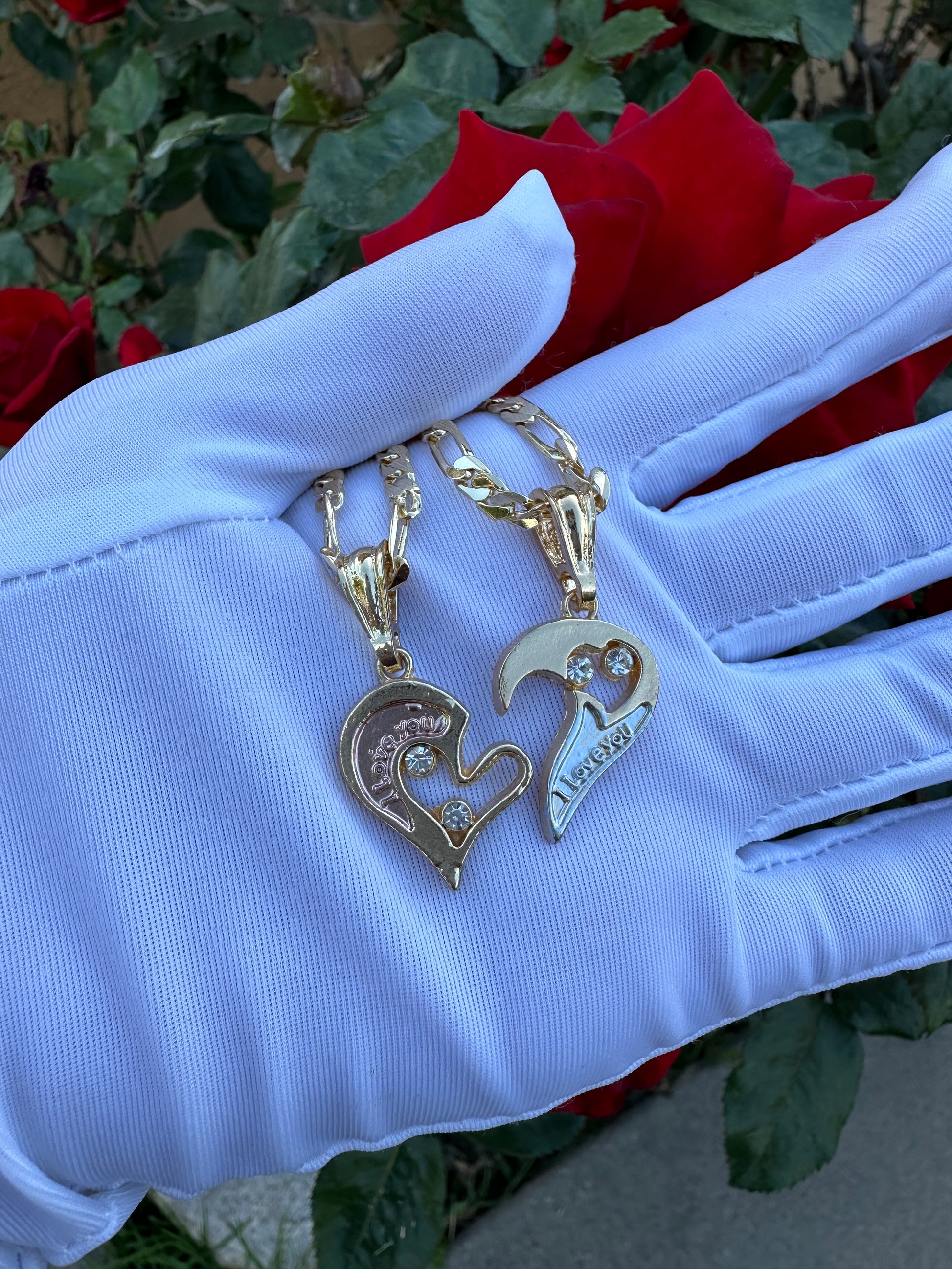 Experience true love with our "Love Birds" Necklace for 2. Our gold plated, breakable heart necklaces come with 2 chains and 2 half heart pendants, each inscribed with "I love you" on both sides. Perfect for showing your love for that special someone.