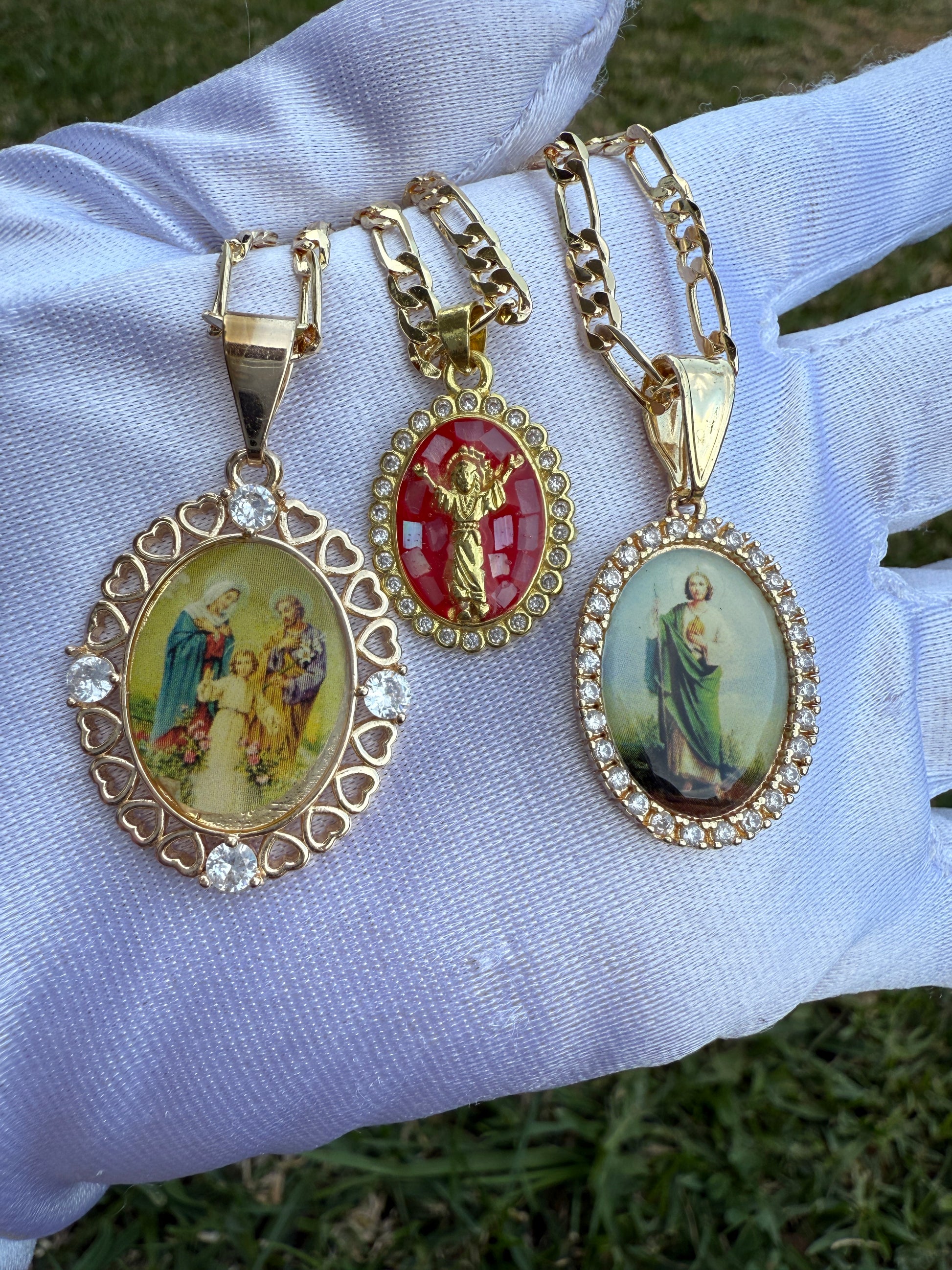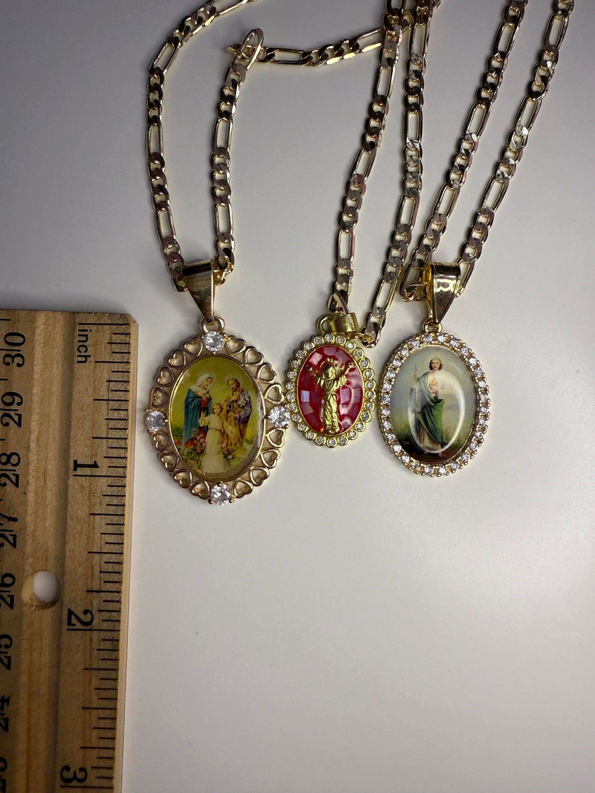 child, St. Jude, and the holy family pedant. These necklaces feature unique
