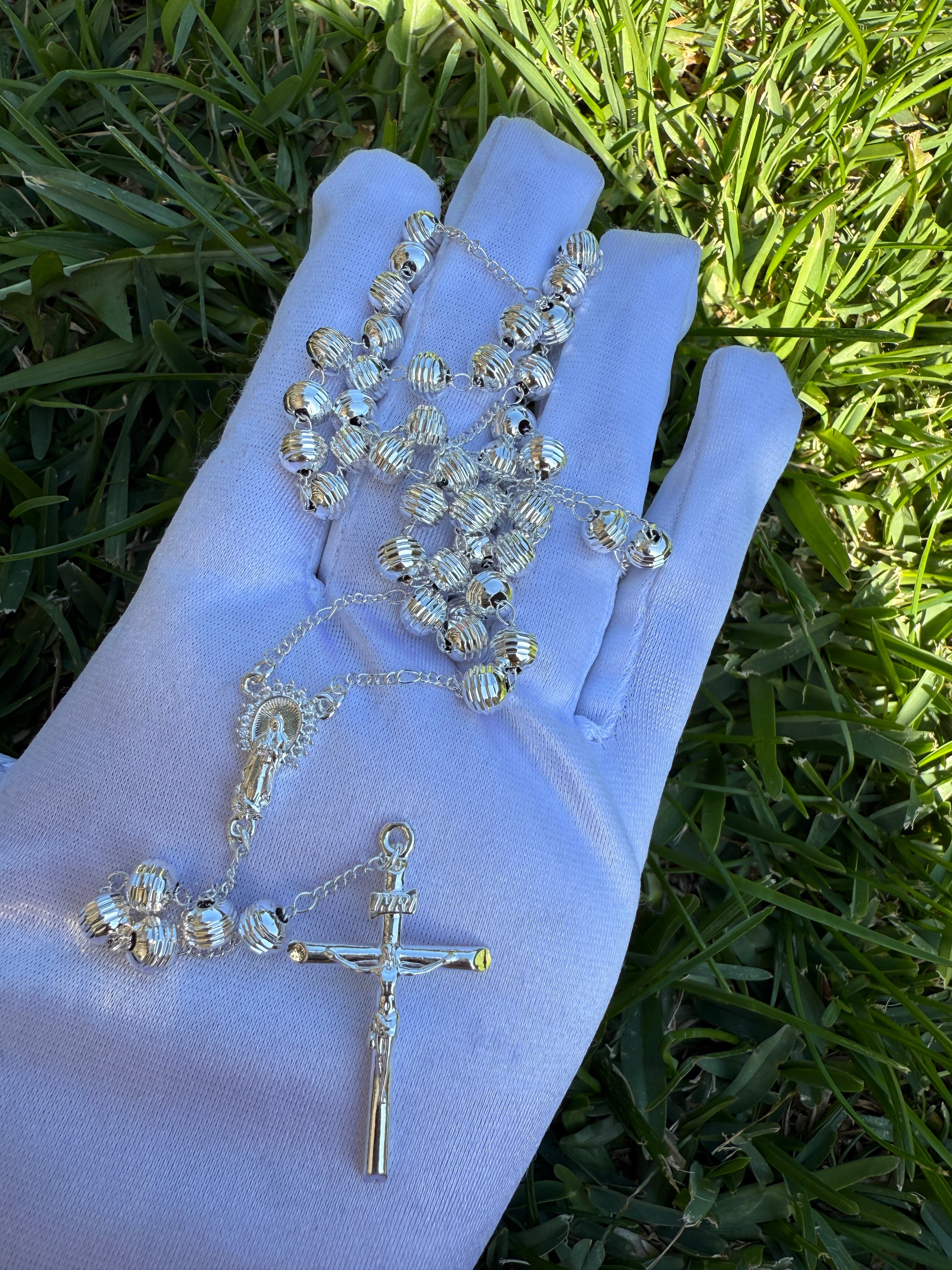 Silver Plated Rosary Necklace for him or her Virgin and Cross