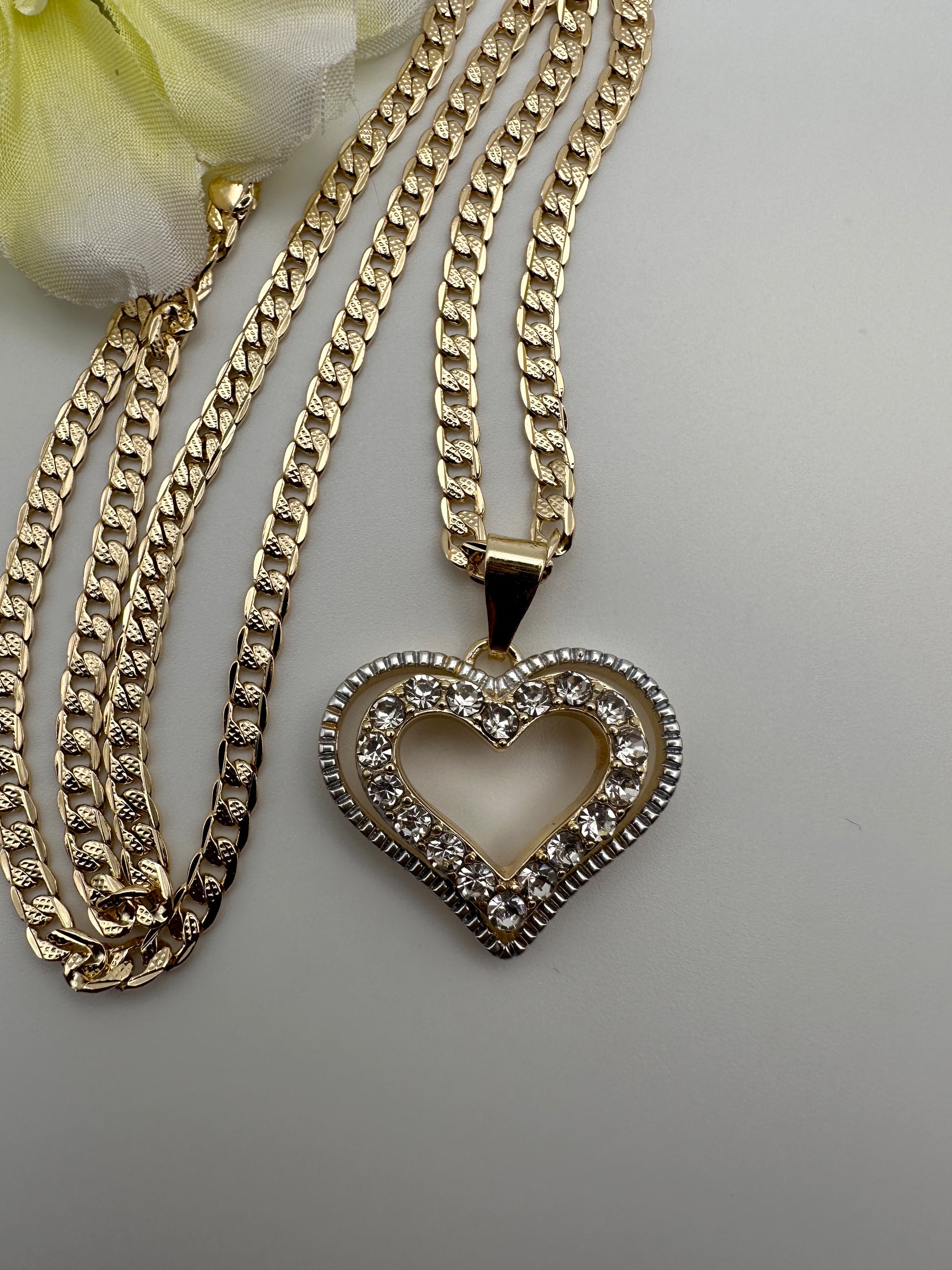 “Snow Heart” Necklace Heart with Clear Stones Gold Plated