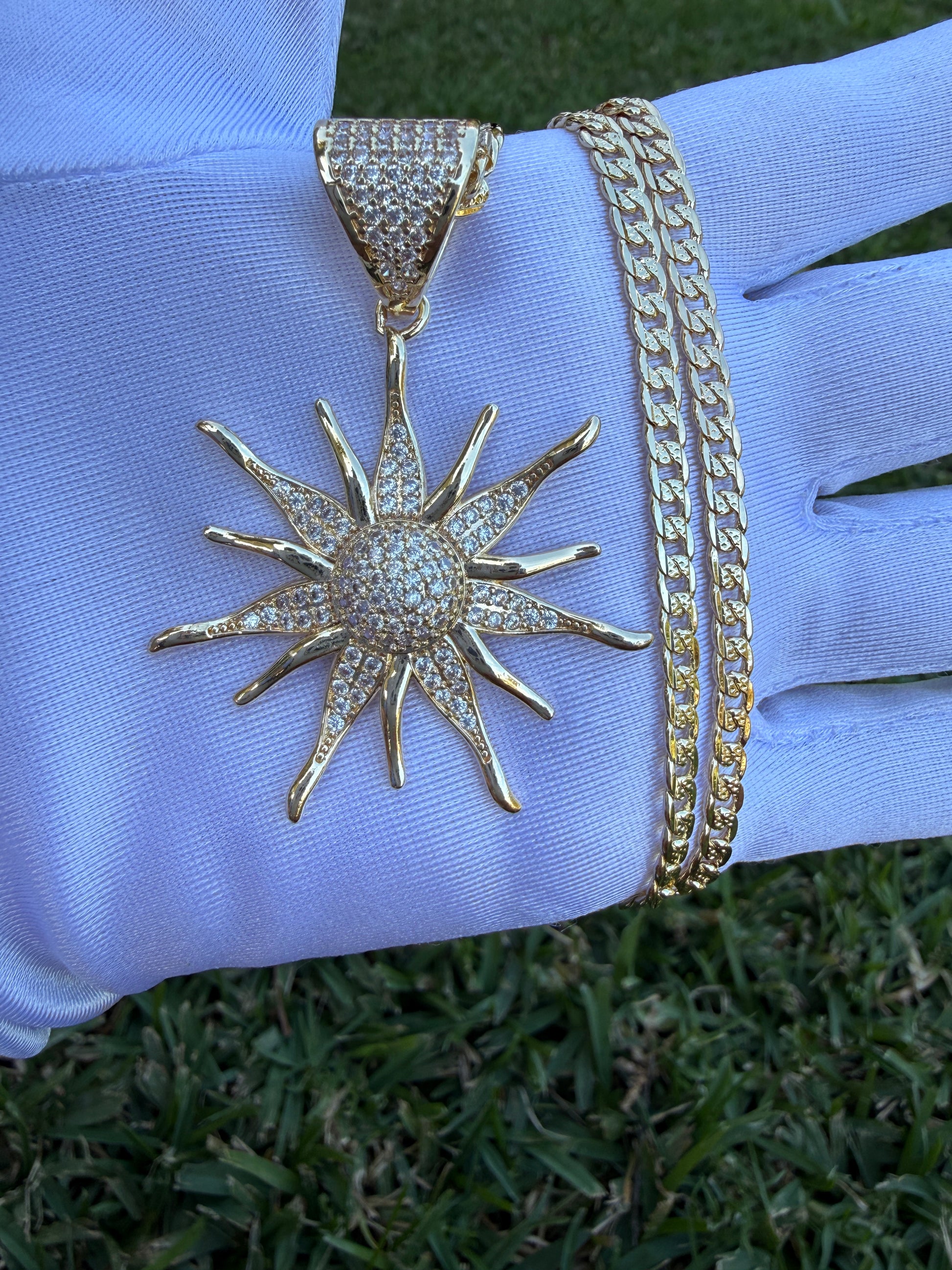 Sun necklace with Cuban chain 24”