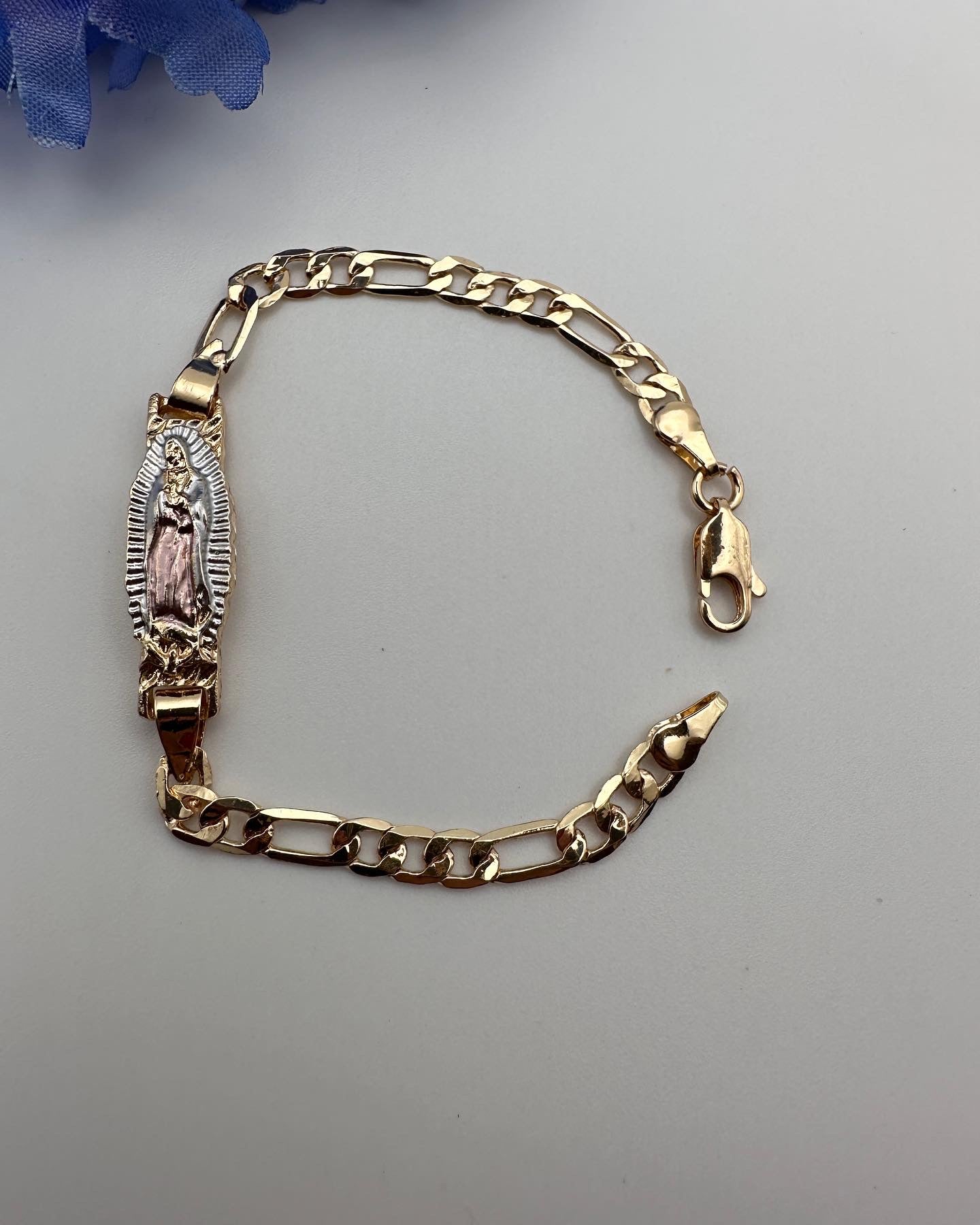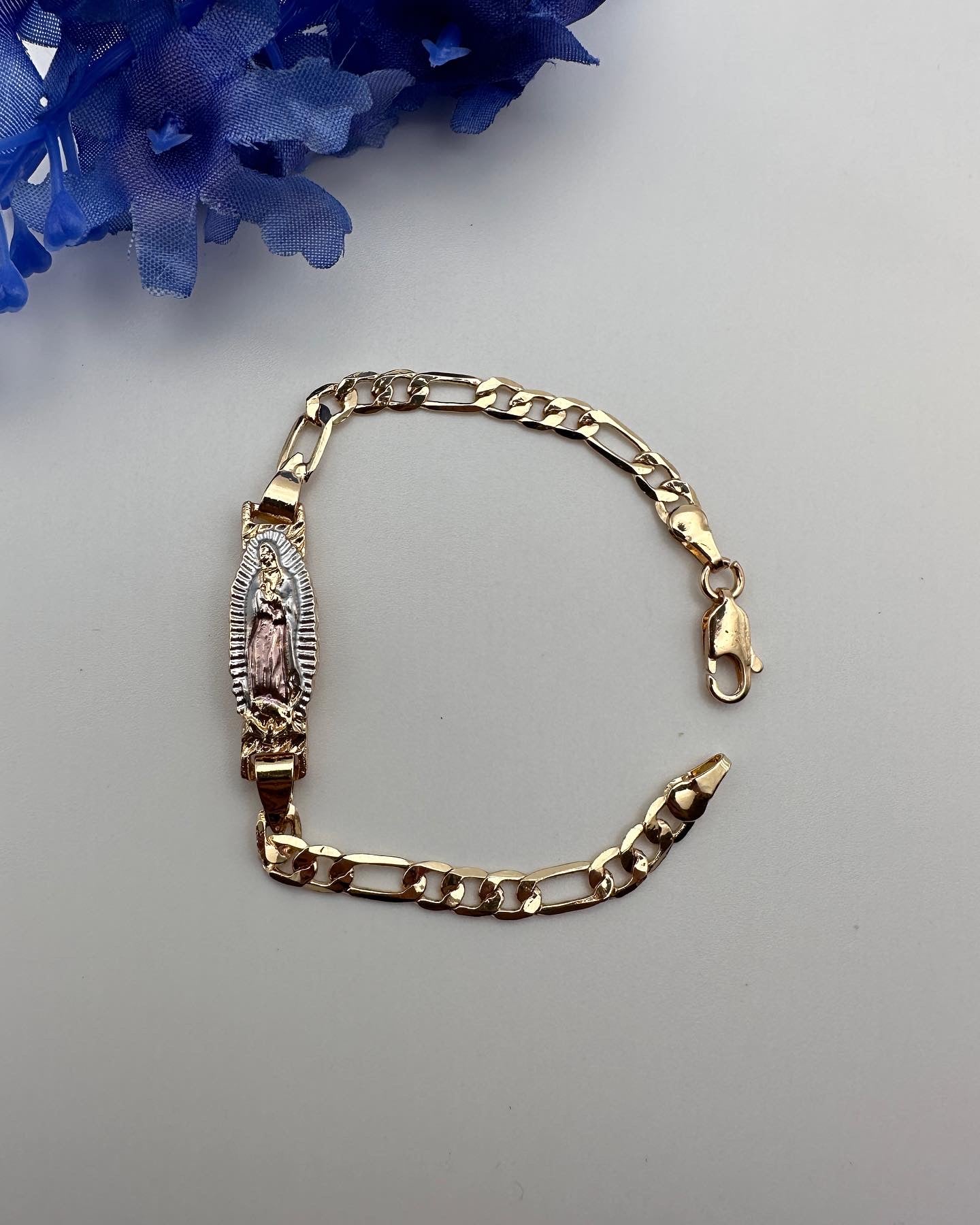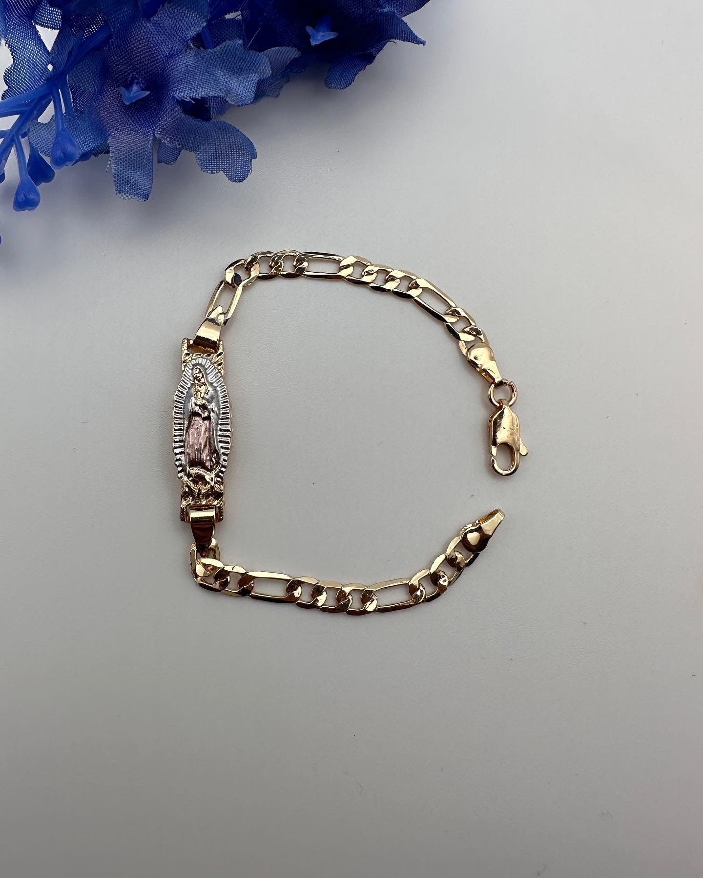 “Tiny” Virgin Bracelet Tricolor for Kids -Gold Plated for him or her (Virgen Pulcera)