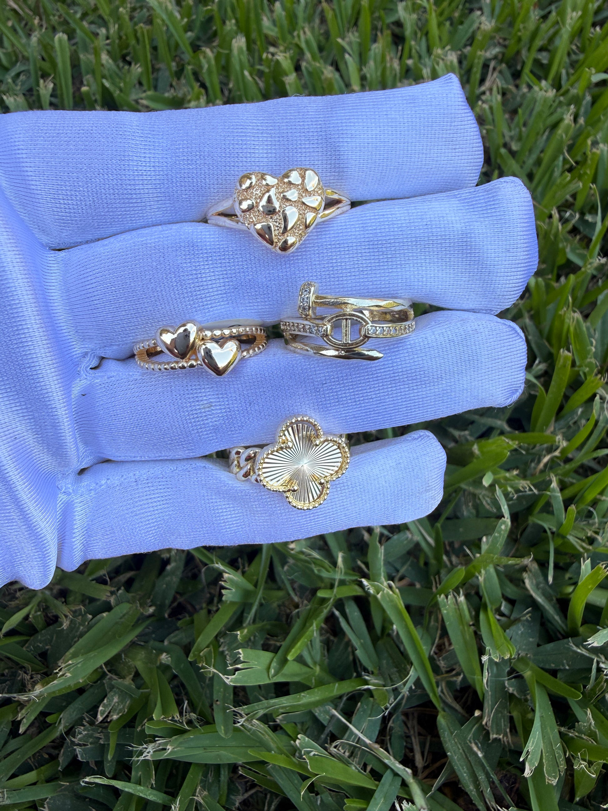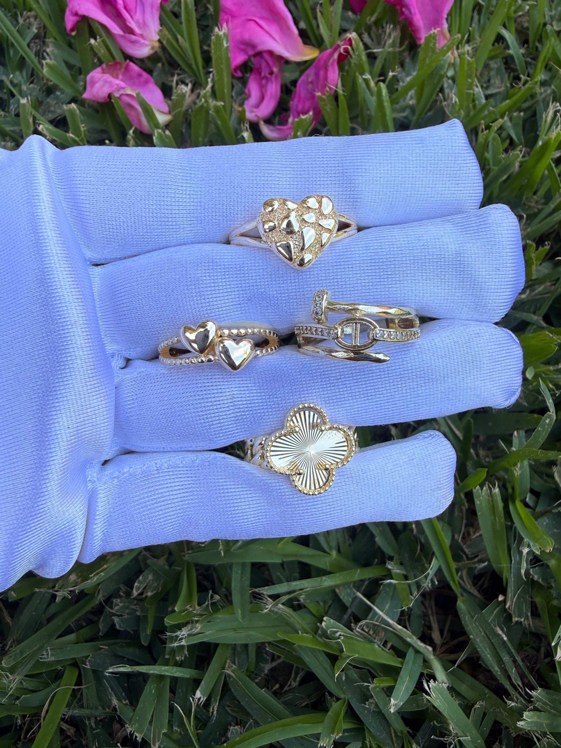 Nugget Cute Rings Gold Plated Heart & Clover Designs for Women's Fashion Jewelry Gold Plated Versatile and Charming Accessory